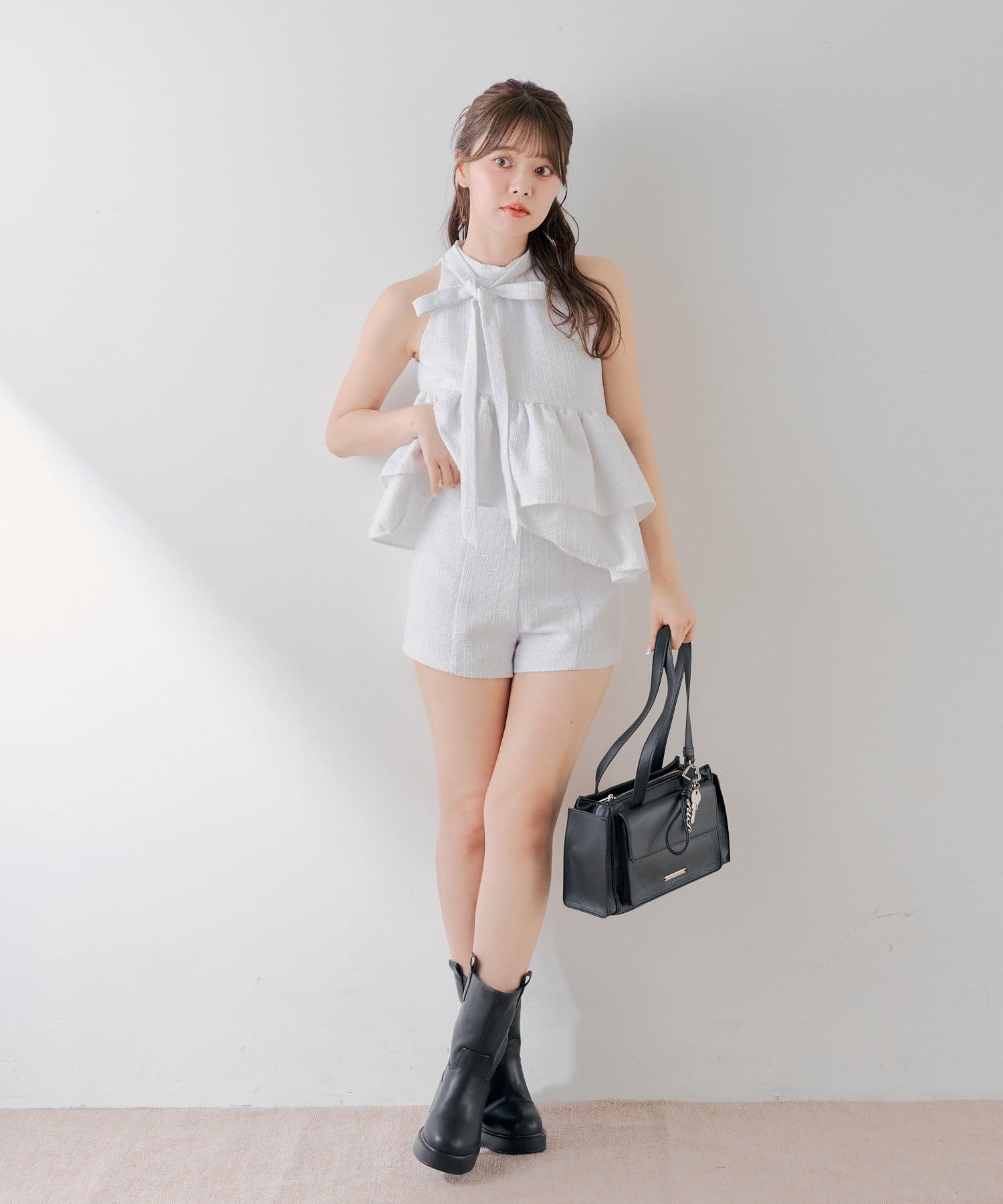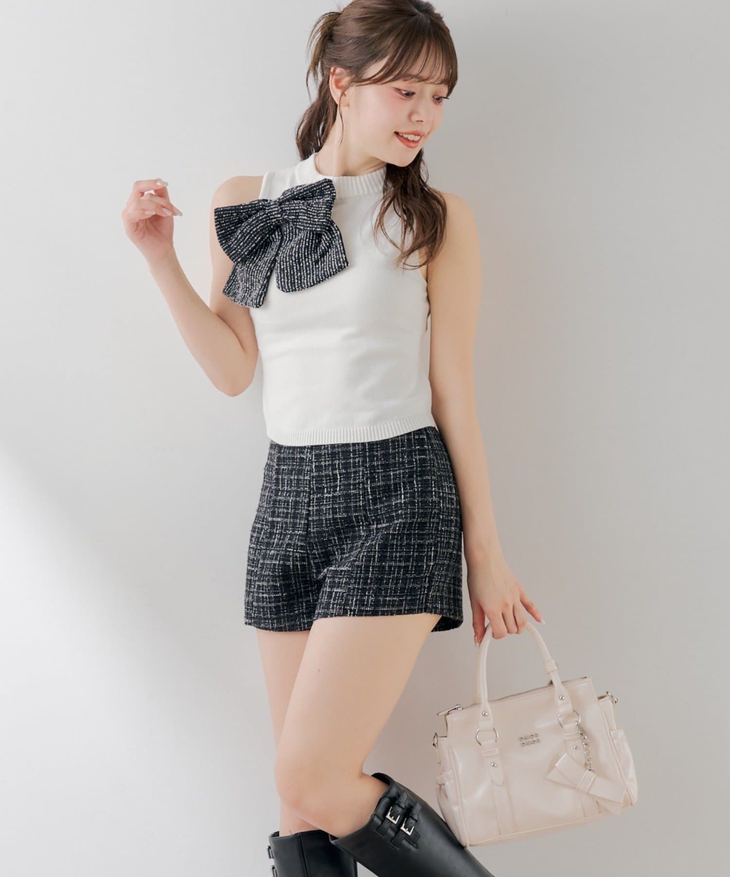 クラシカルな魅力とトレンド感を両立したツイードコンパクトショートパンツ