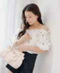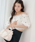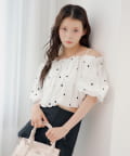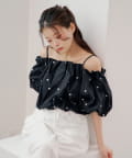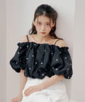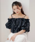 ・ふんわりとしたバルーンスリーブが、女性らしさを際立たせるオフショルブラウス。