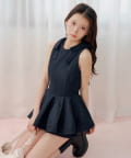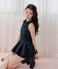 ・高めの位置から広がるペプラムシルエットは、スタイルアップ効果も◎