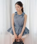 ・カジュアルなデニム素材を、フェミニンなペプラムシルエットで仕立てたブラウス。