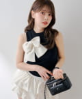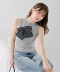 ・胸元のツイードリボンが目を惹く、大人可愛いニットタンク。