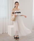 レースの配色が目を惹くロングワンピース登場!
