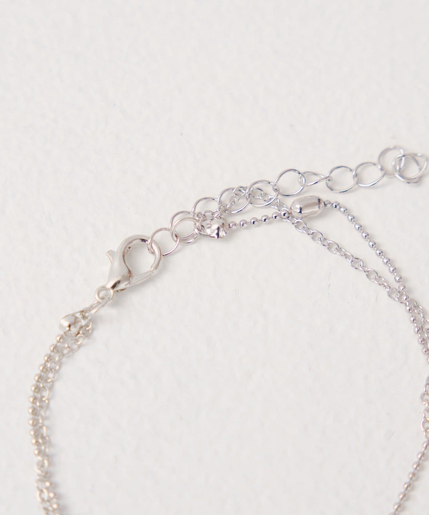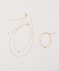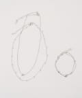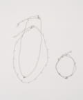 ・重ね付けされたネックレスは、デコルテを美しく見せ、華奢なブレスレットは手元を女性らしく演出します。