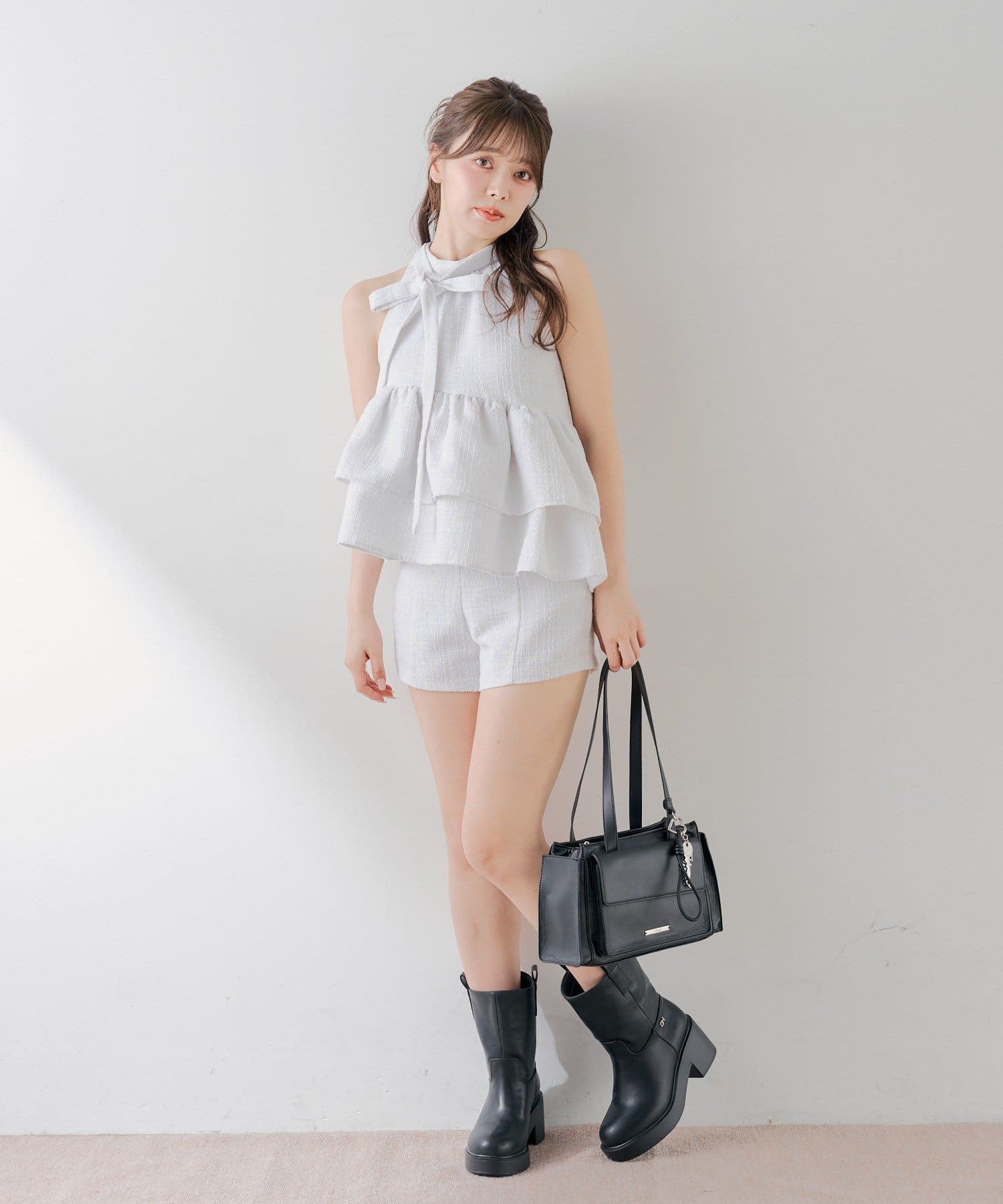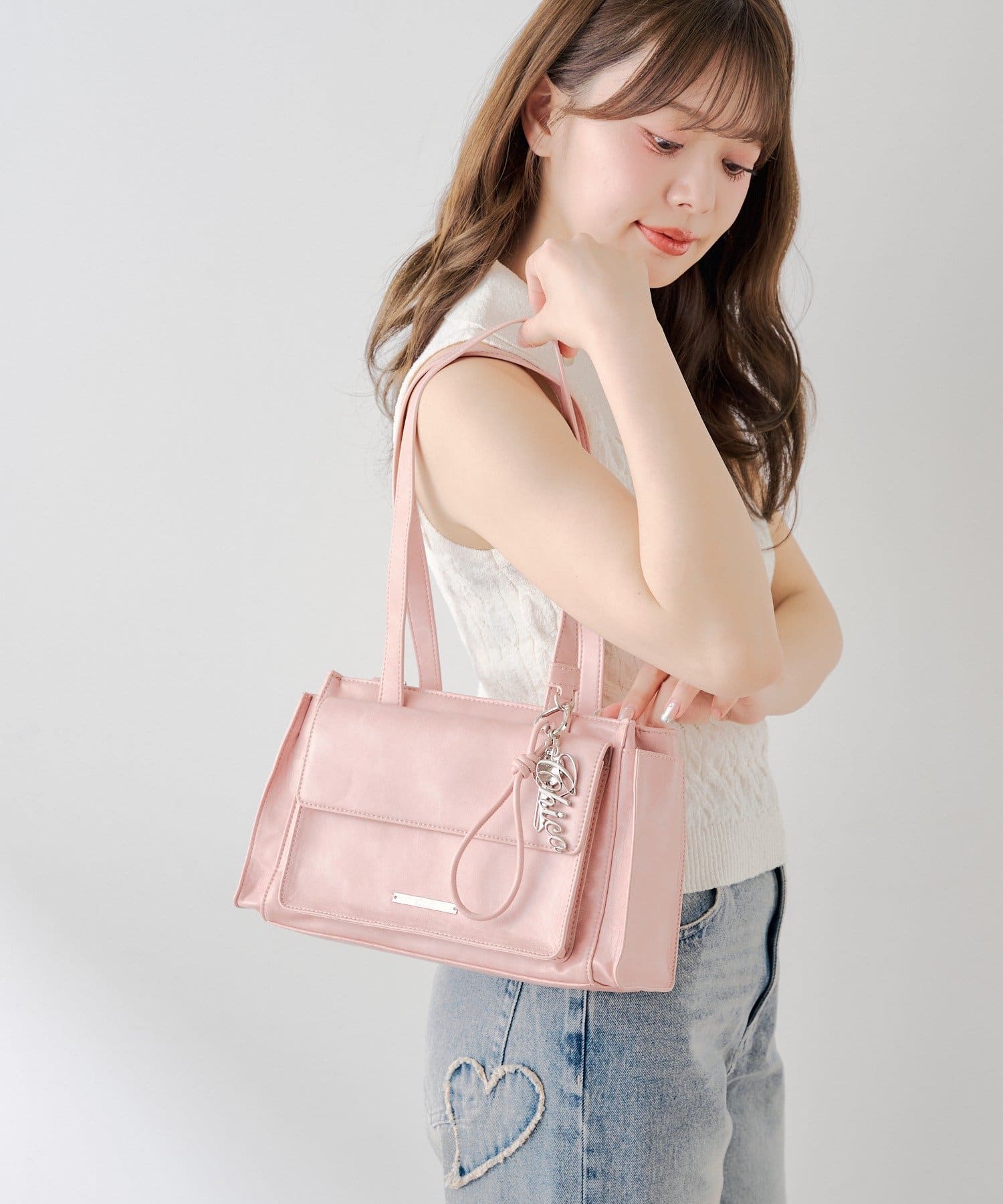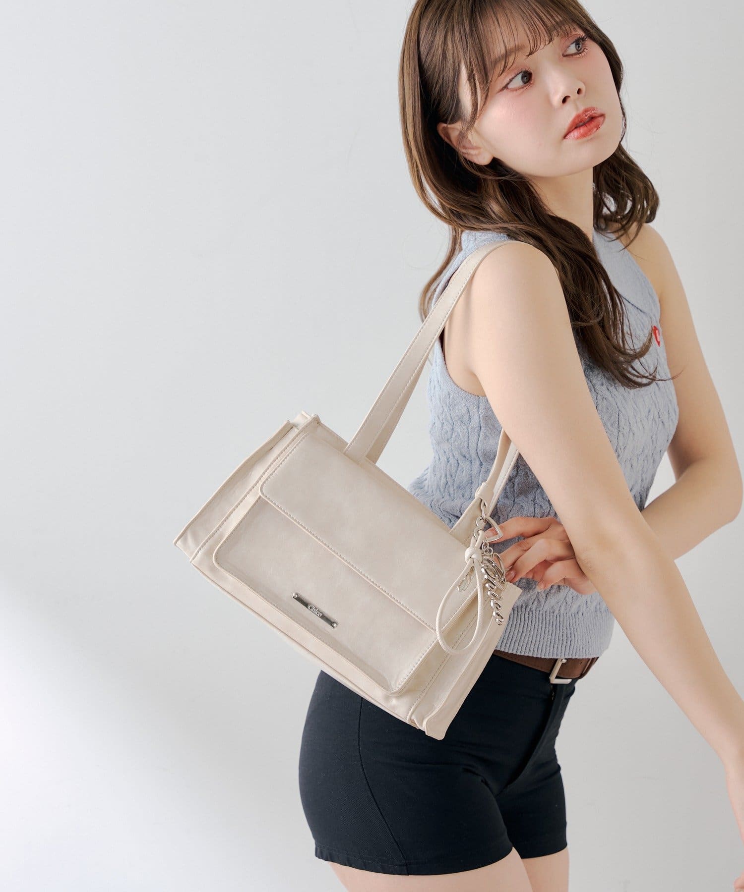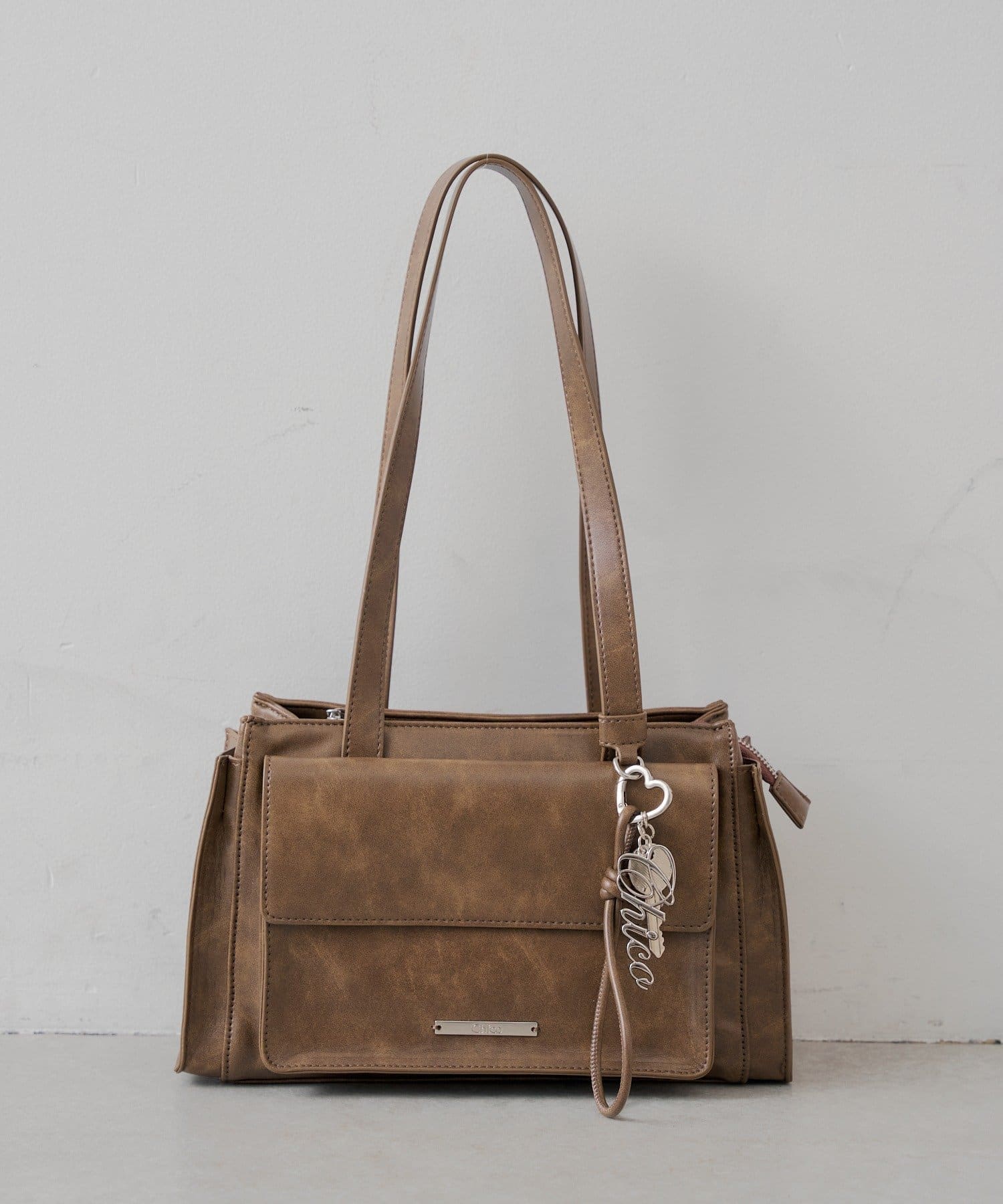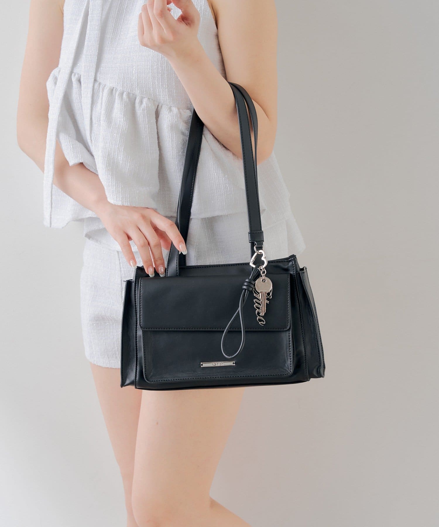 キーチャームフラップデザインボストンバッグ