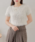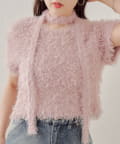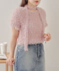 【Chico】リボンフェザー半袖ニット