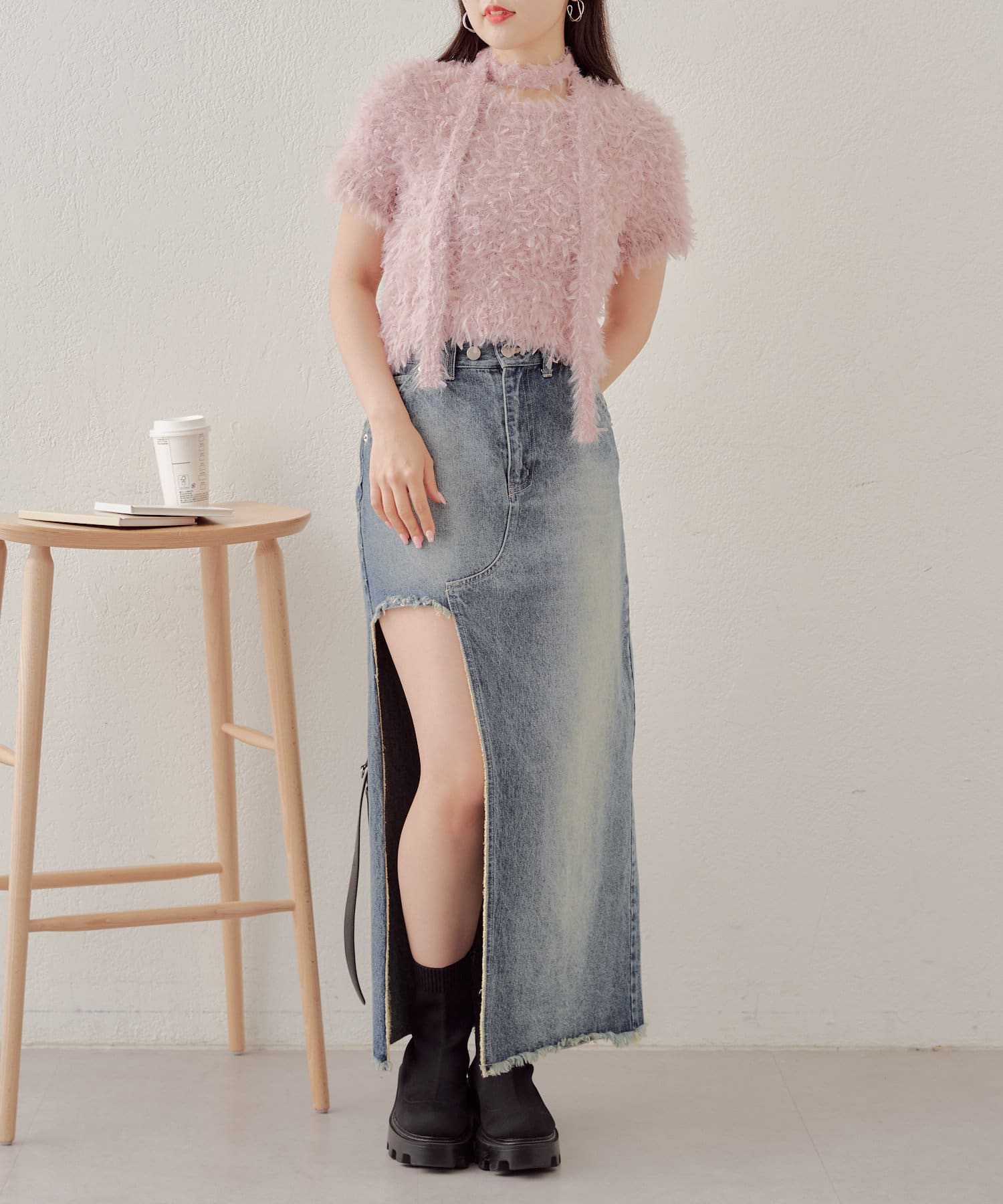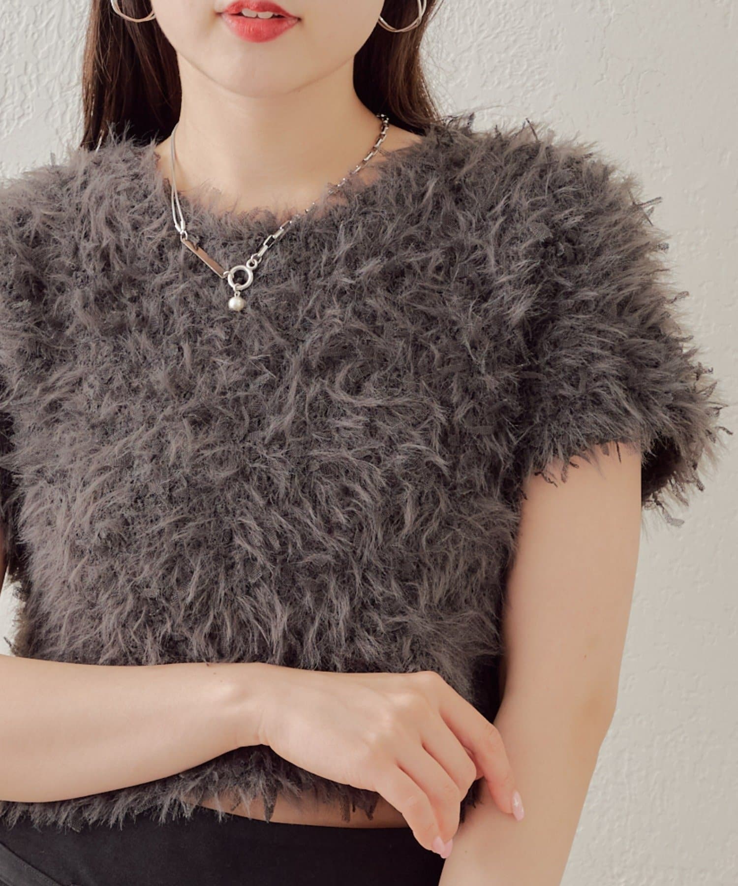 ・毛足の長いニット素材が周りと差をつけるポイント◎