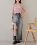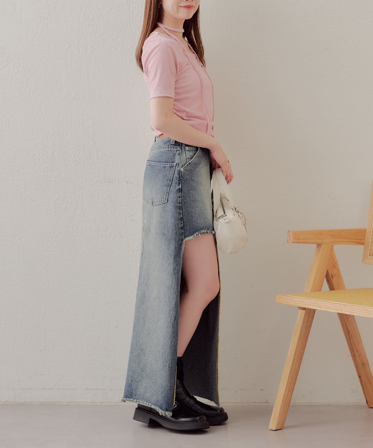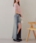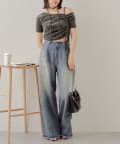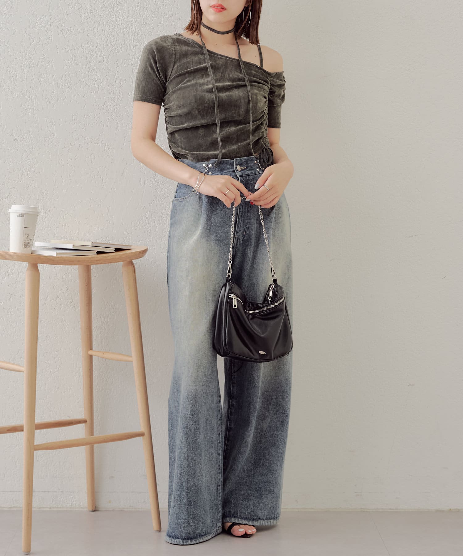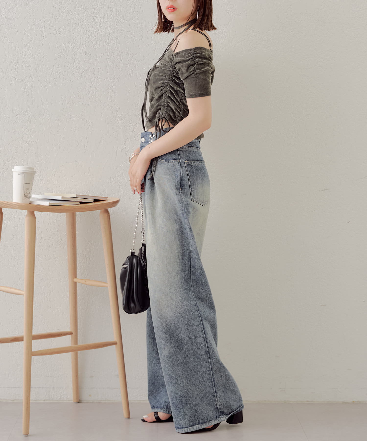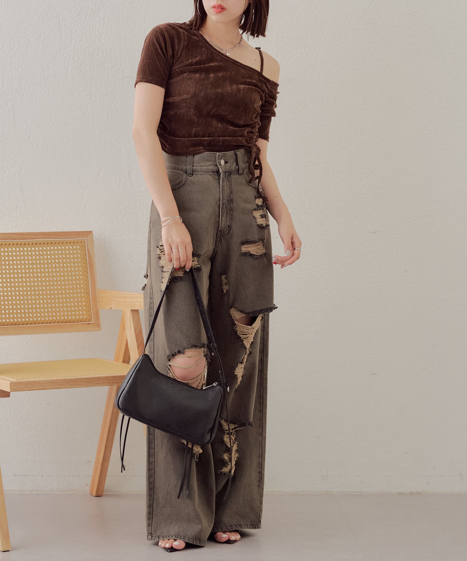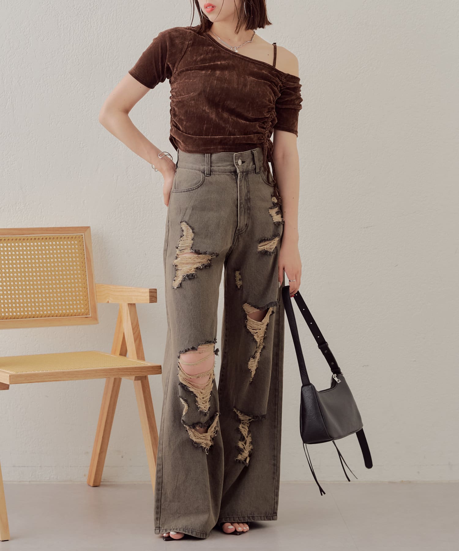 ・おすすめはトレンドのダメージの効いたワイドデニムです。