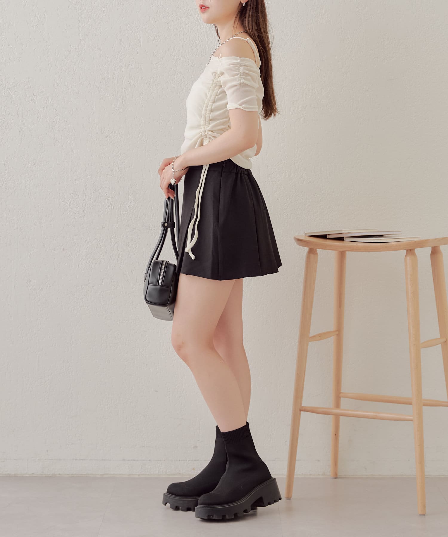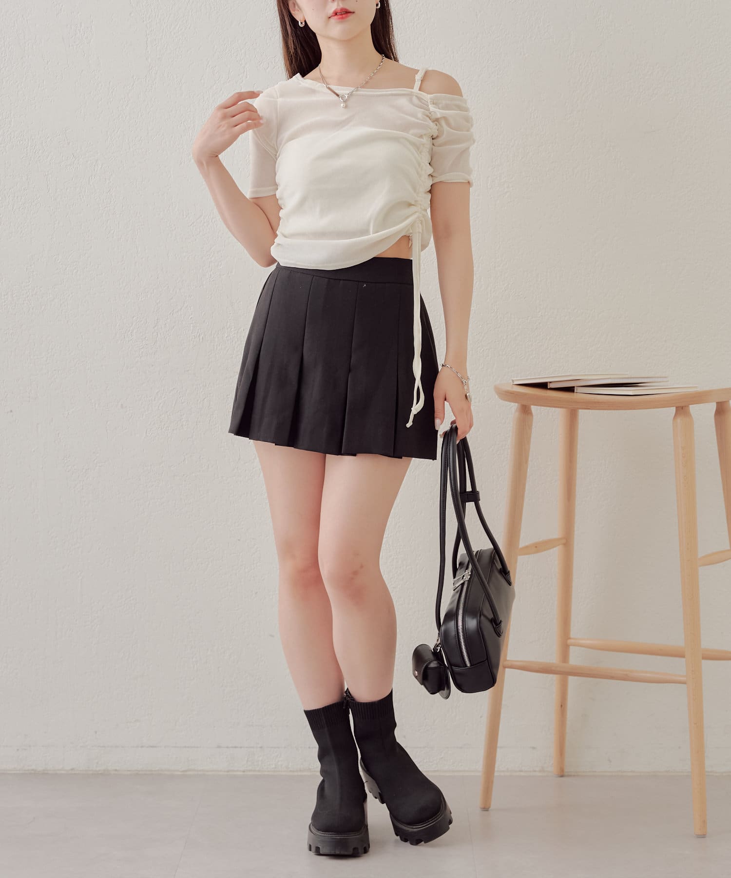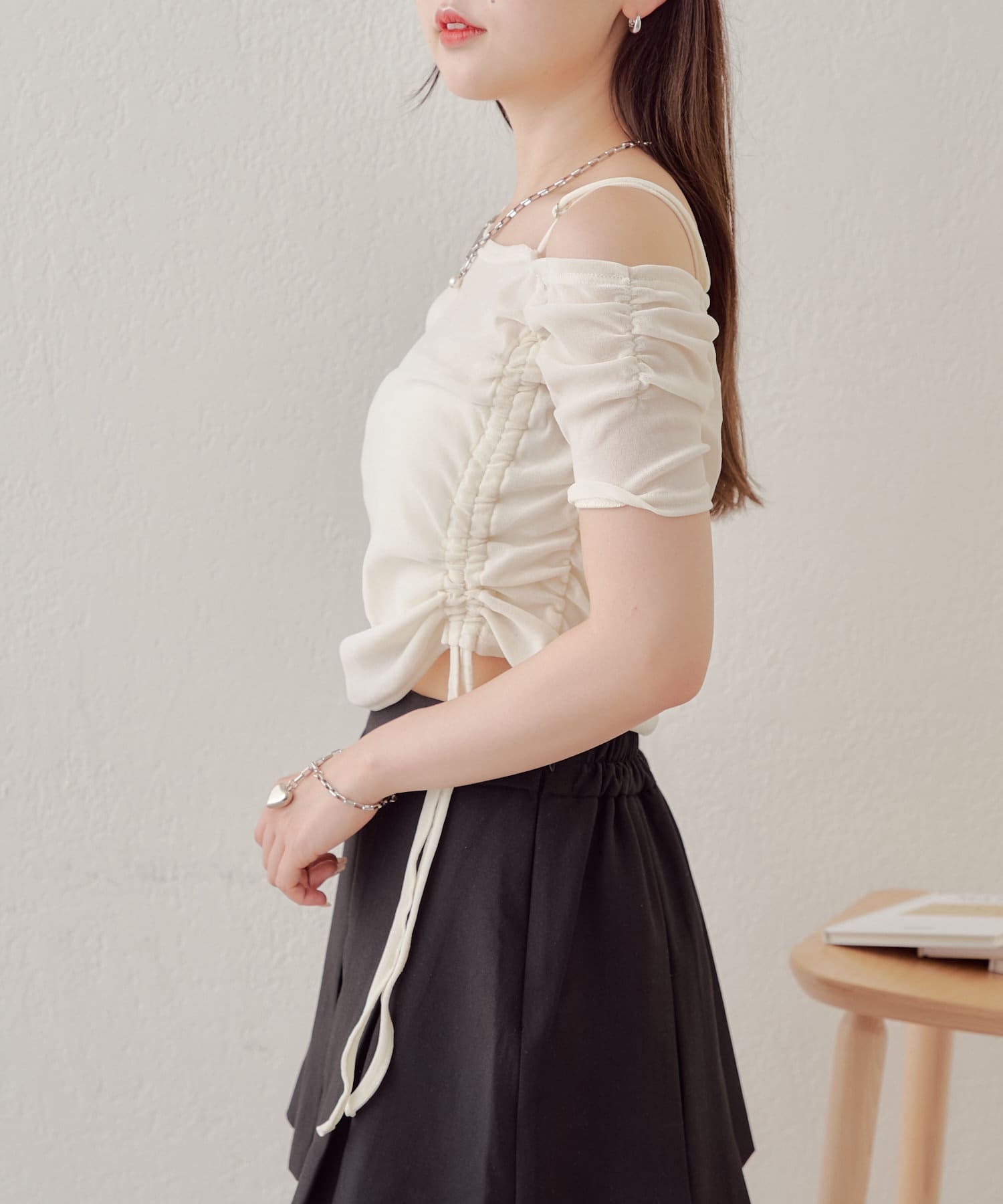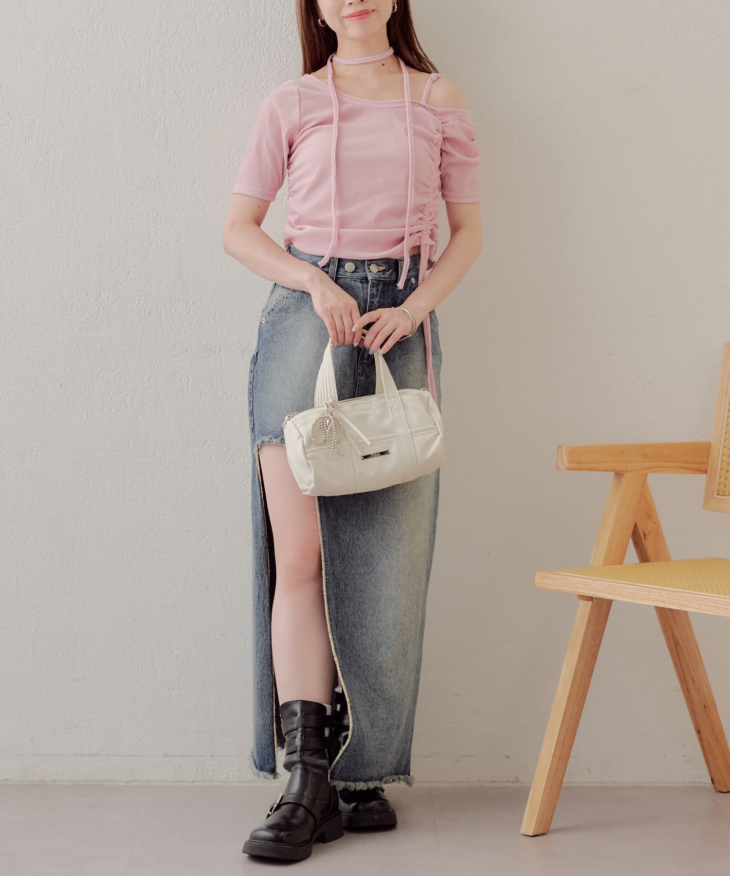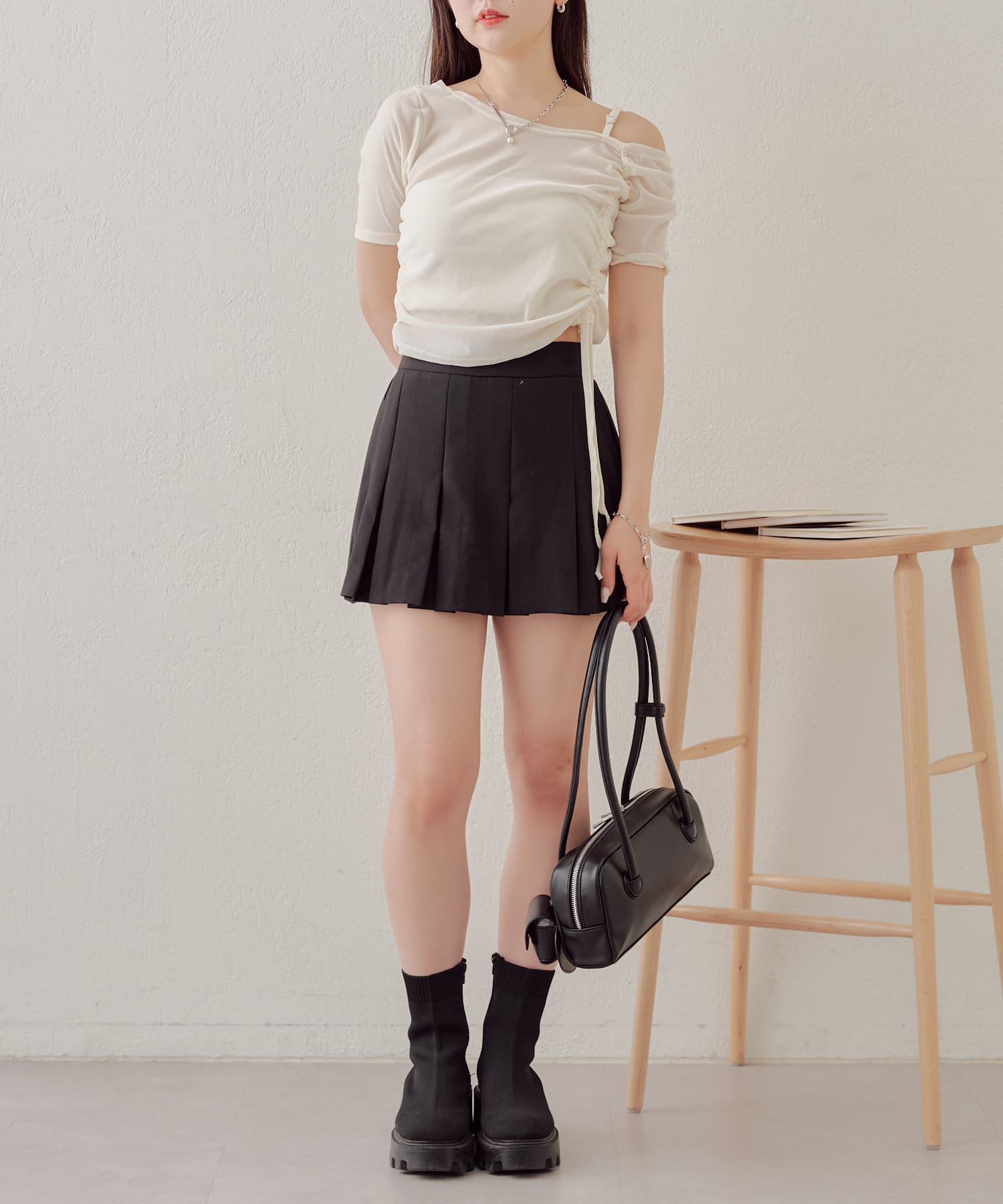 ・ワンショルデザインでヘルシーな肌見せが叶うトップス。