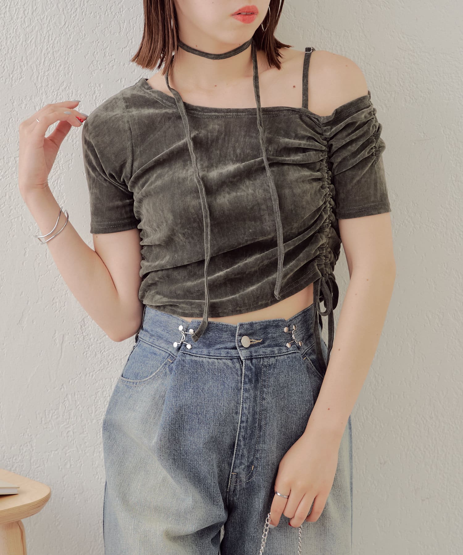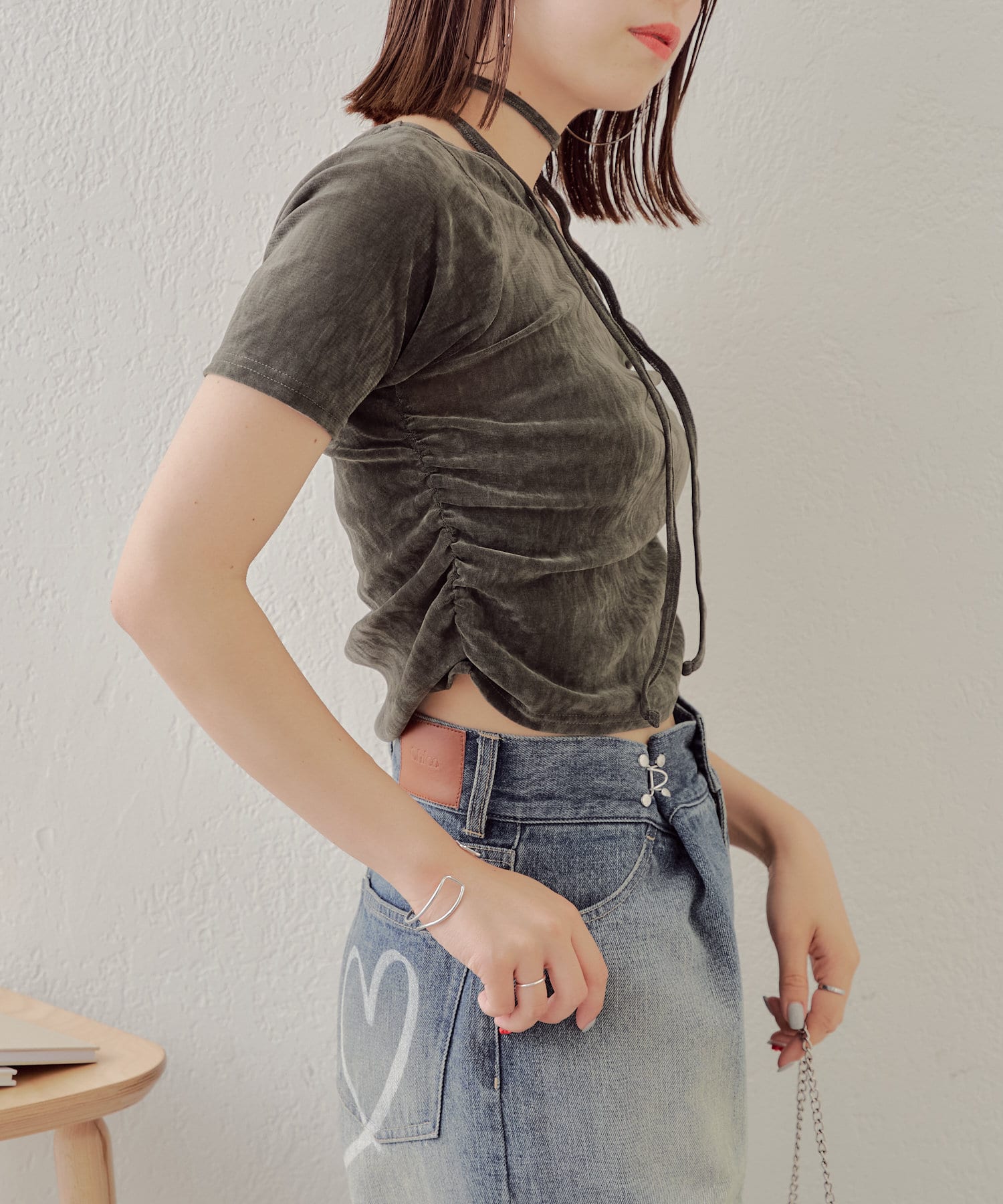 ・透け感のあるベロアの生地感を使用しており雰囲気のあるコーデに仕上がります。