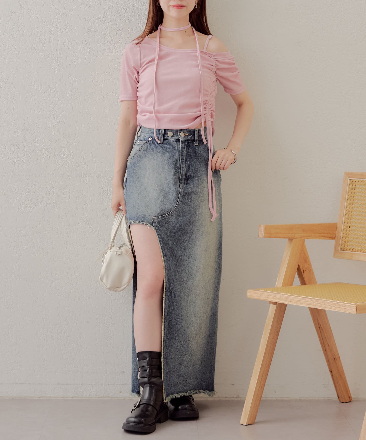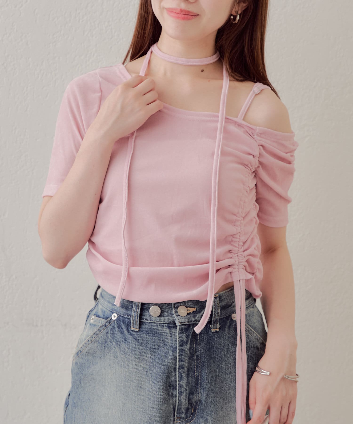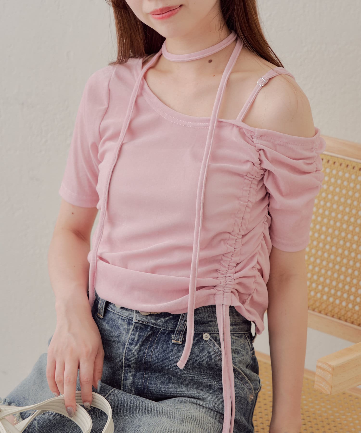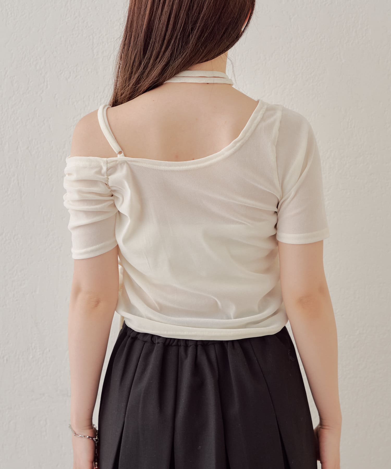 • OUTLET(アウトレット) 【Chico】5分袖ワンショルチョーカーロンT