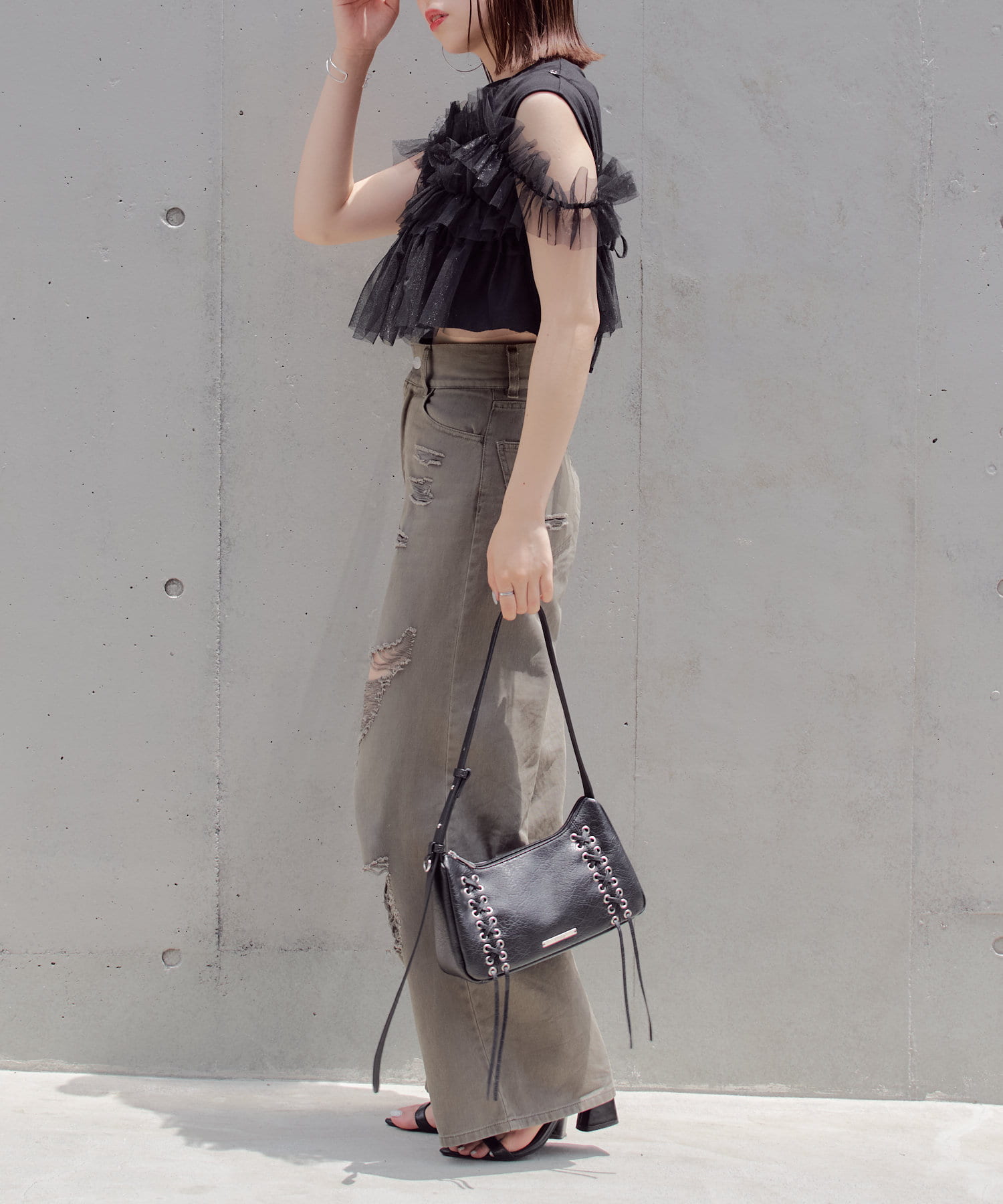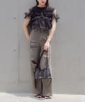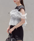 ・フォーマルなミニボトム合わせで大人甘なスタイリングもおすすめ。