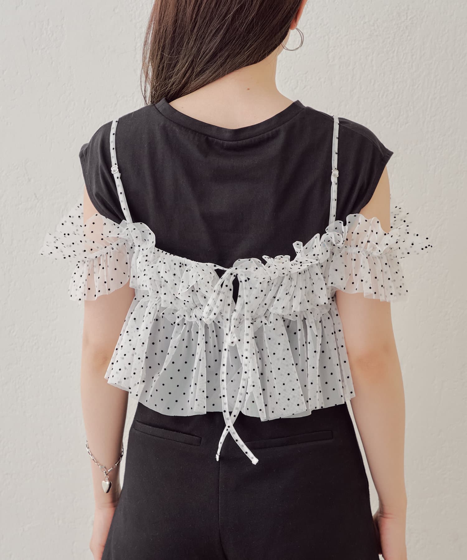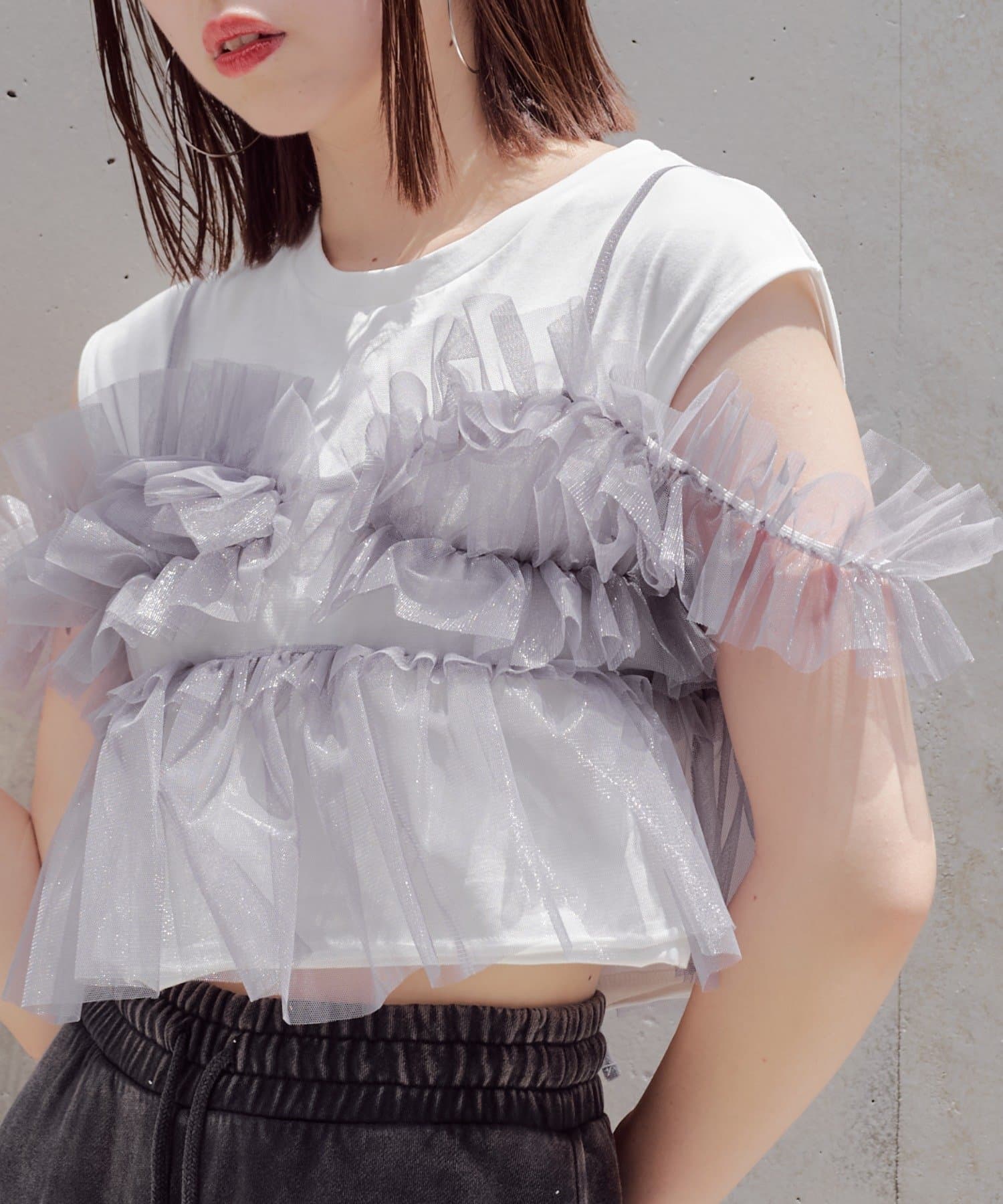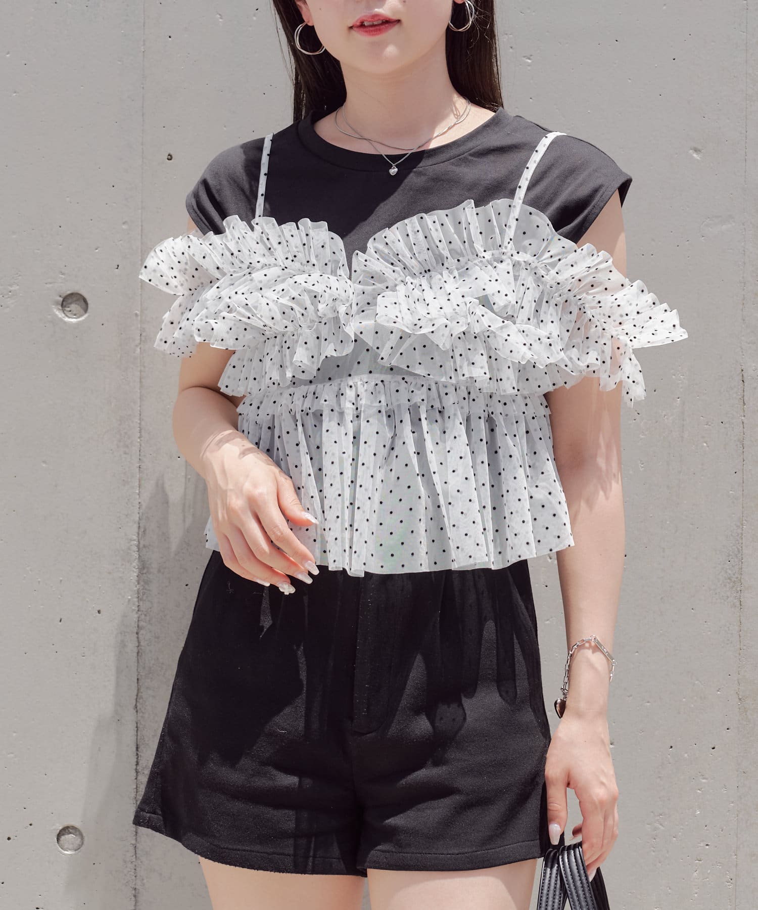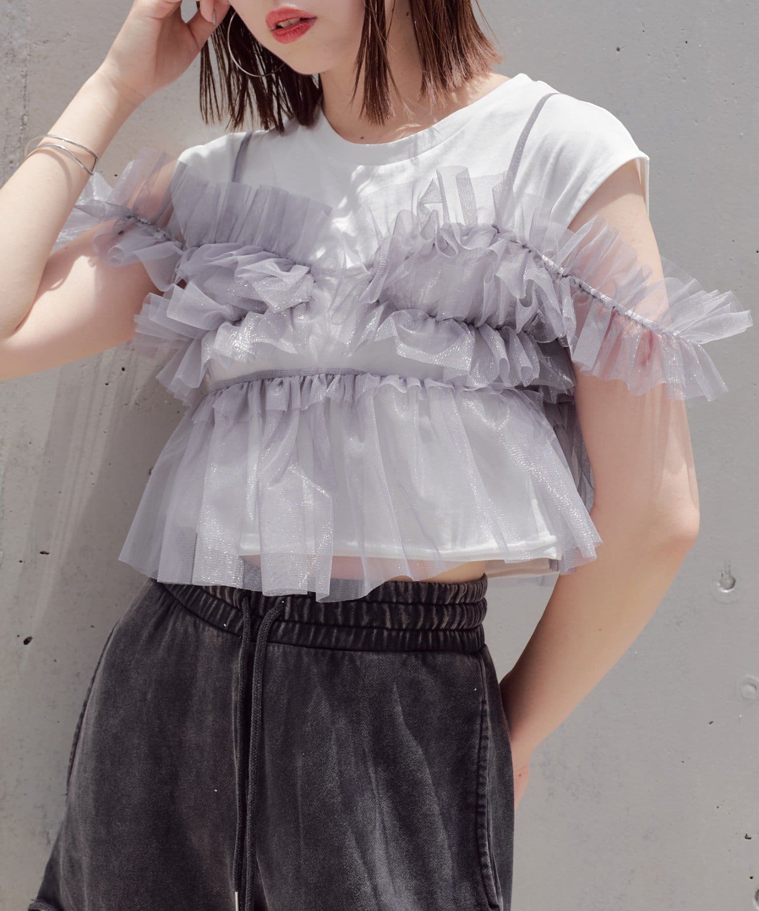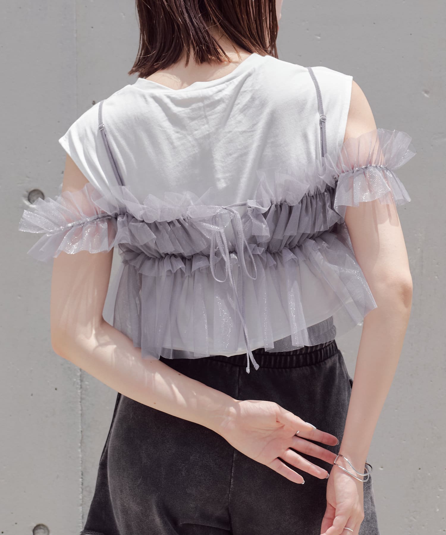 ラメのチュールキャミが目を惹くレイヤードTシャツが登場♡