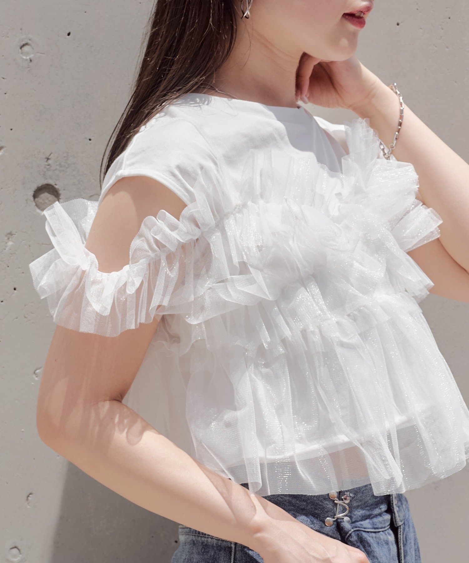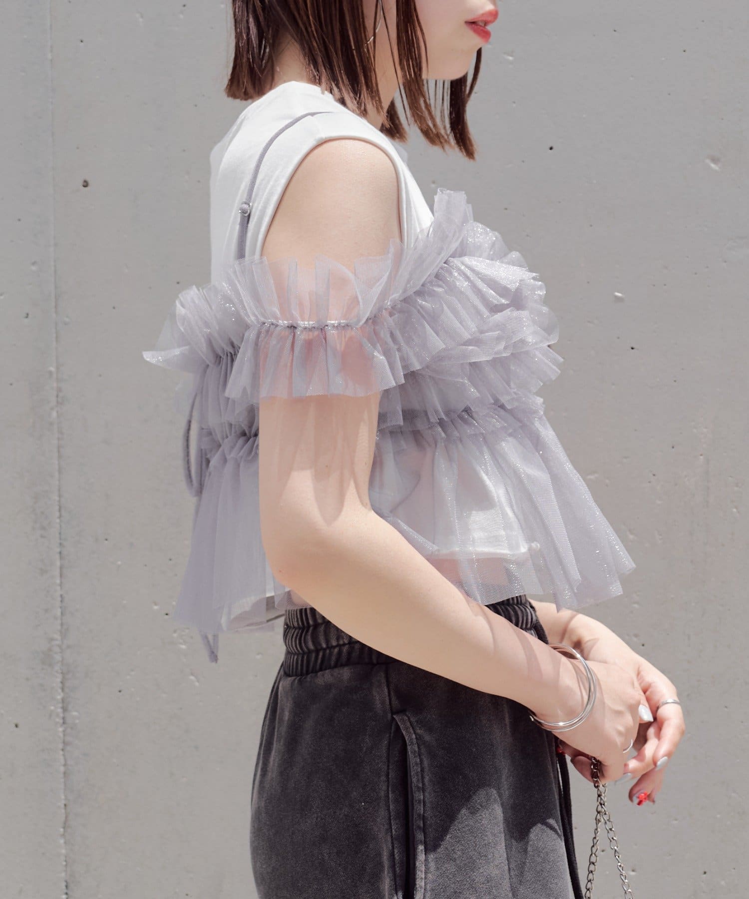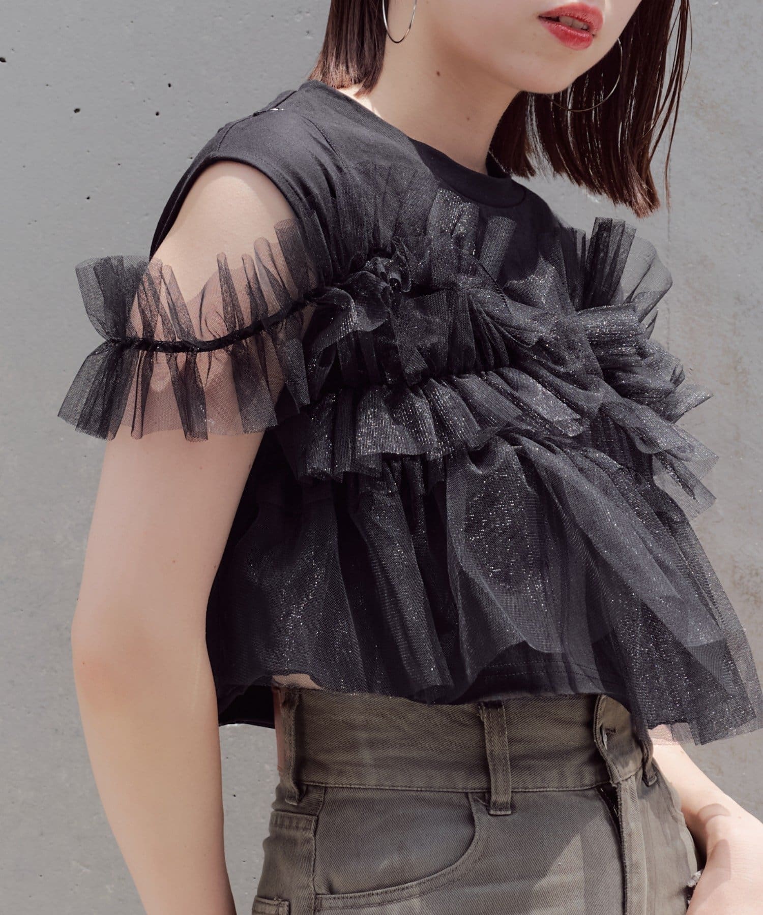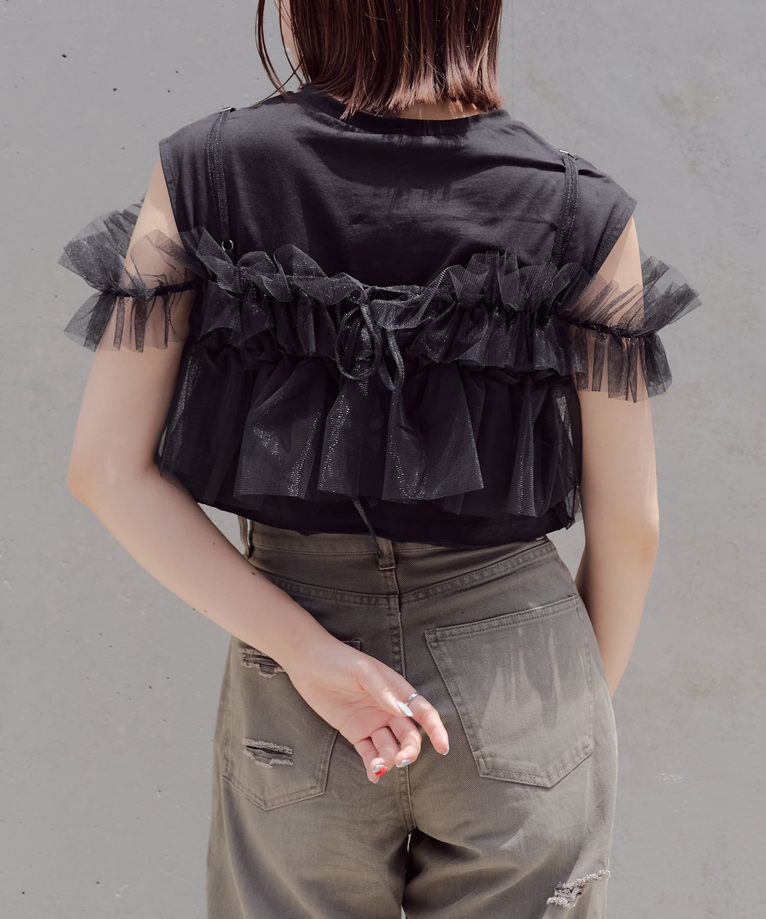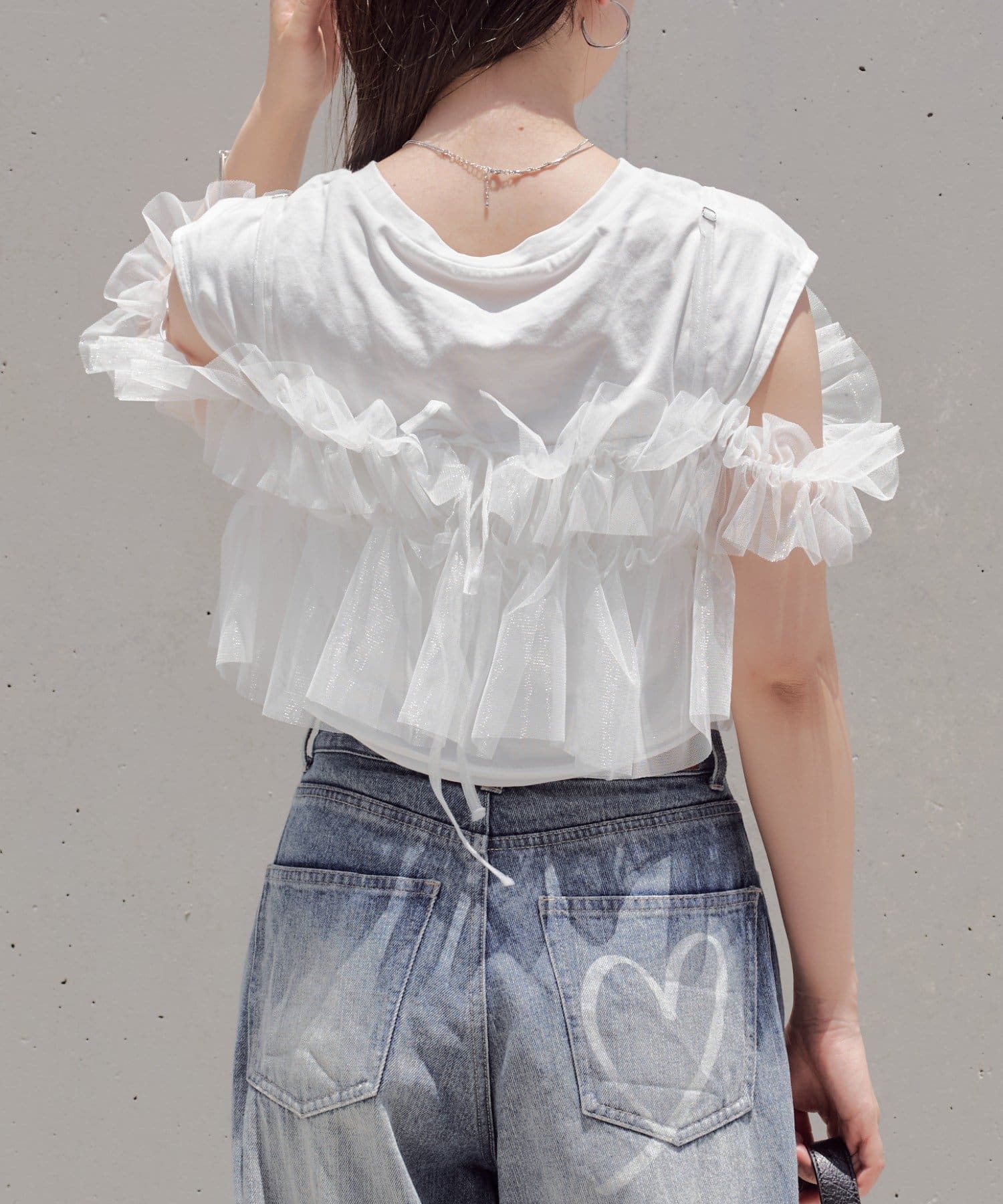 ラメのチュールキャミが目を惹くレイヤードTシャツが登場♡