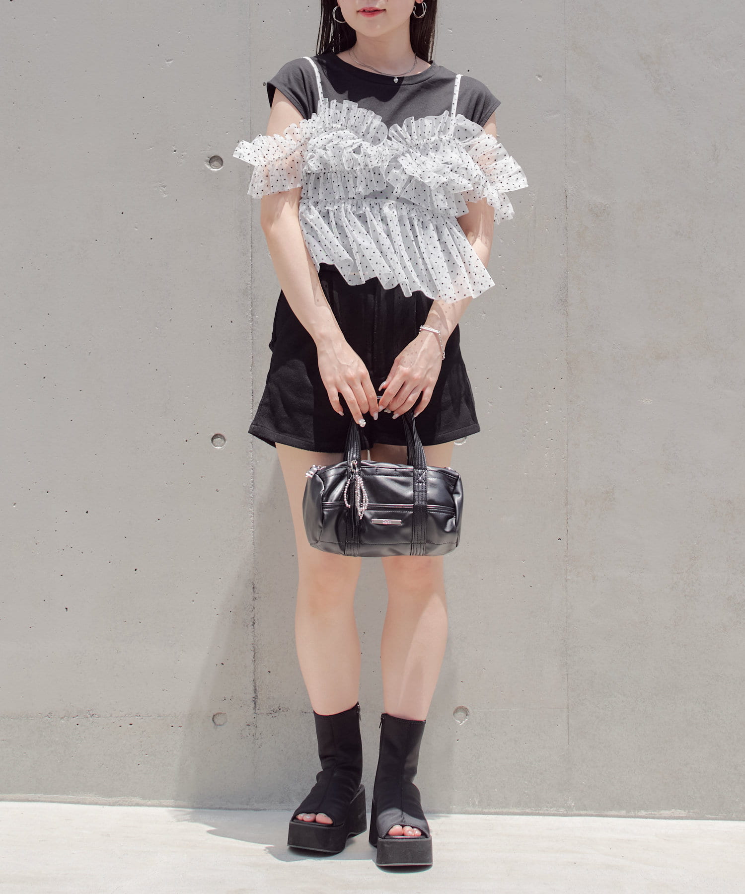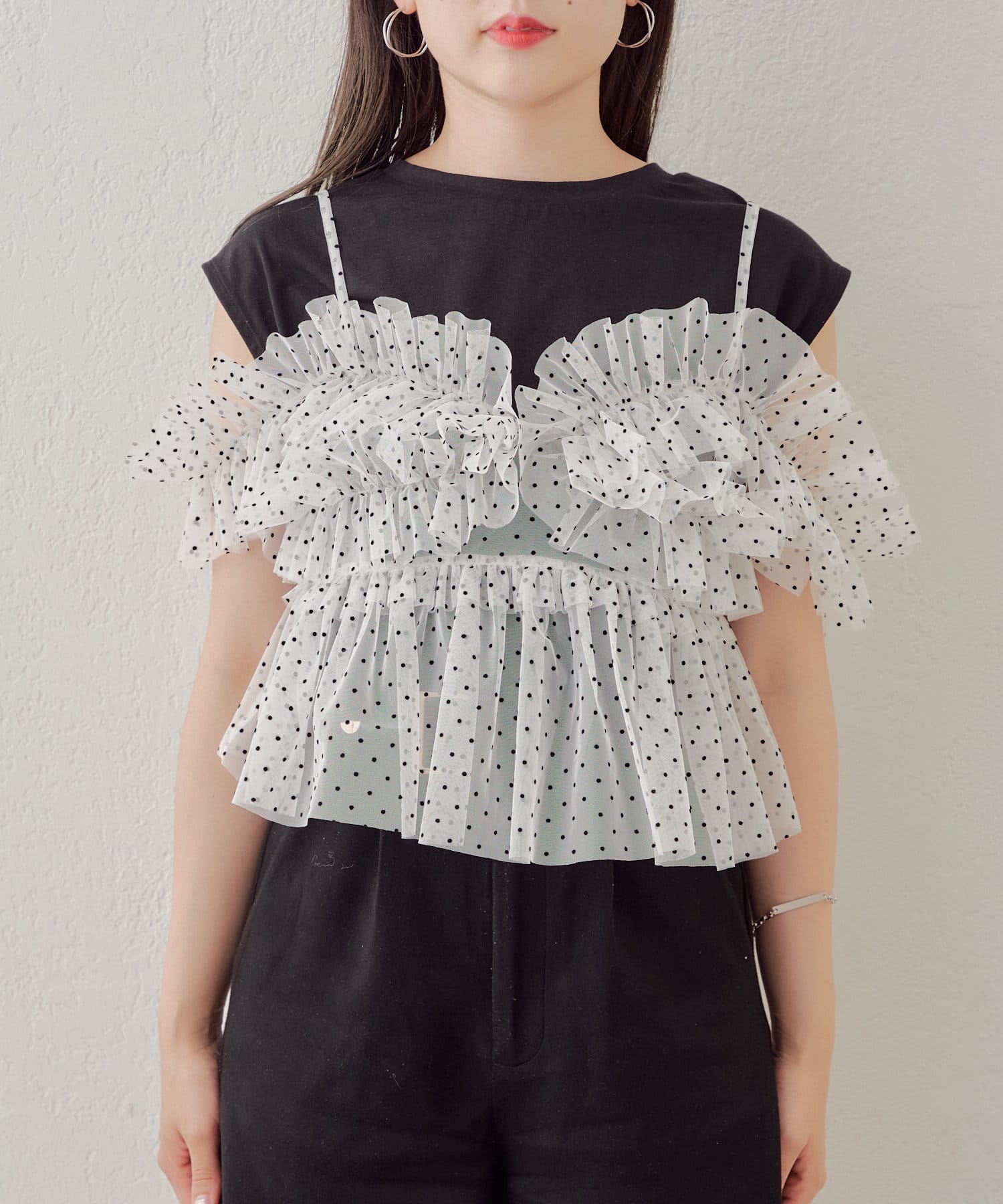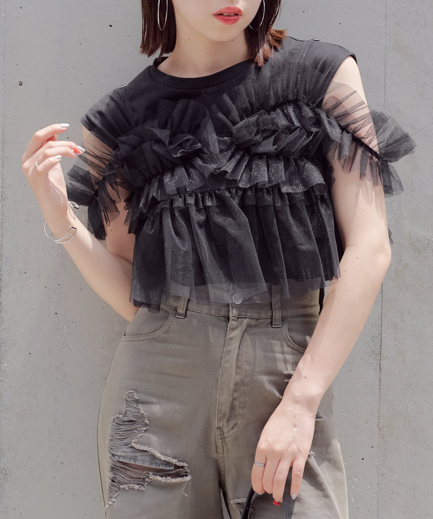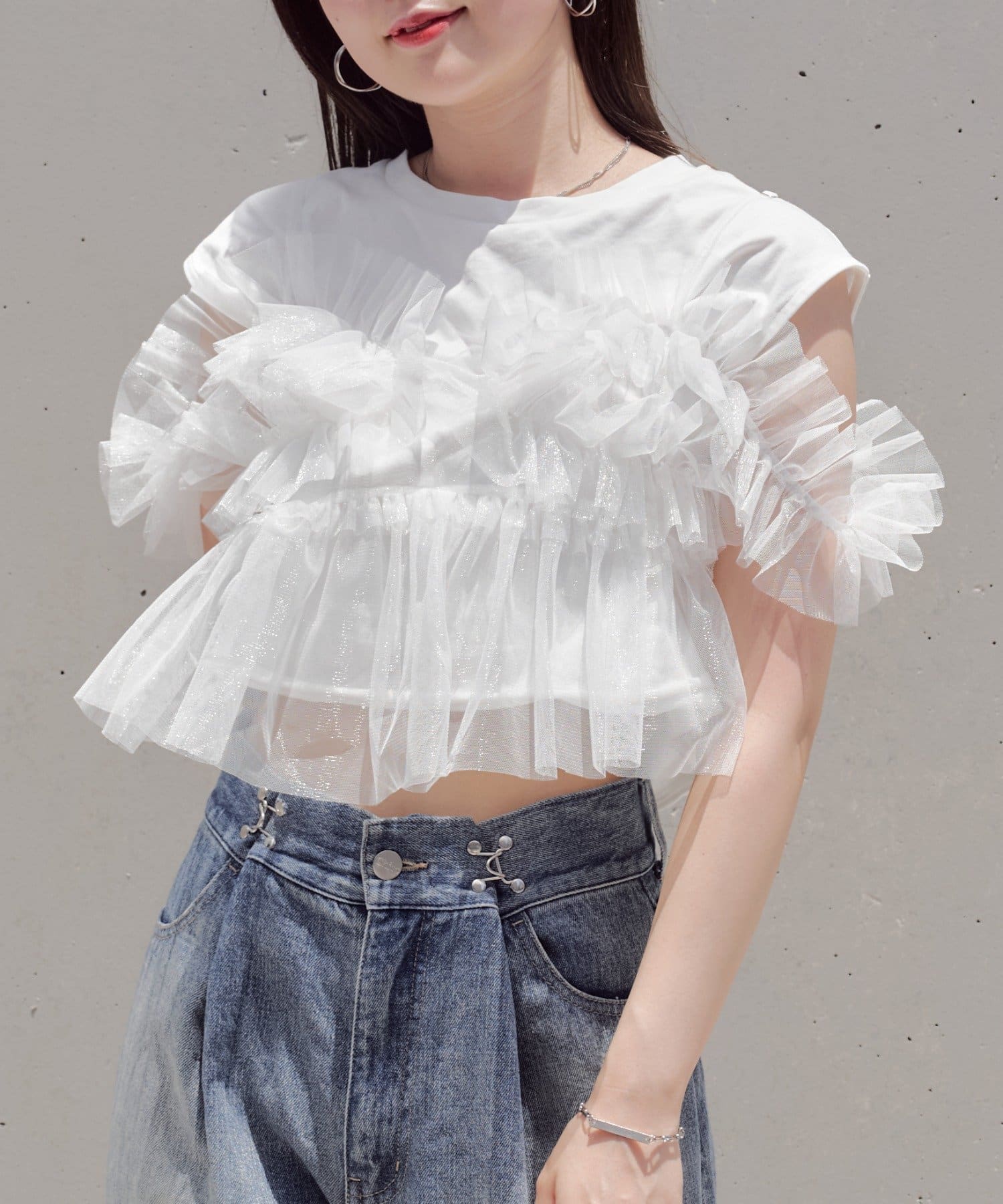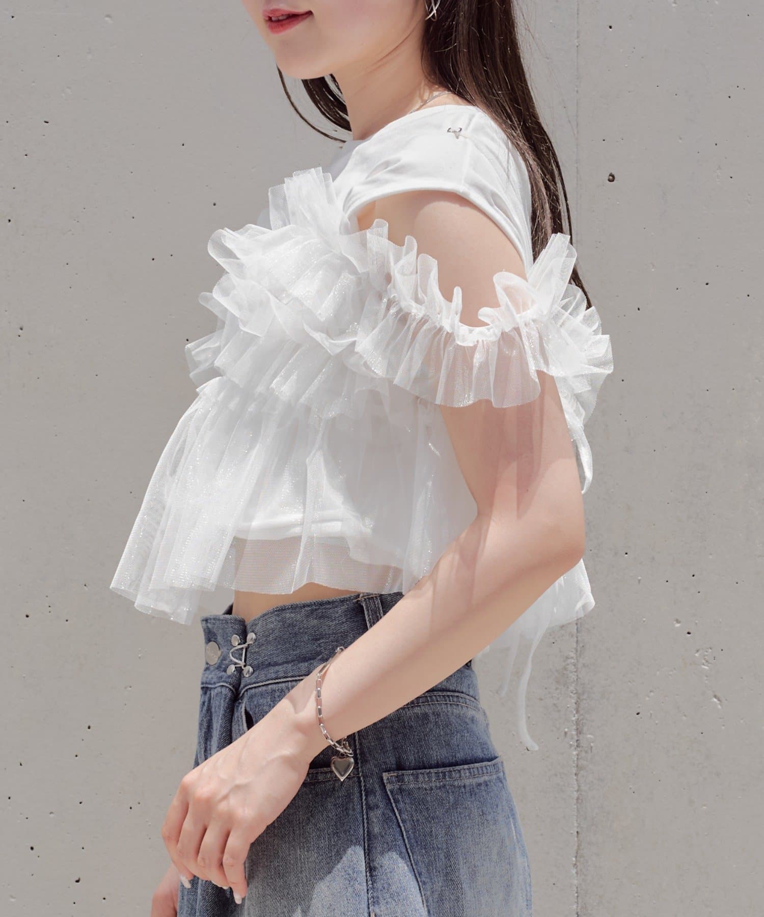 ラメのチュールキャミが目を惹くレイヤードTシャツが登場♡