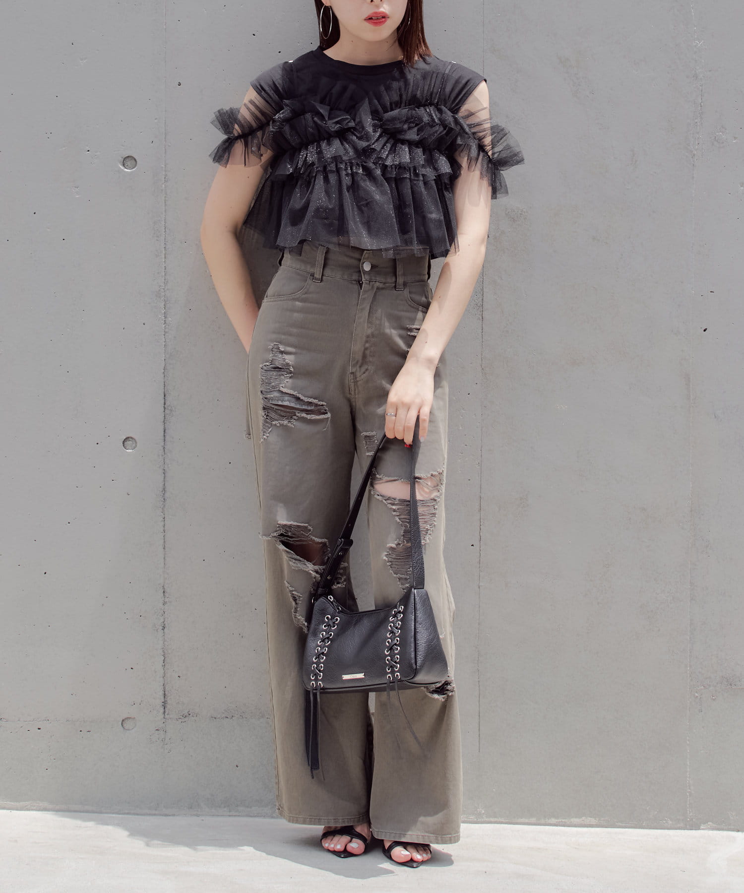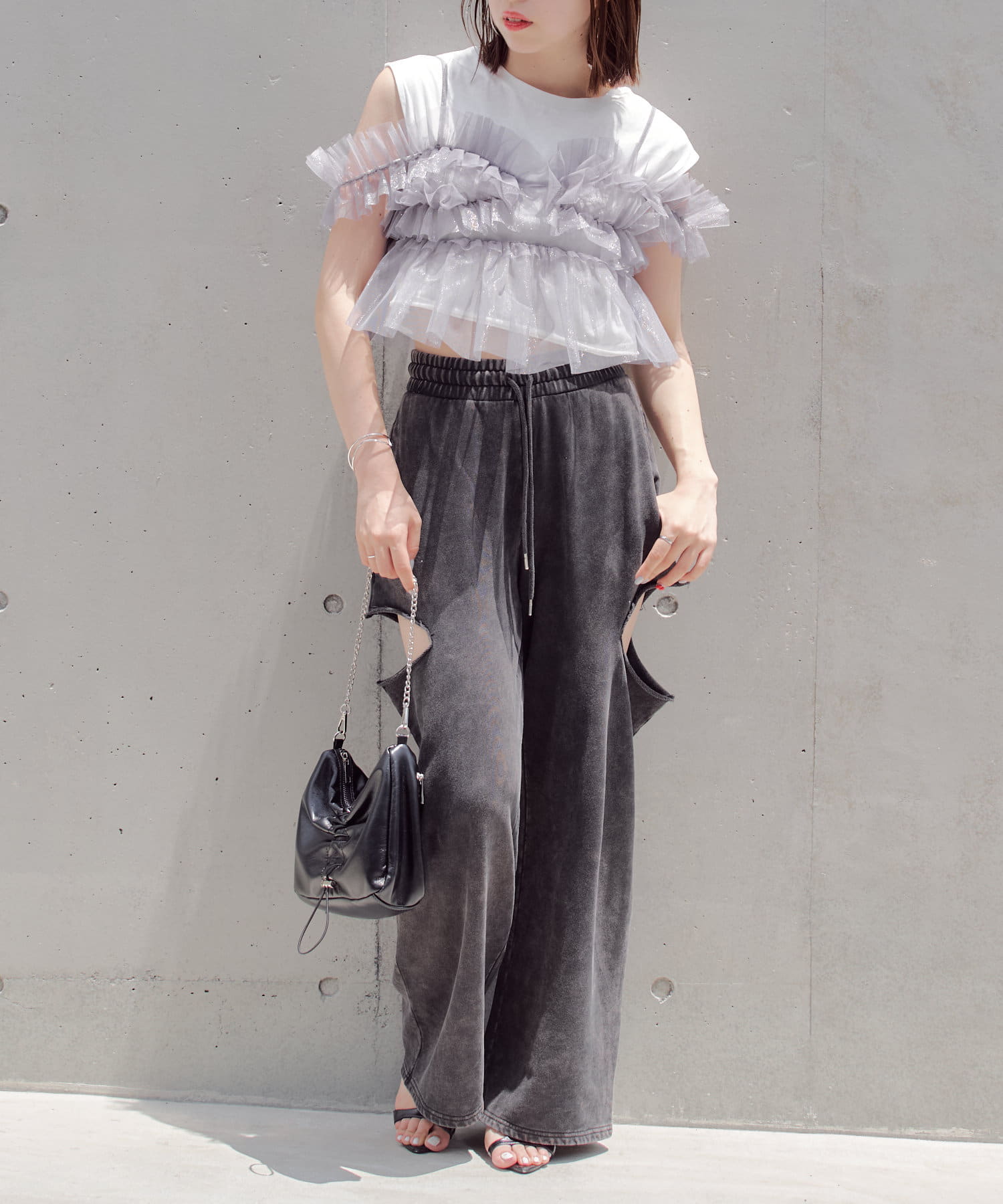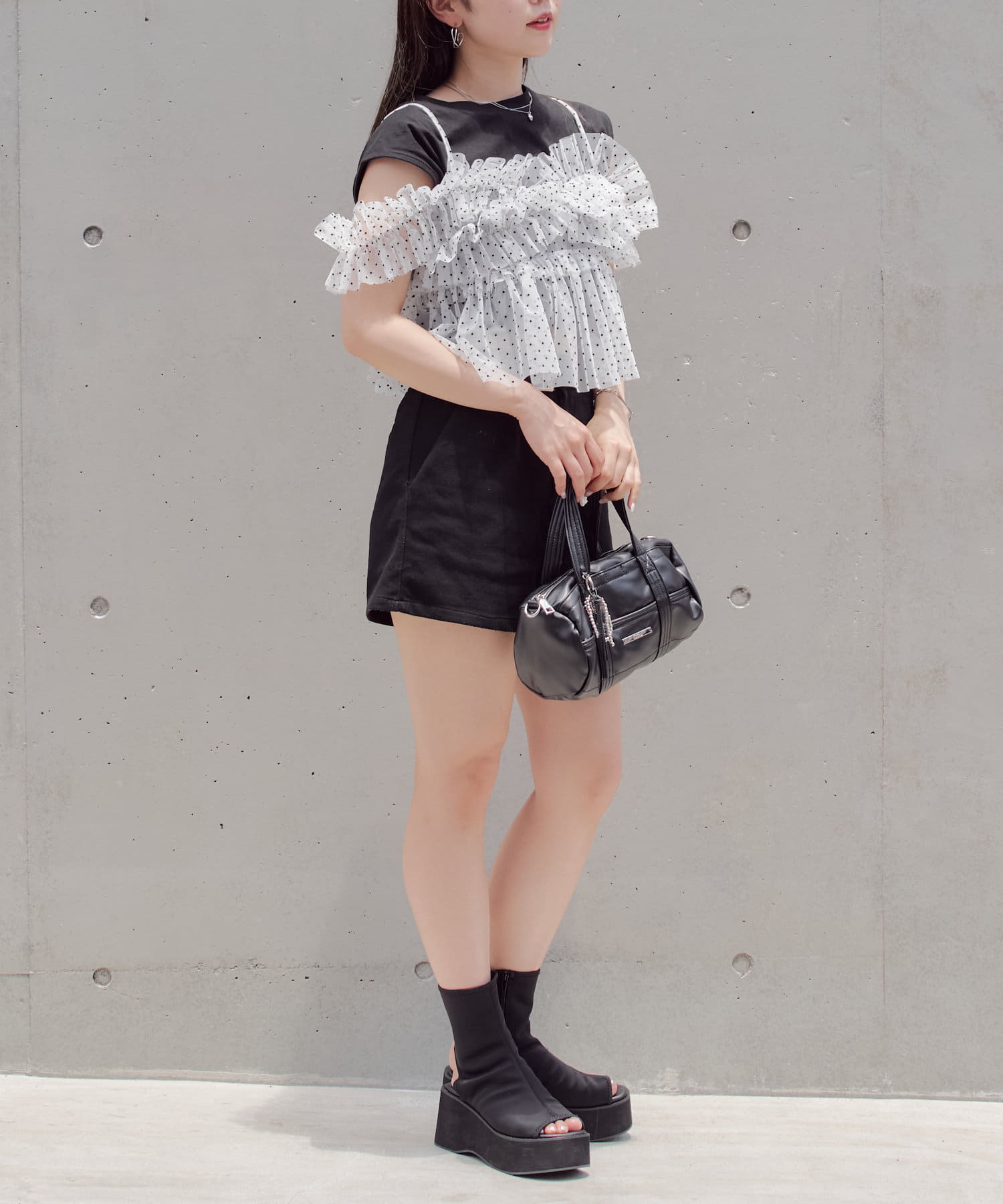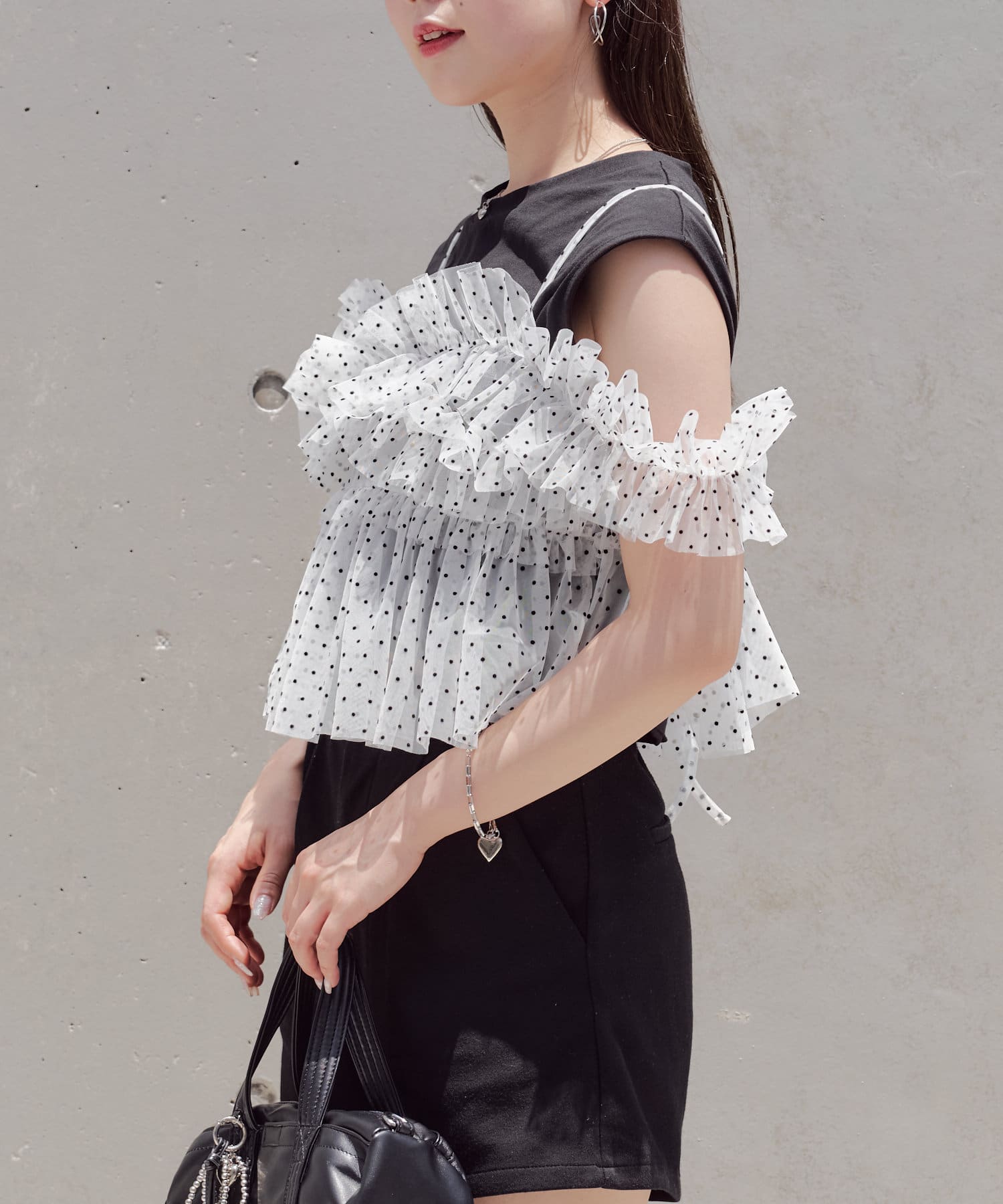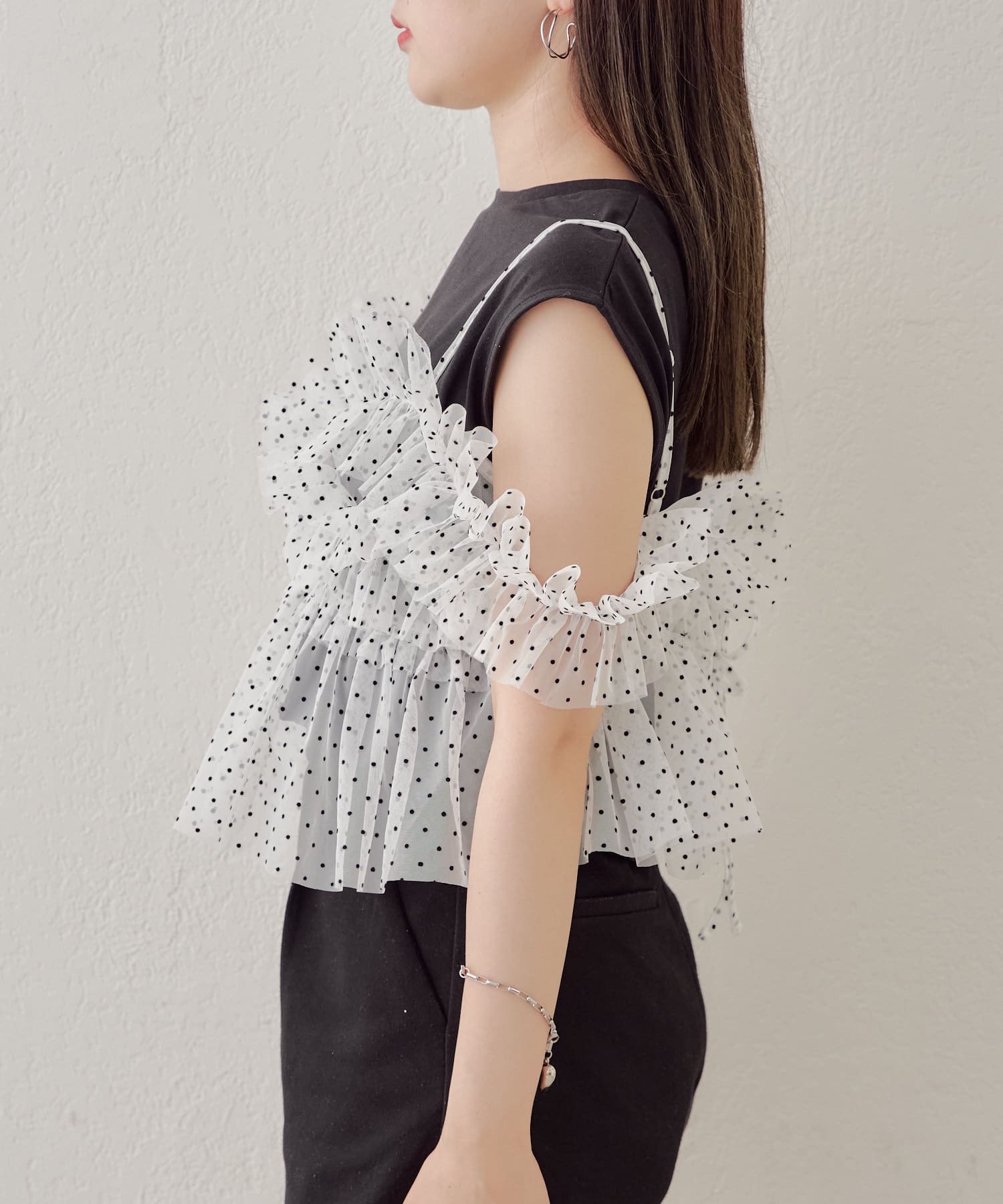 ラメのチュールキャミが目を惹くレイヤードTシャツが登場♡