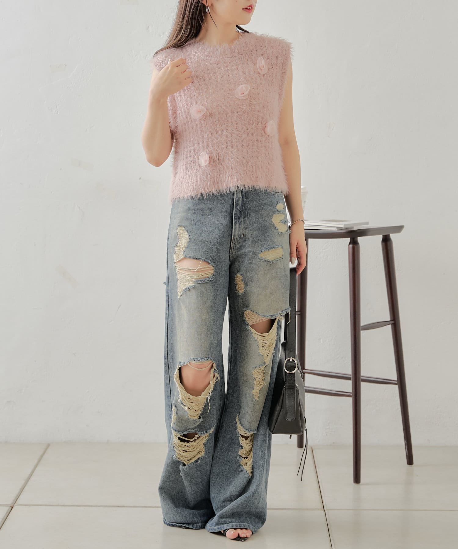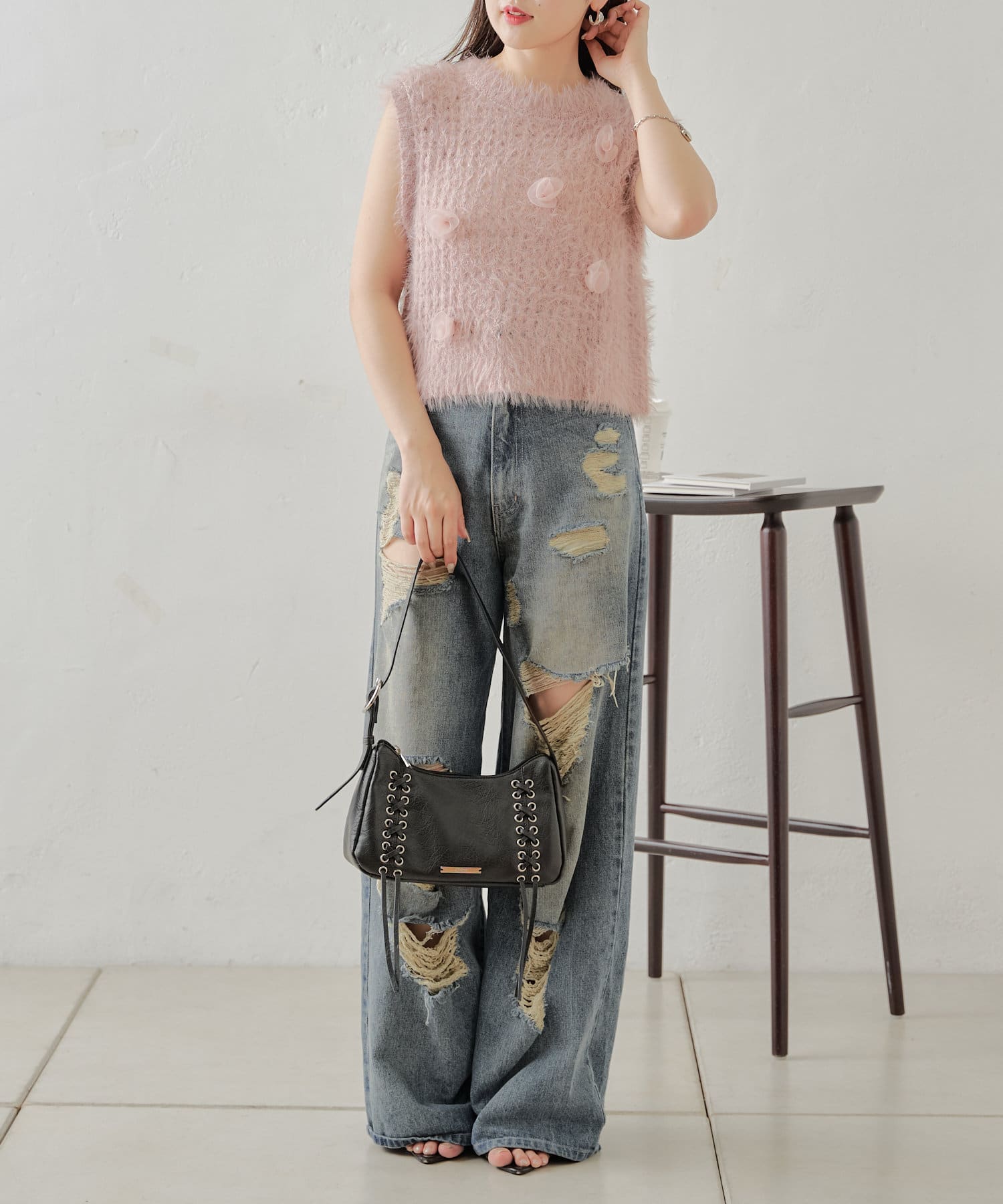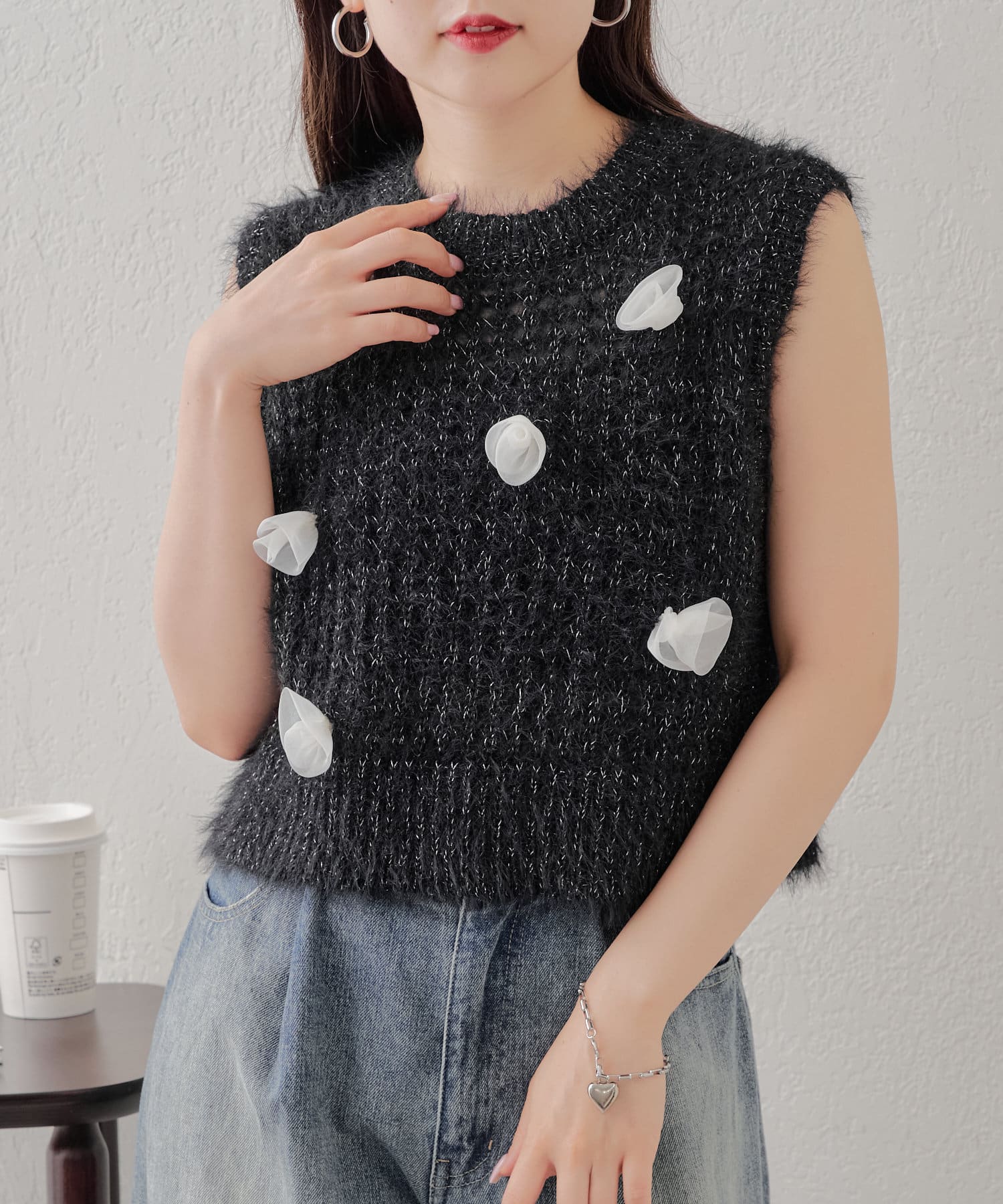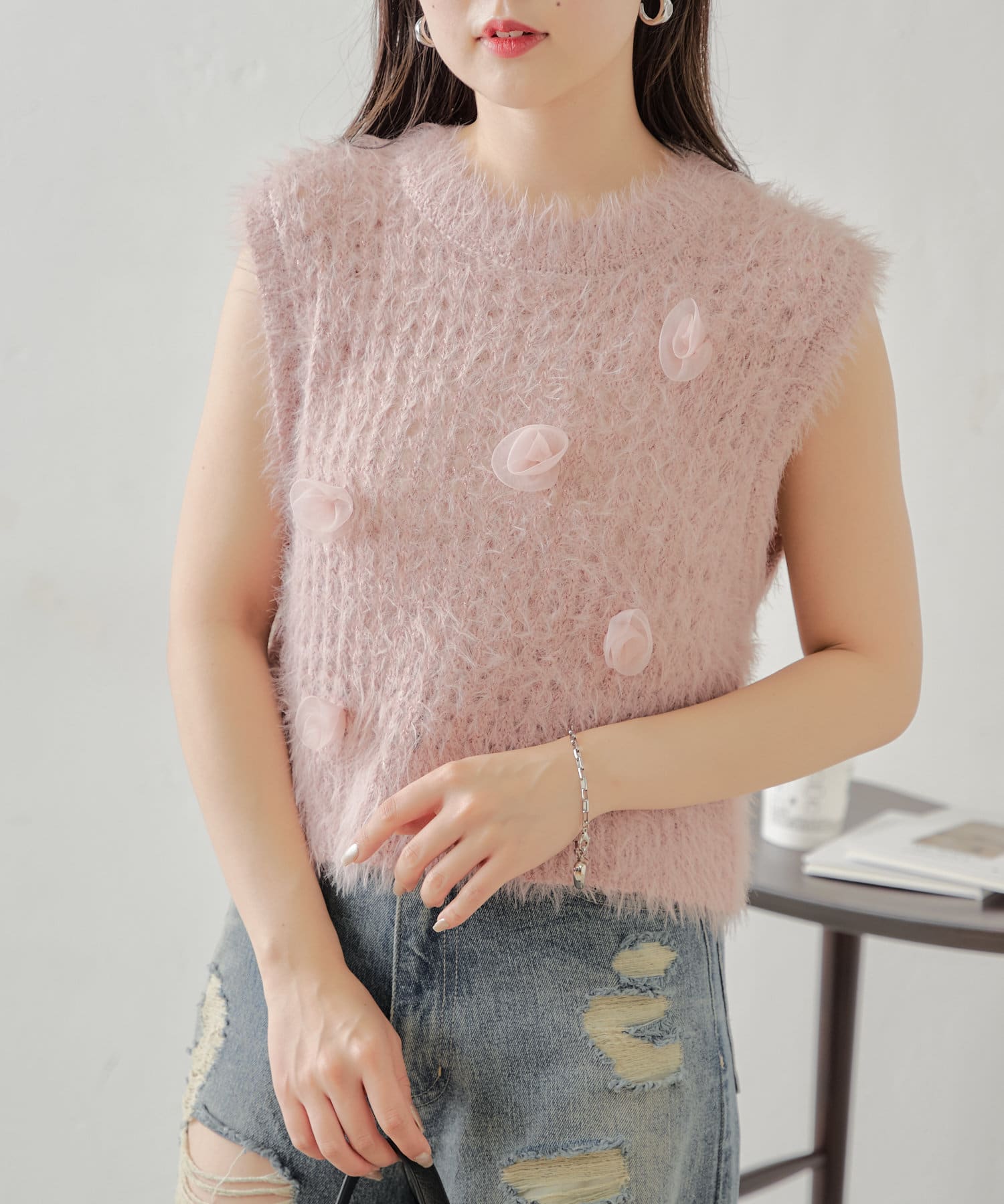 バラモチーフが可愛いニットタンクが登場♡