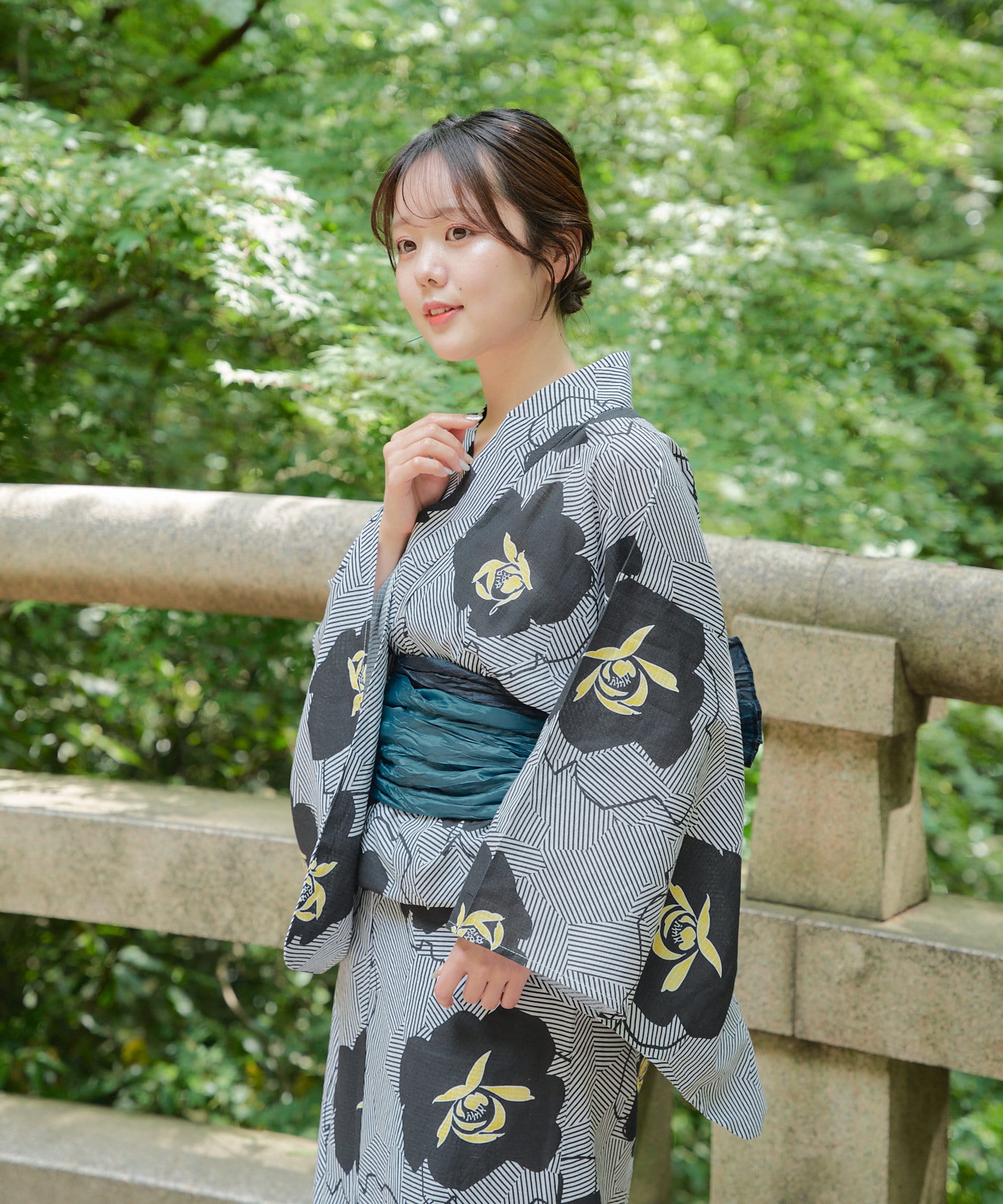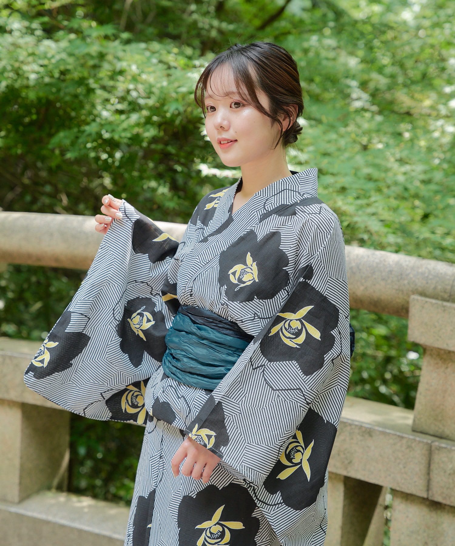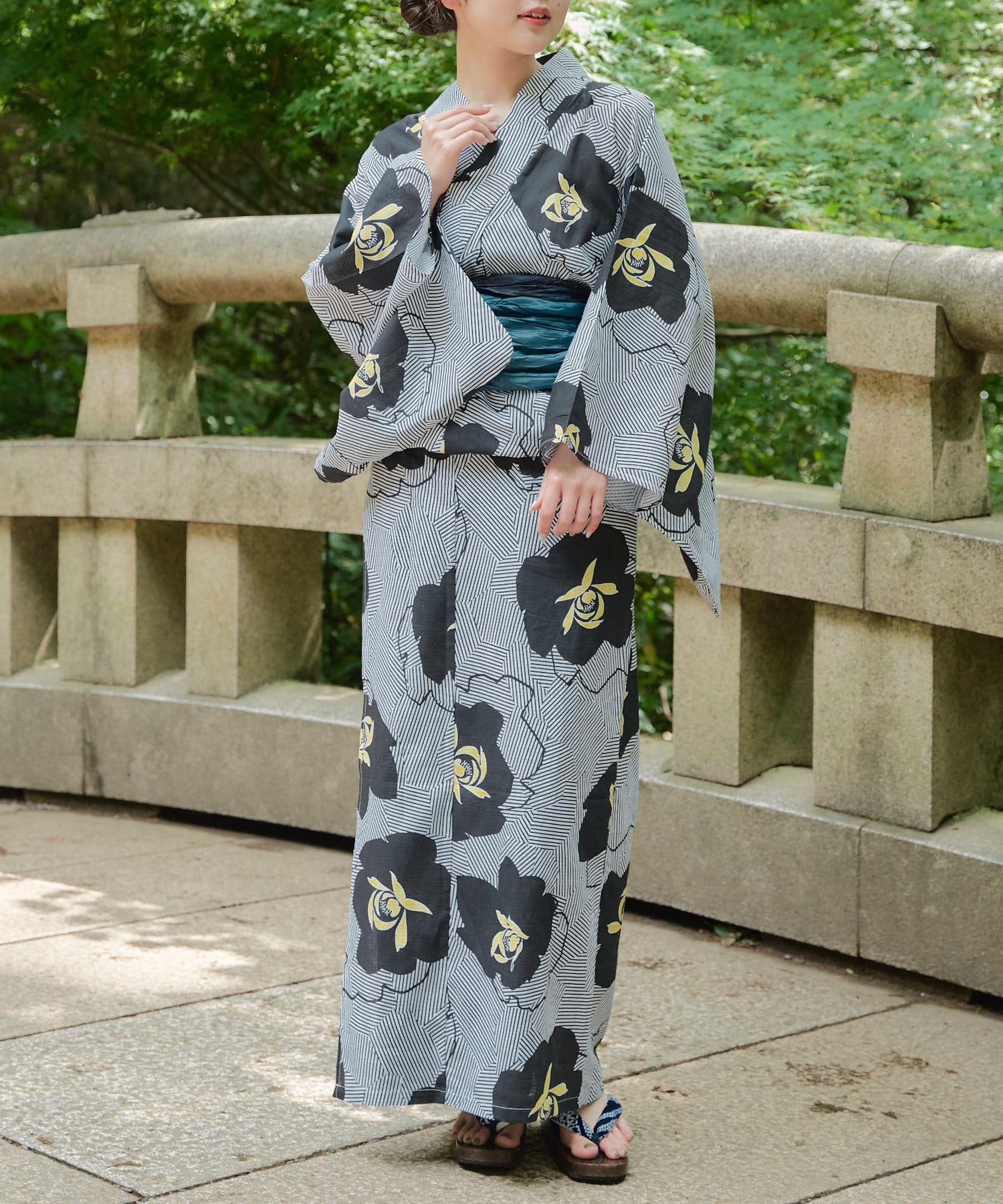 ・黄色の配色があることで普段シックな色の浴衣を着ない方にも挑戦しやすくなっております。