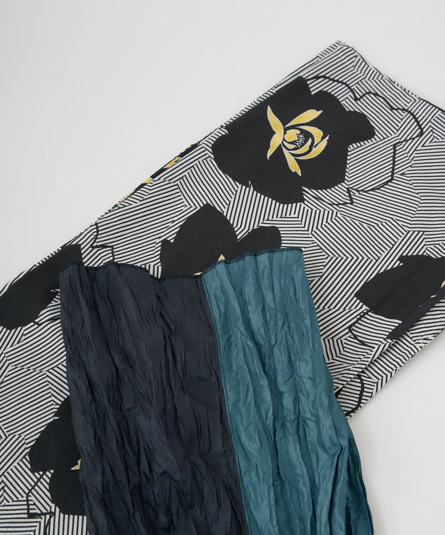 ・モダンな幾何学模様にアクセントとなる椿が印象的なデザイン。