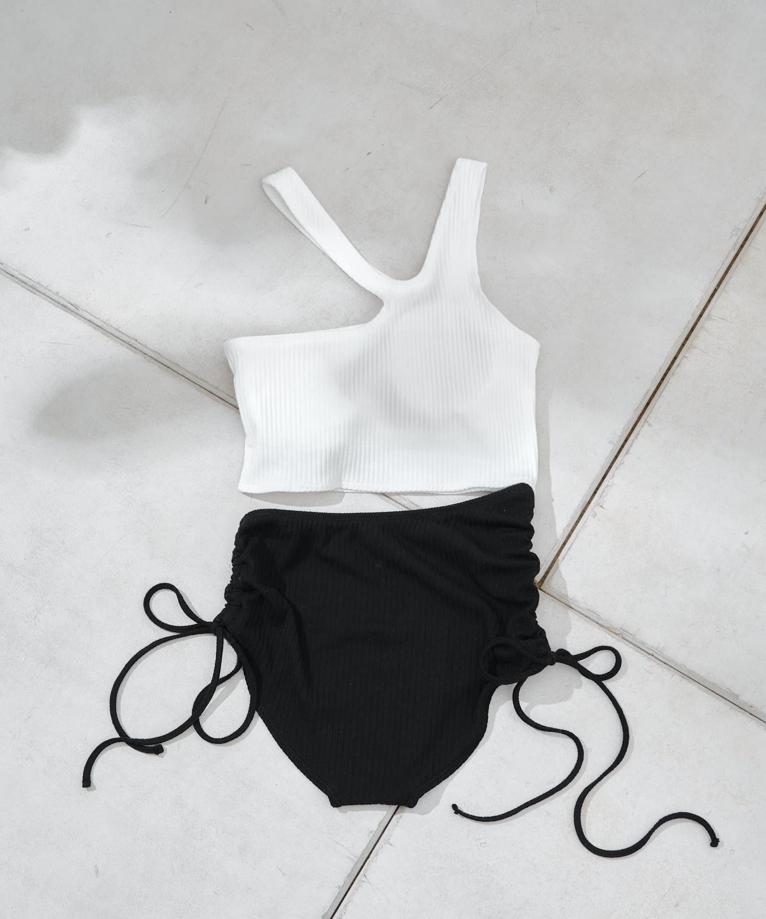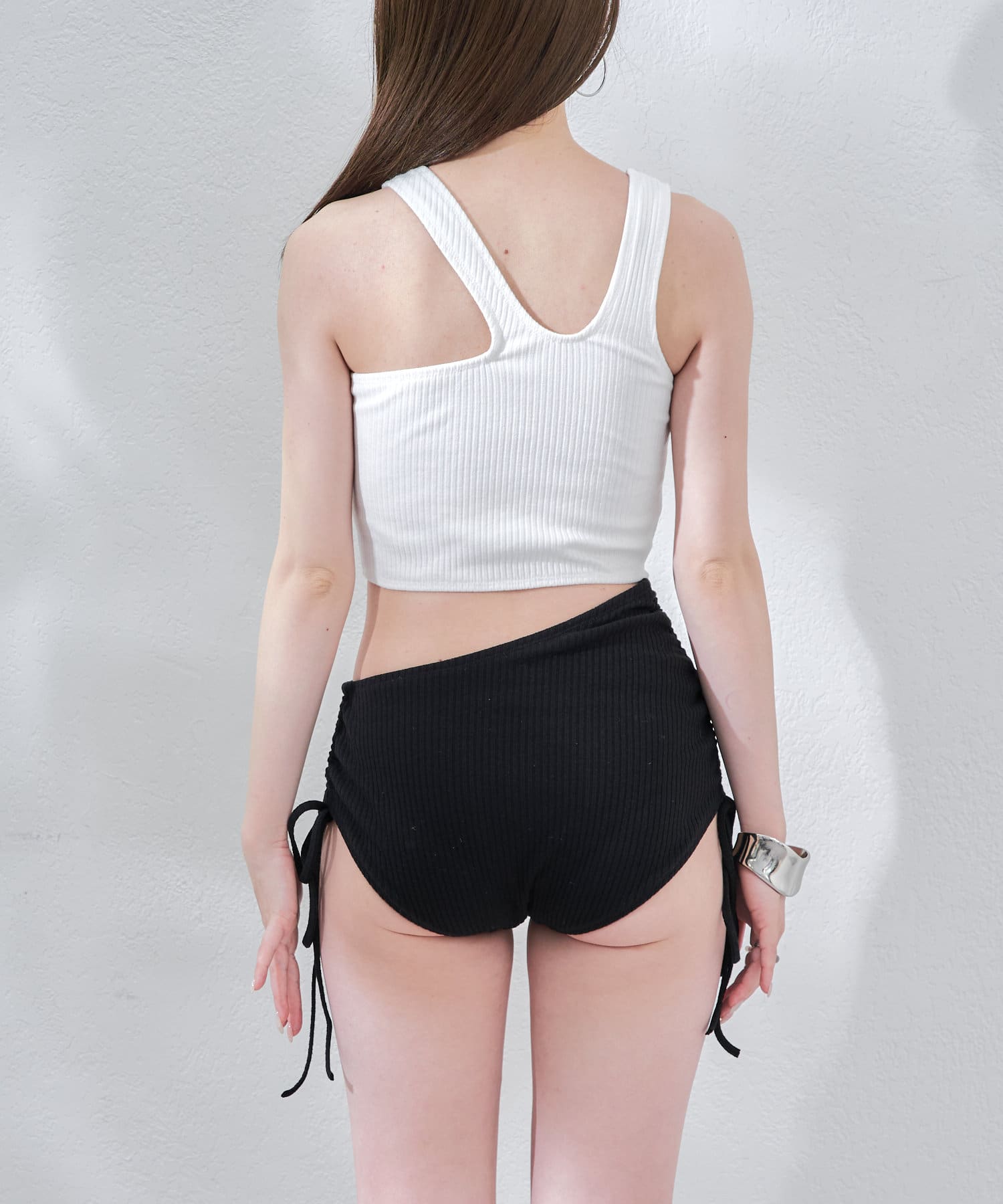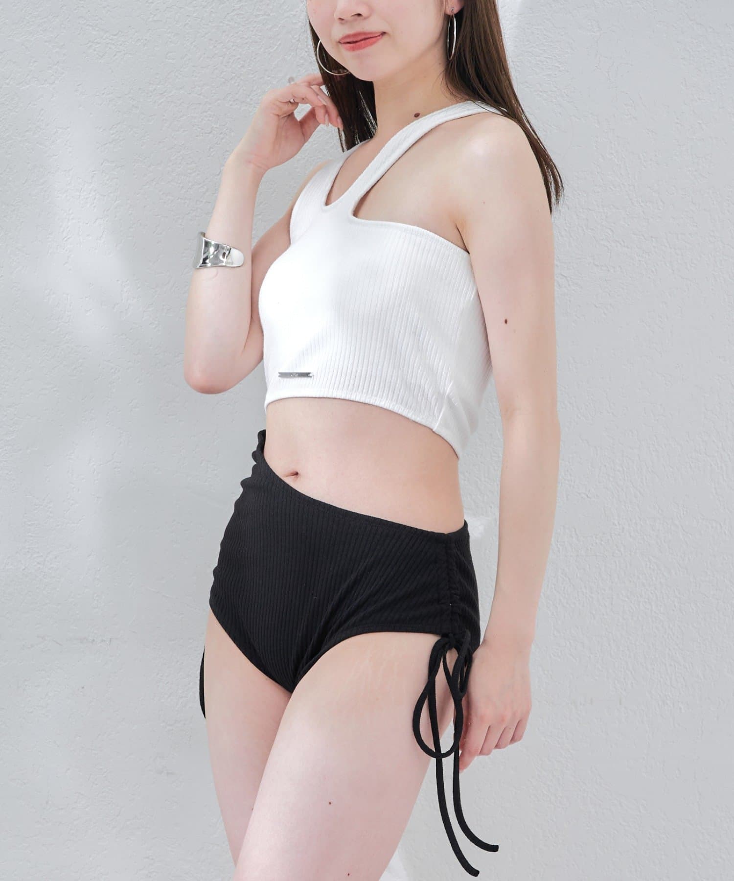 ・アシメデザインがトレンディで360°どこから見てもおしゃれ見えするスイムウェア。
