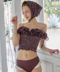 ・フリルとギャザーデザインがポイントのスイムウェア。
