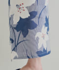 ・ネイビーとホワイトで描かれたユリの花は、涼やかで洗練された印象を与えます。