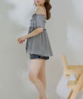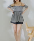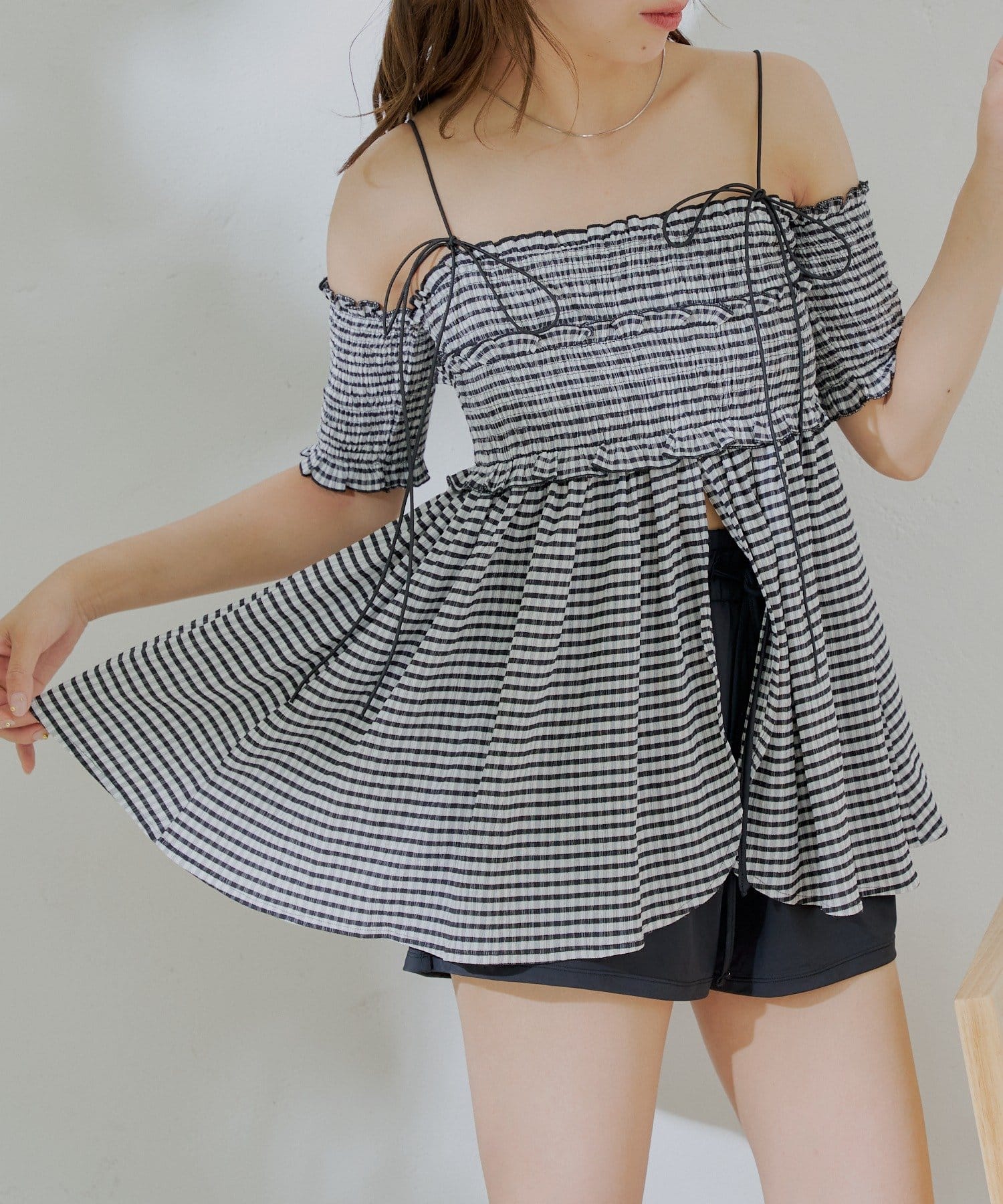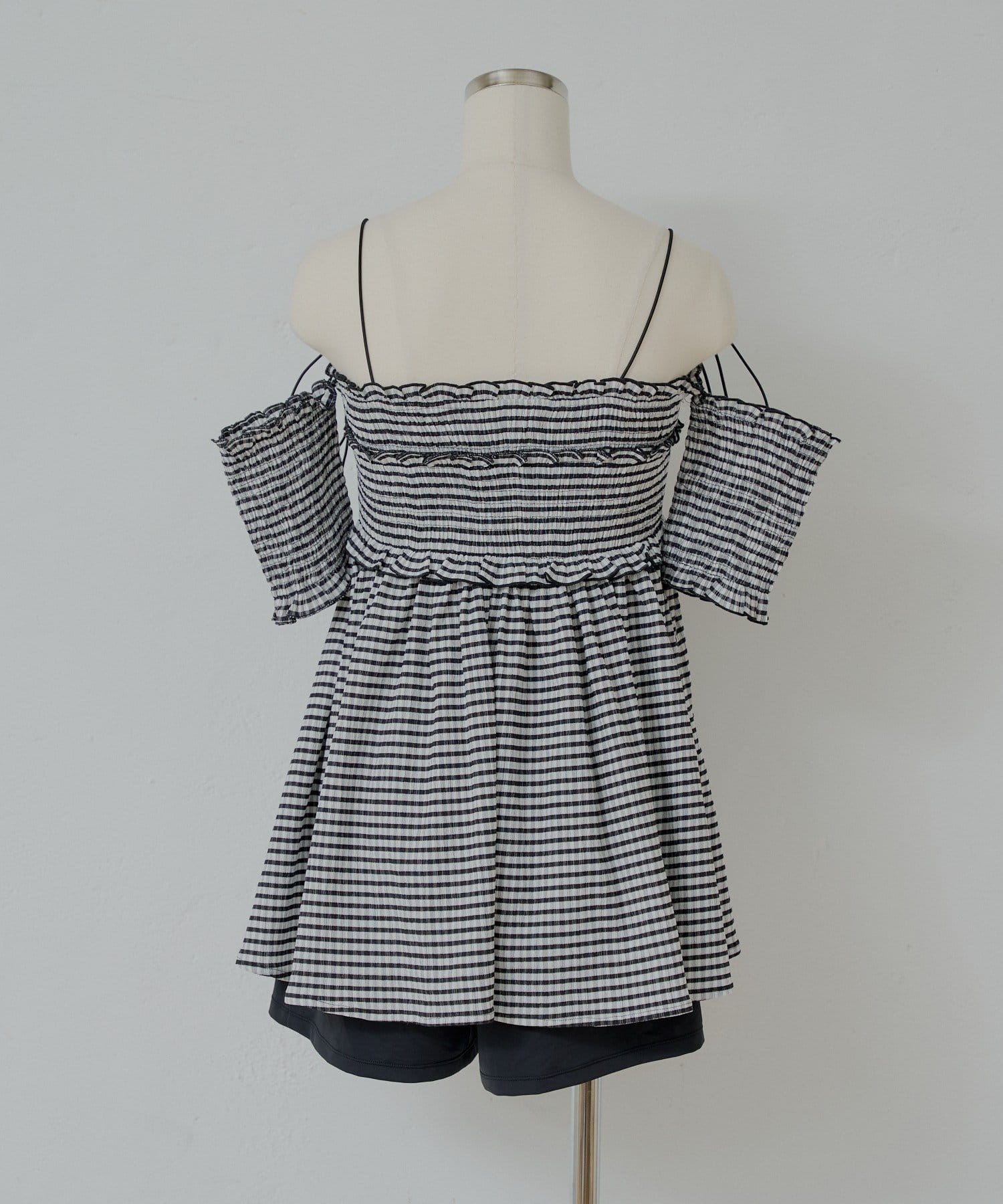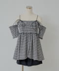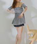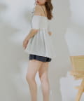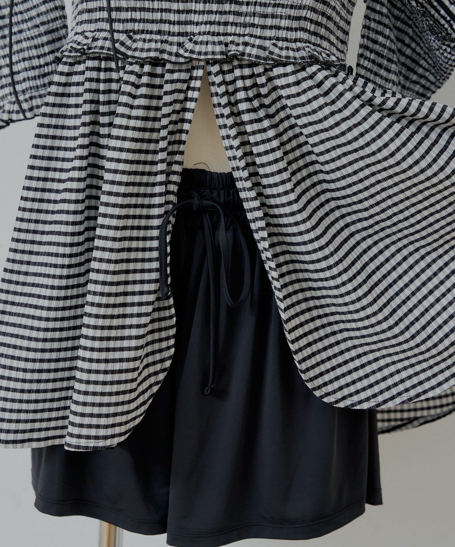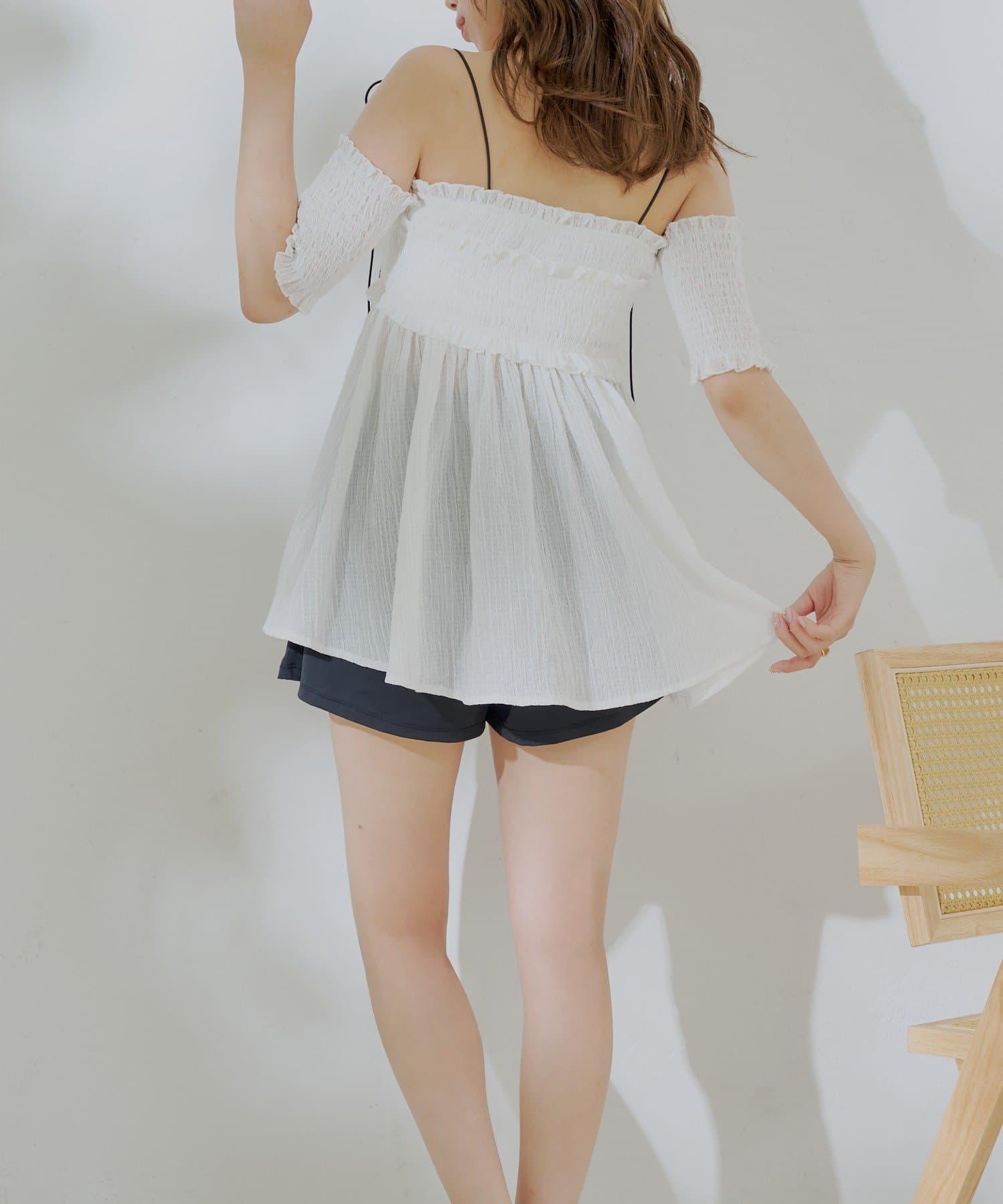 ・トップスはギャザーを寄せたふんわりとしたシルエットで、気になるお腹周りをカバーしてくれます。