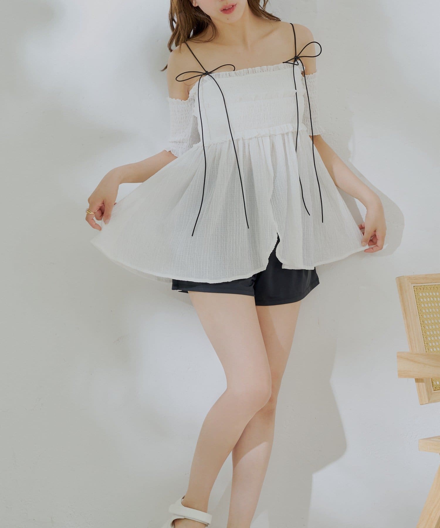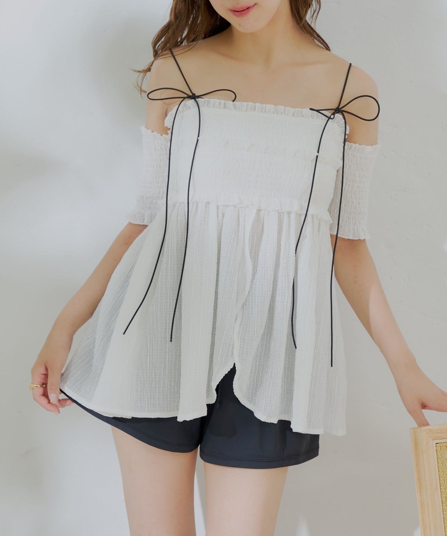 ・肩リボンは長さ調節可能なため、お好みの長さで着用いただけます。