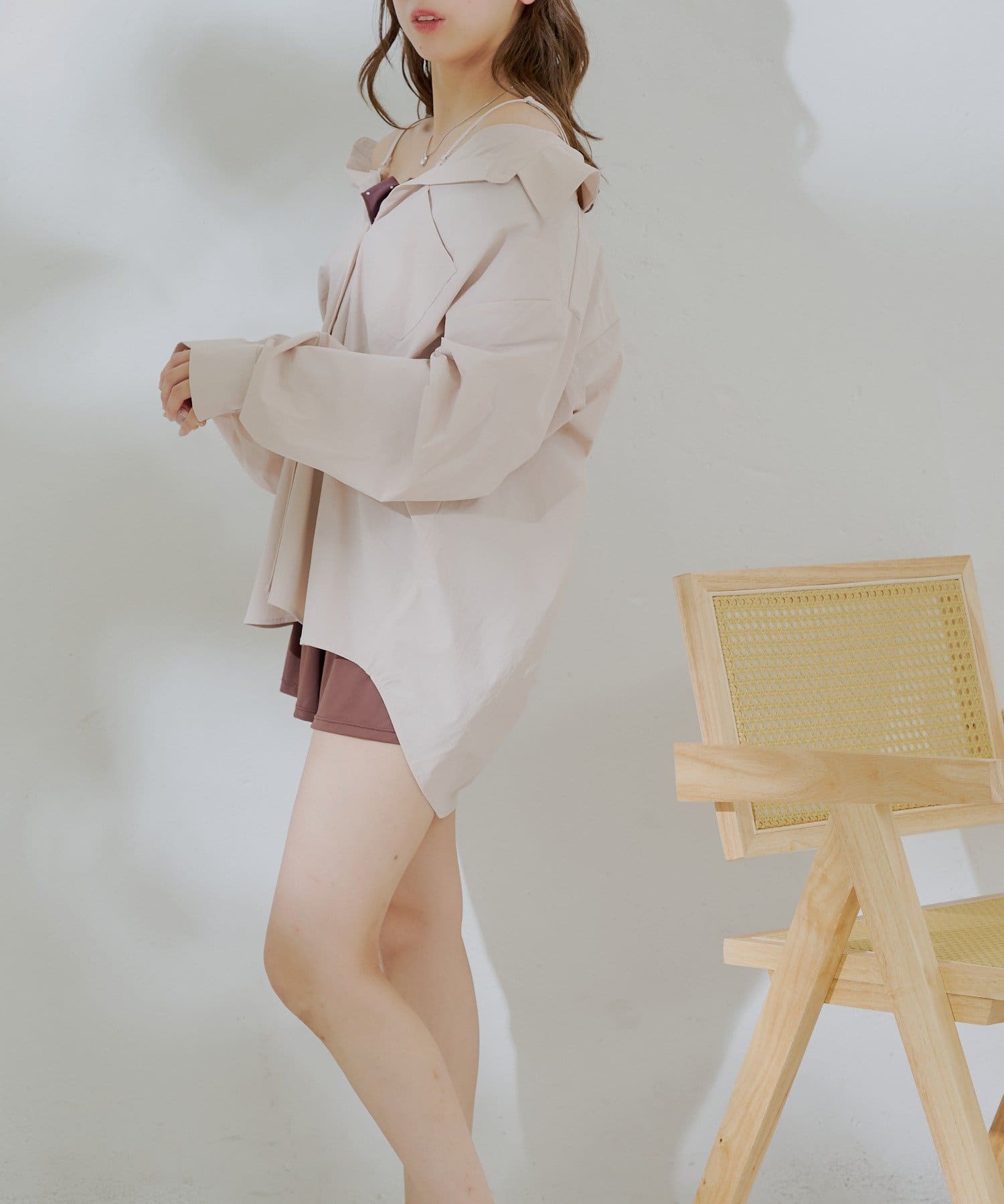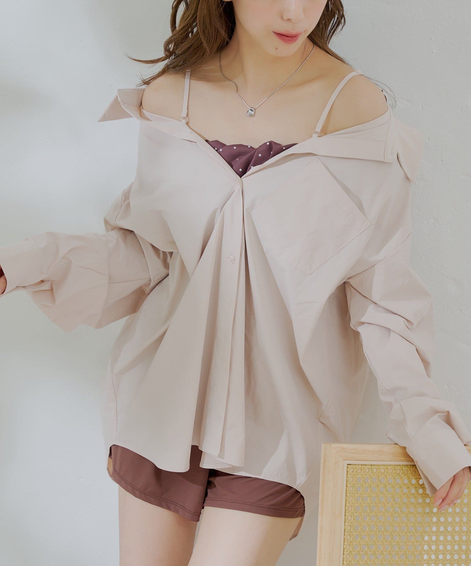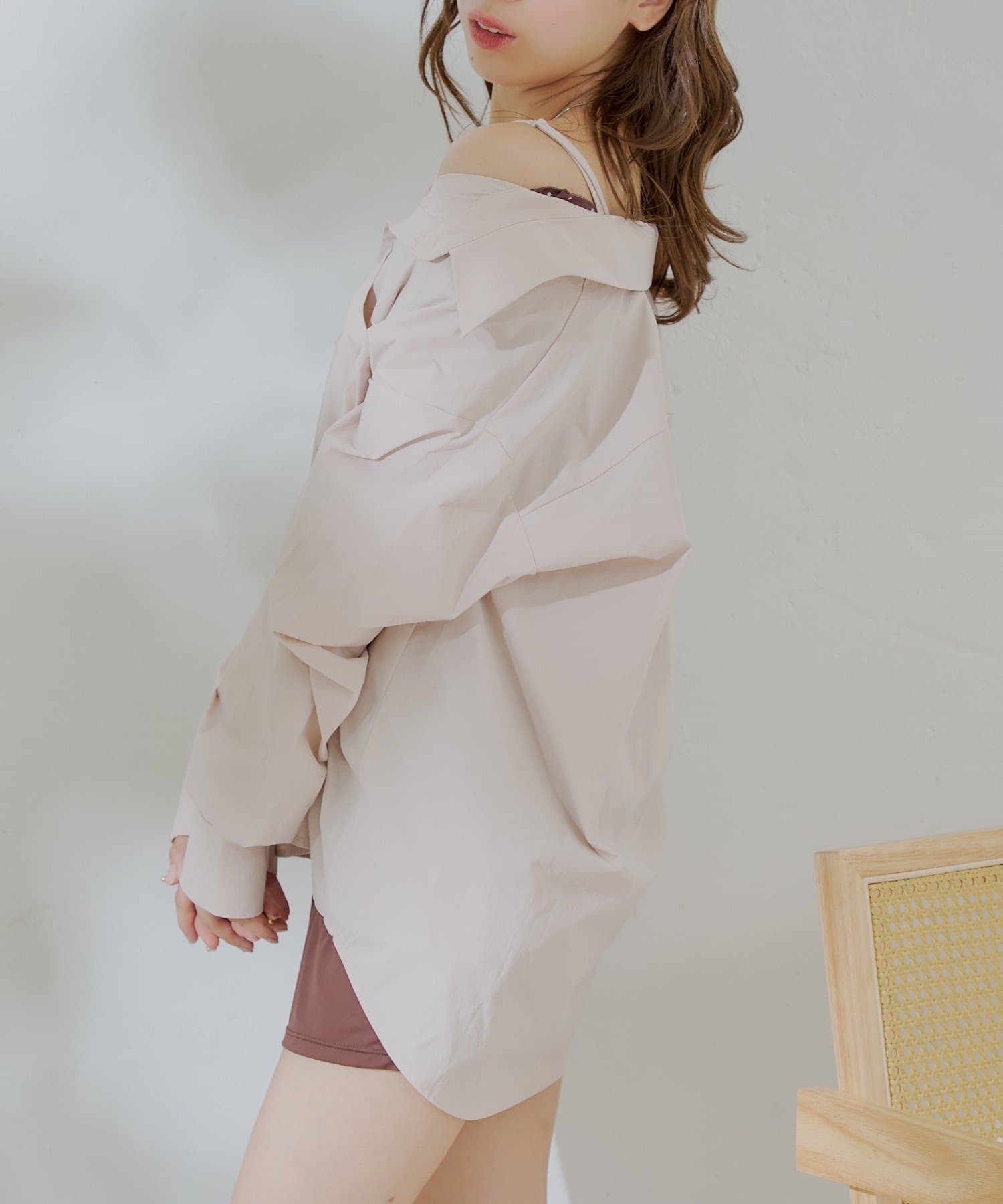 ・オフショルダーとしても着れる2way仕様のラッシュガードシャツ。