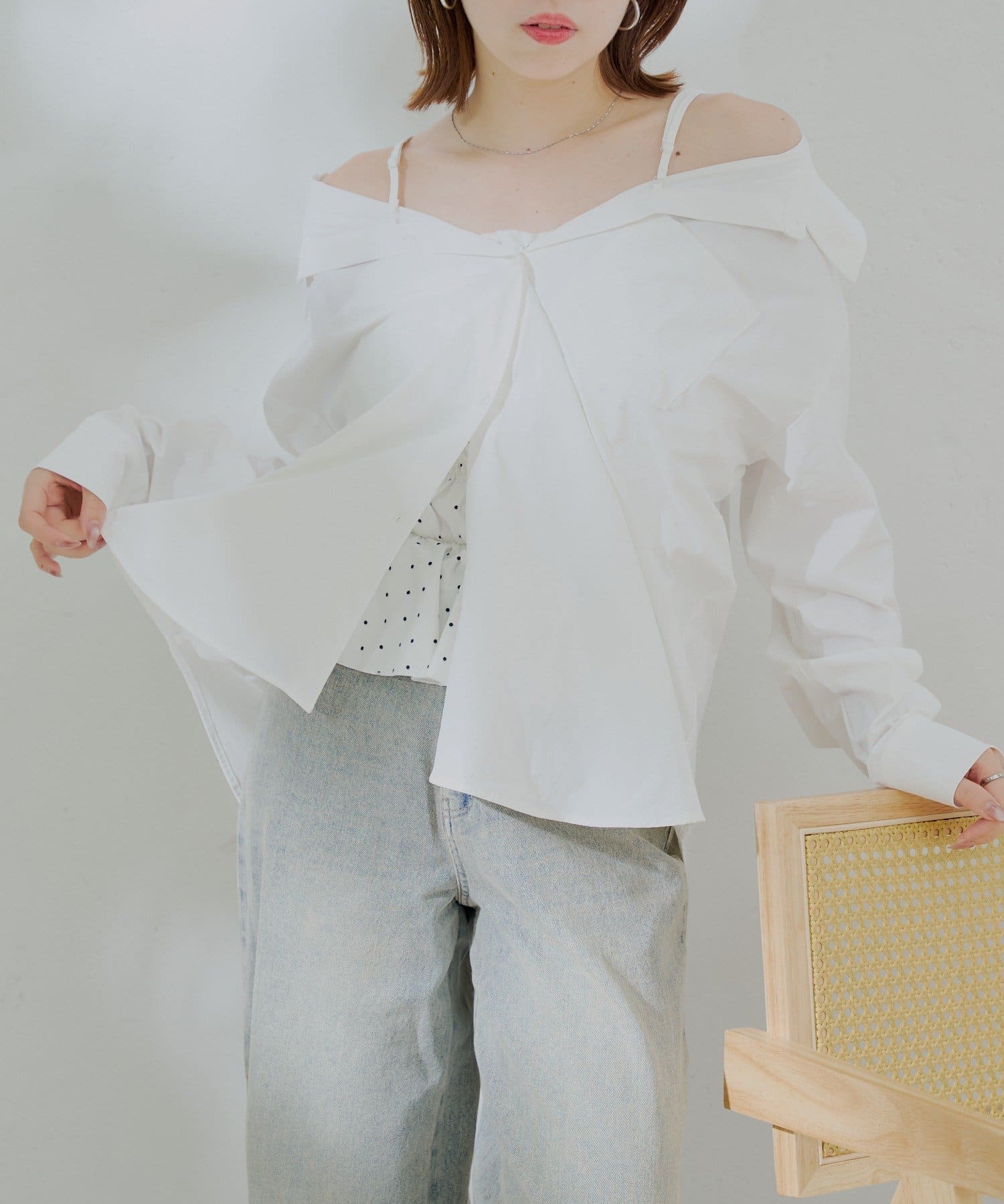 ・取り外しのできる肩紐を付けてオフショルダースタイルで着るのもおすすめです。