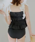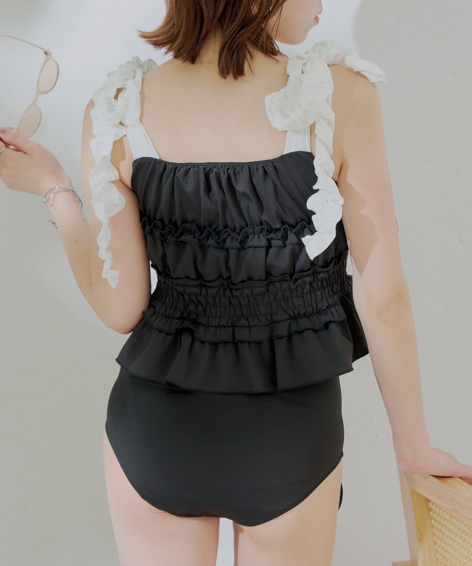 セットアップでも着れるアイテム:肩フリルシャーリングトップス