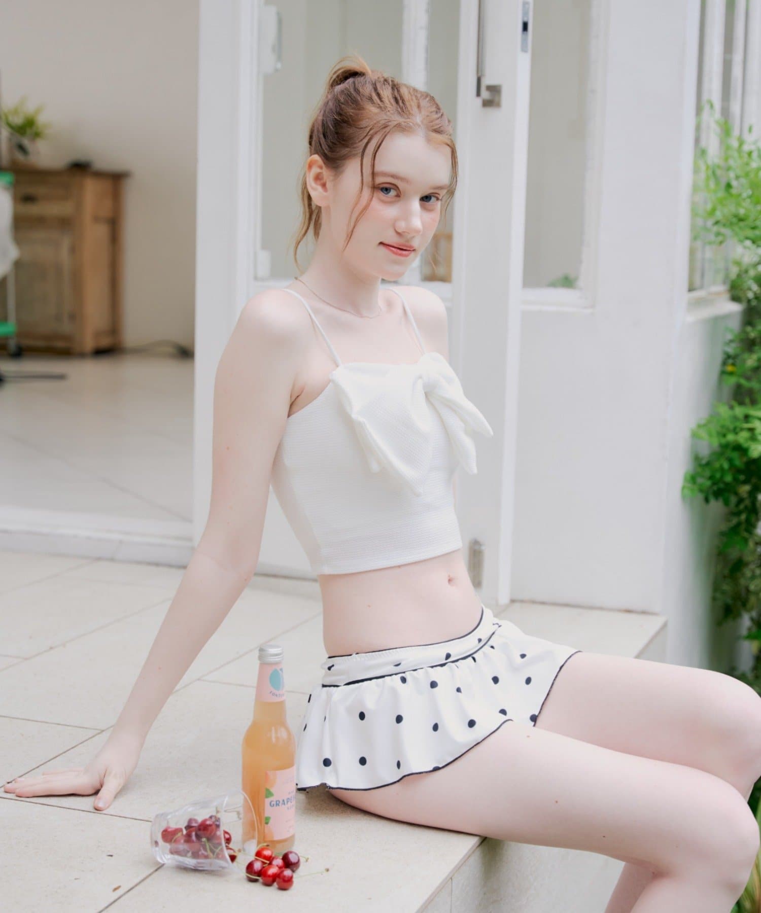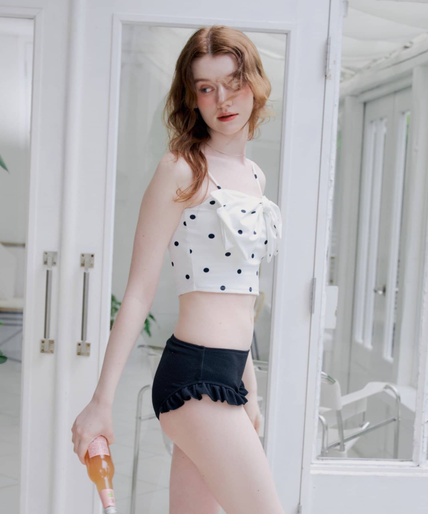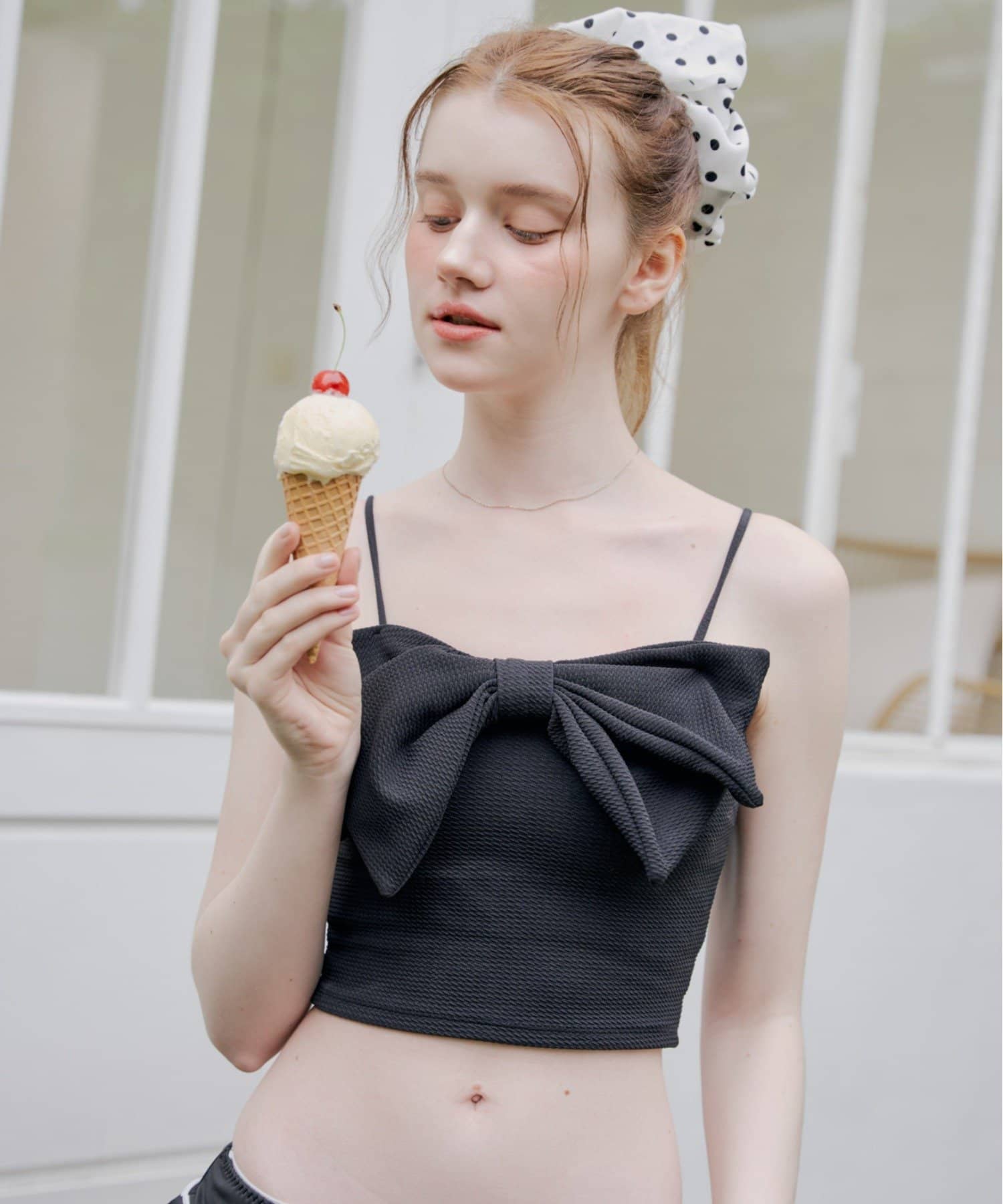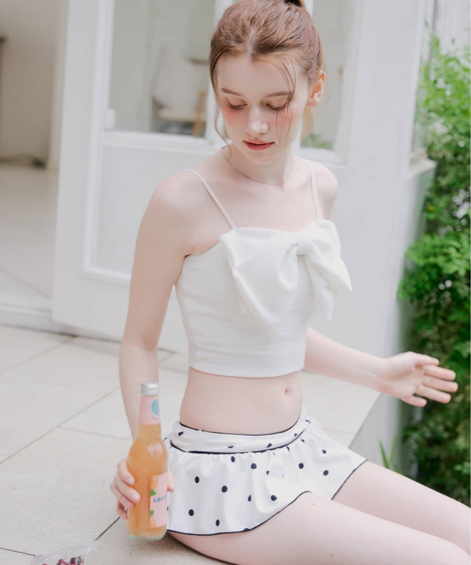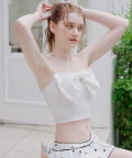 ・目を惹くフロントリボンが、胸元を華やかに彩ります。