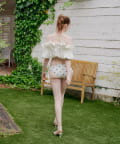 ・オフショルダーデザインがデコルテラインを綺麗に見せてくれます。
