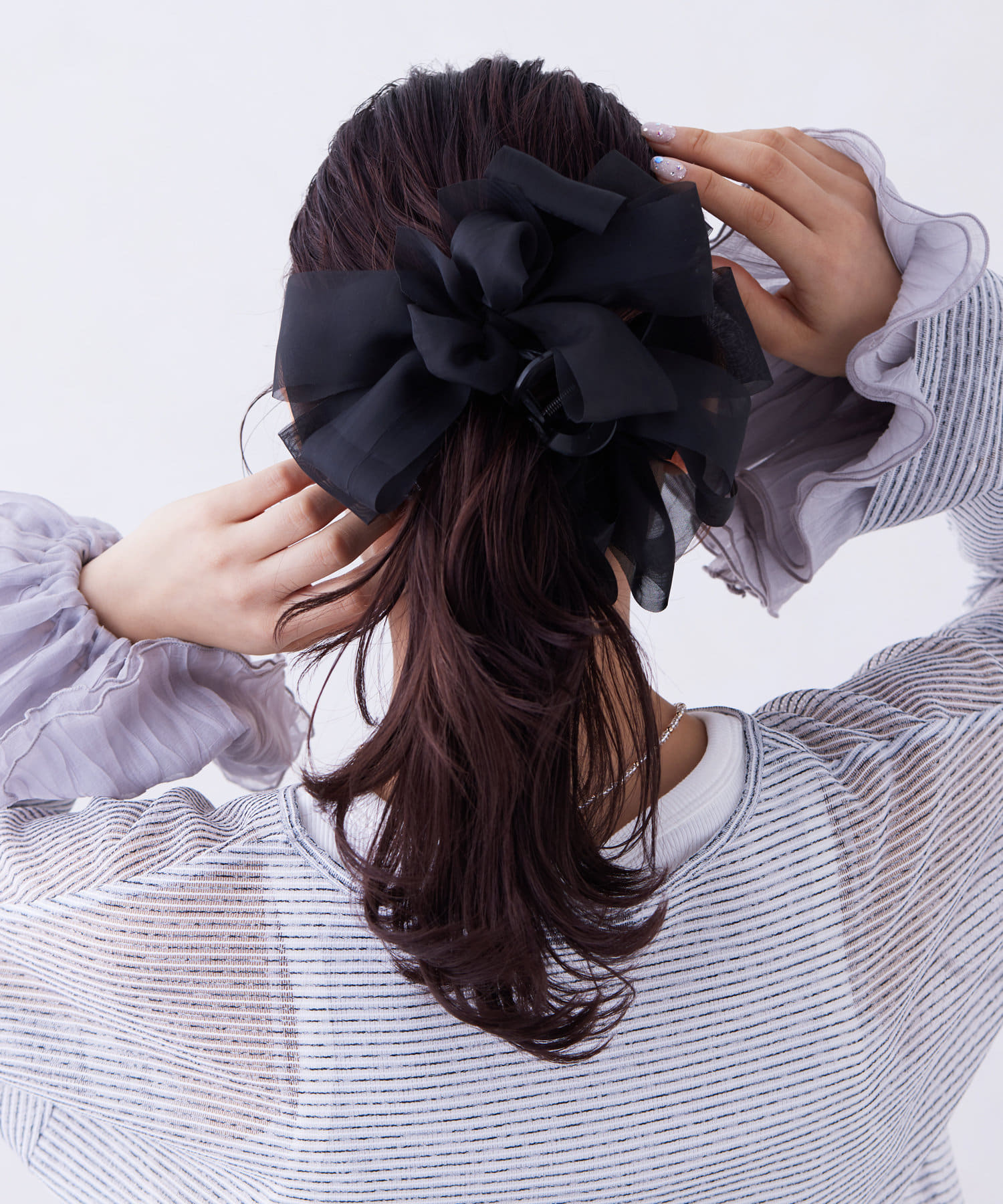 ボリュームのあるリボンが可愛いらしいです♪大きなクリップなのでロングヘアもまとまってくれて気に入ってます!髪をまとめたい季節になってきたので大ぶりクリップシリーズもっと出してほしいです🥺✨