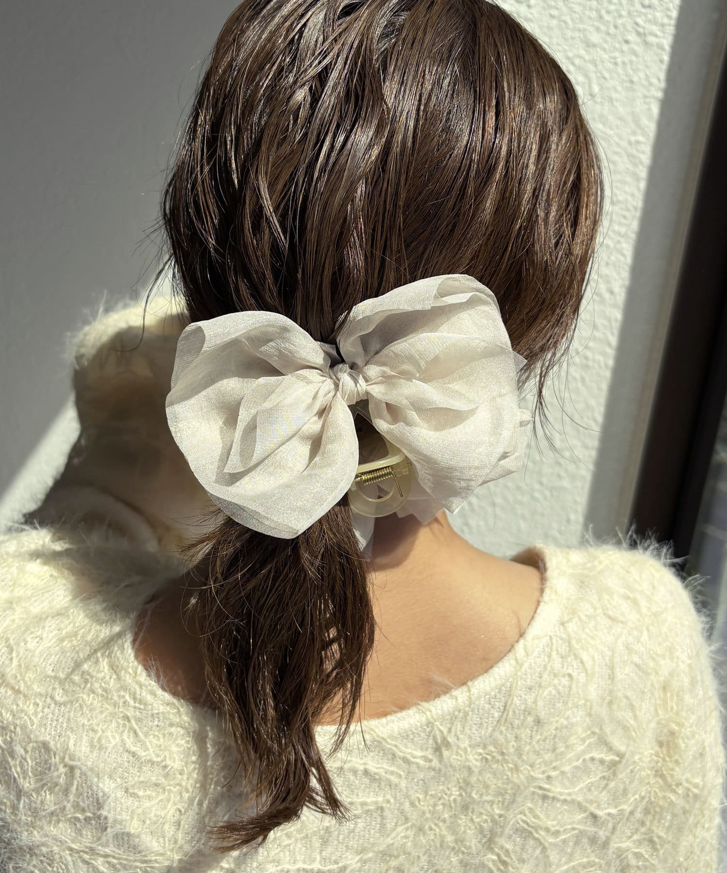・存在感のある大きなリボンが、シンプルなヘアスタイルを一気に華やかに