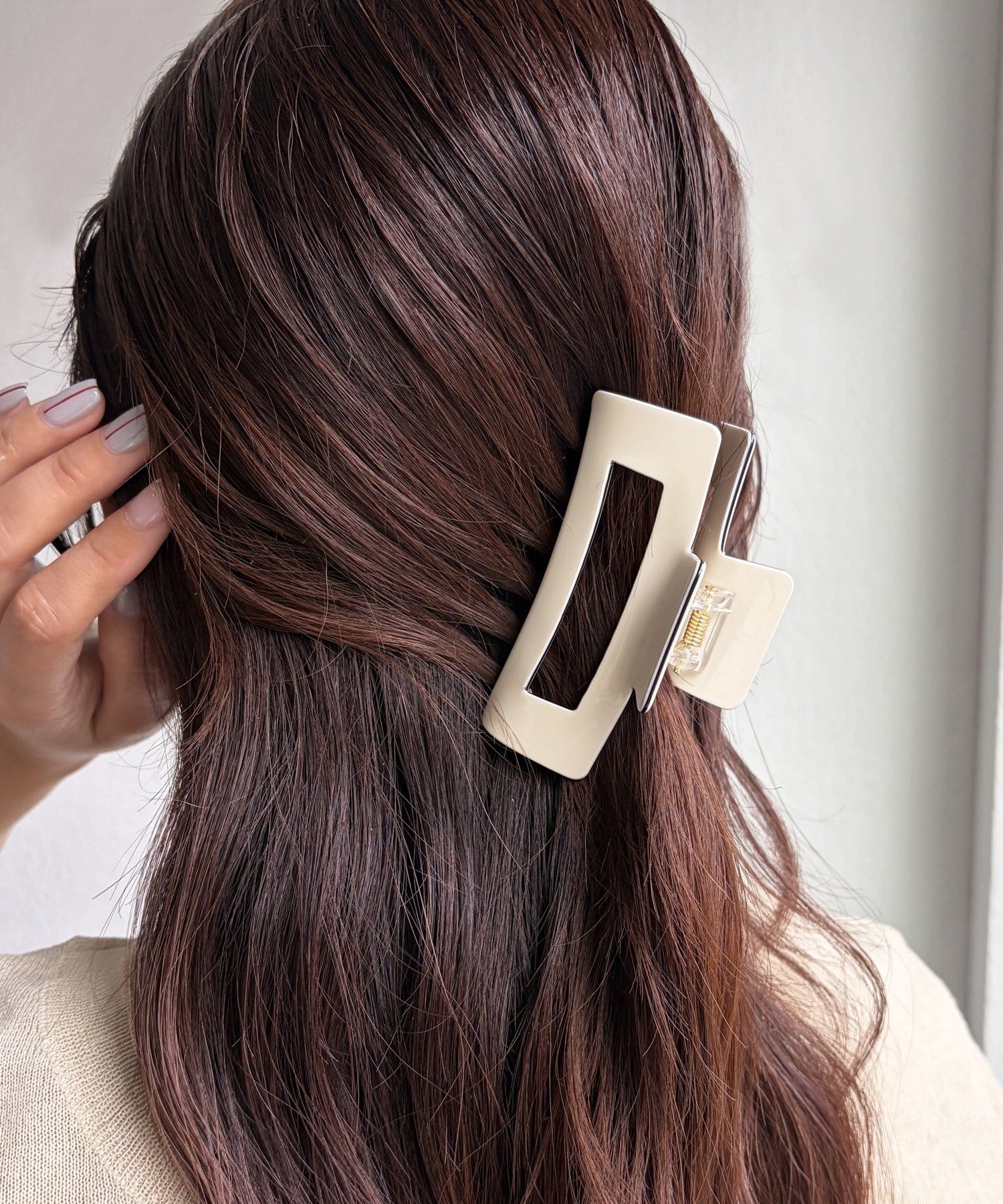 挟むだけでヘアアレンジが完成するバイカラースクエアクリップ