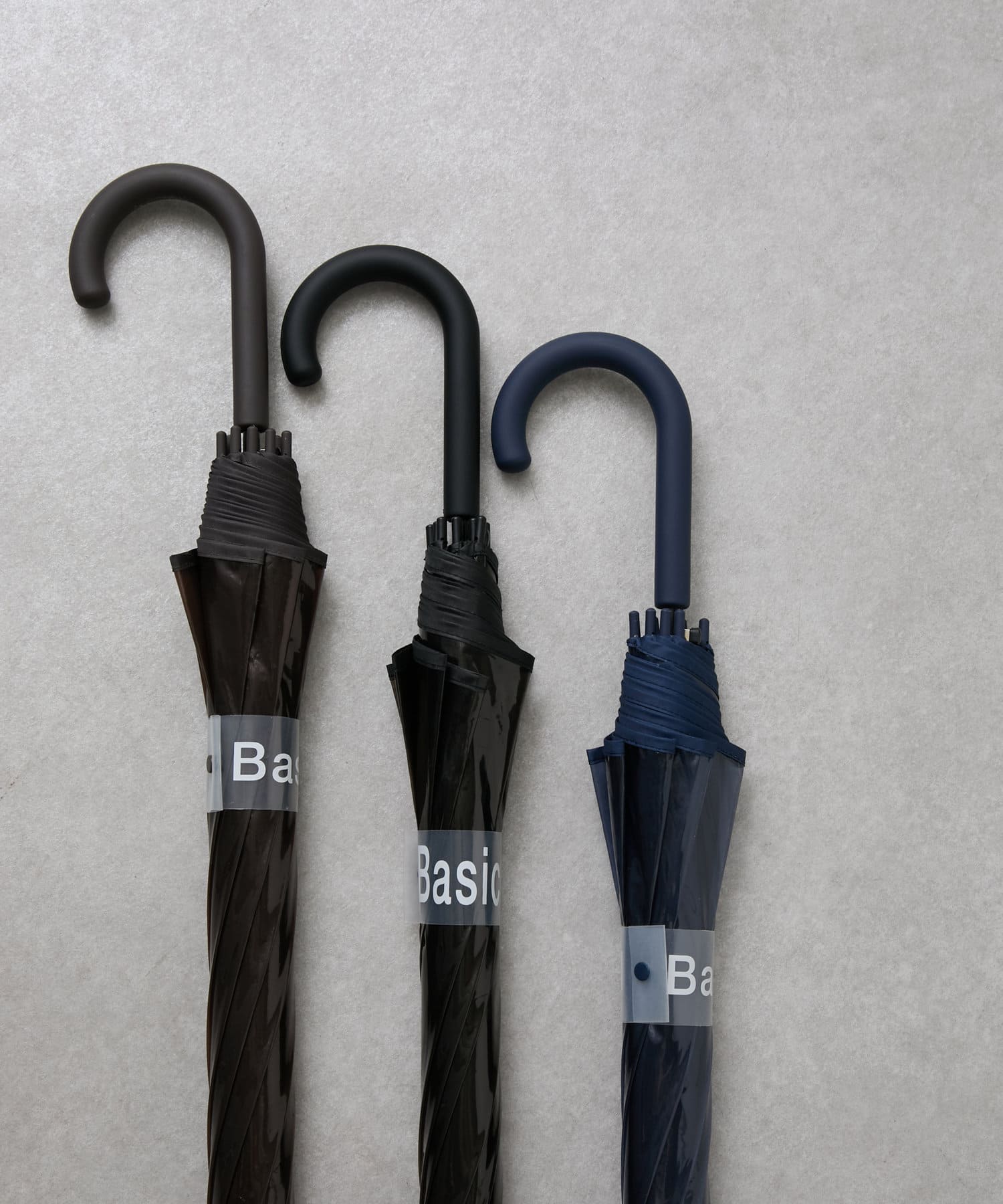 コーディネートを邪魔しない落ち着いたカラーと、大きくあしらったネーム(傘を留めるバンド部分)が
