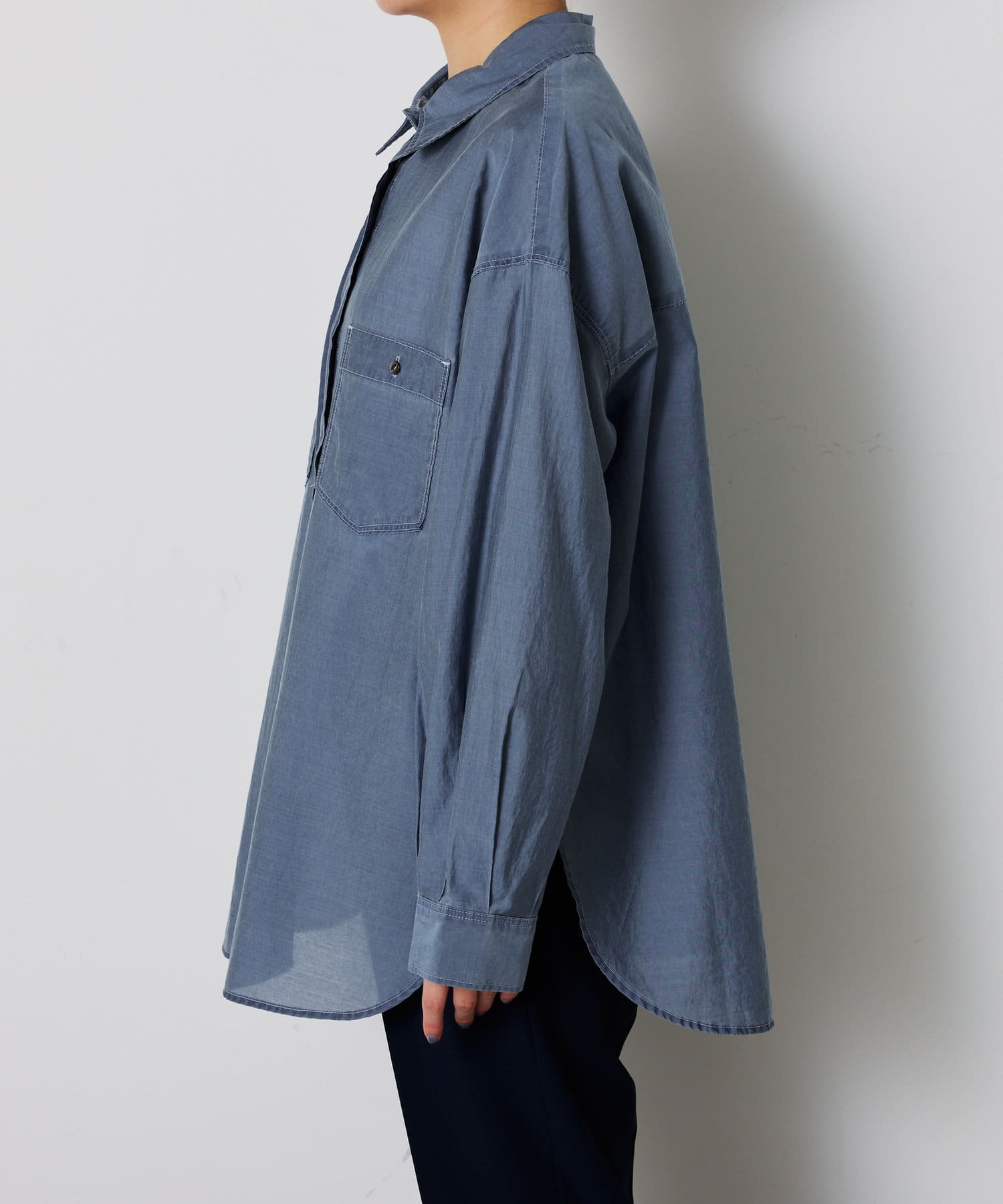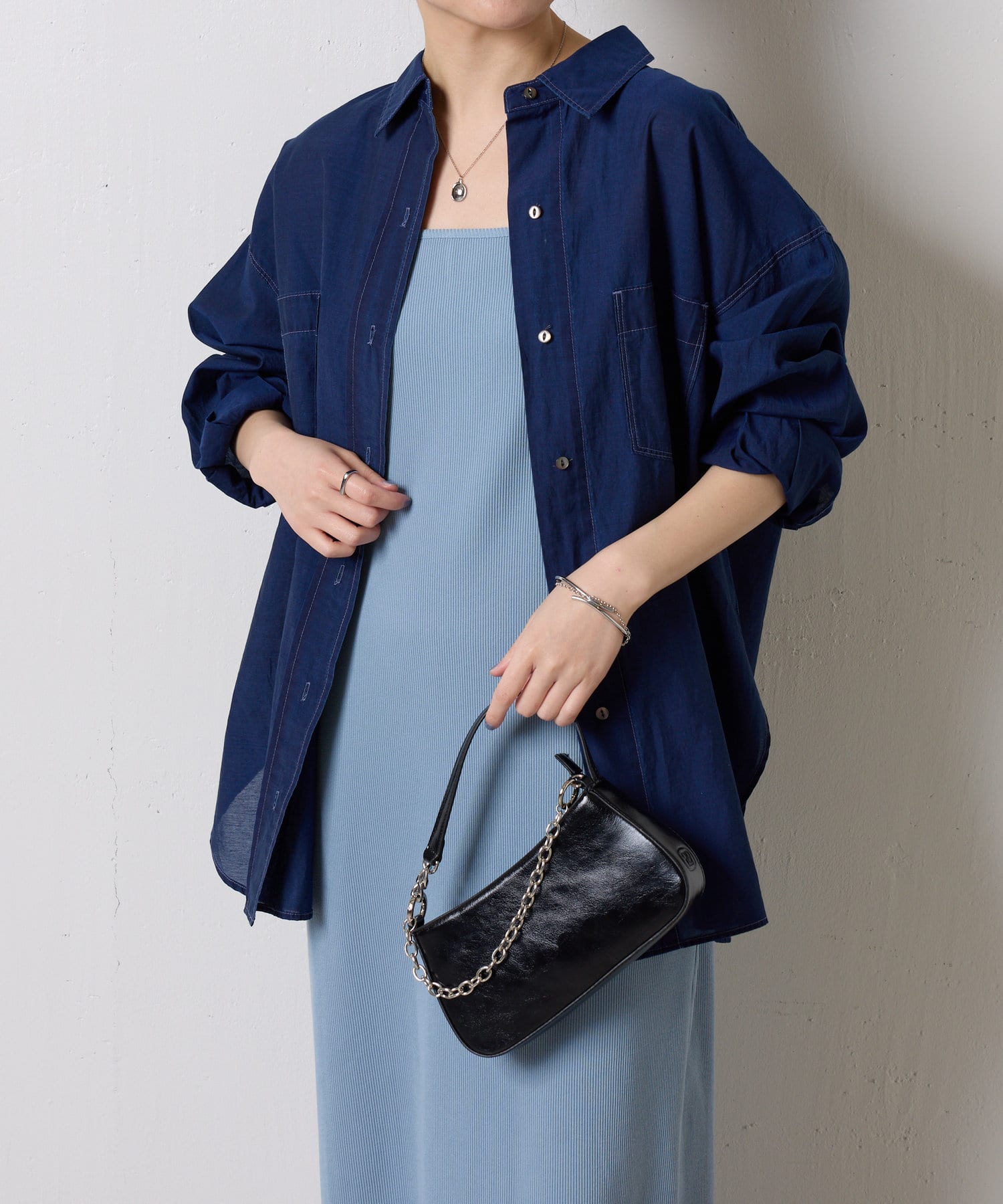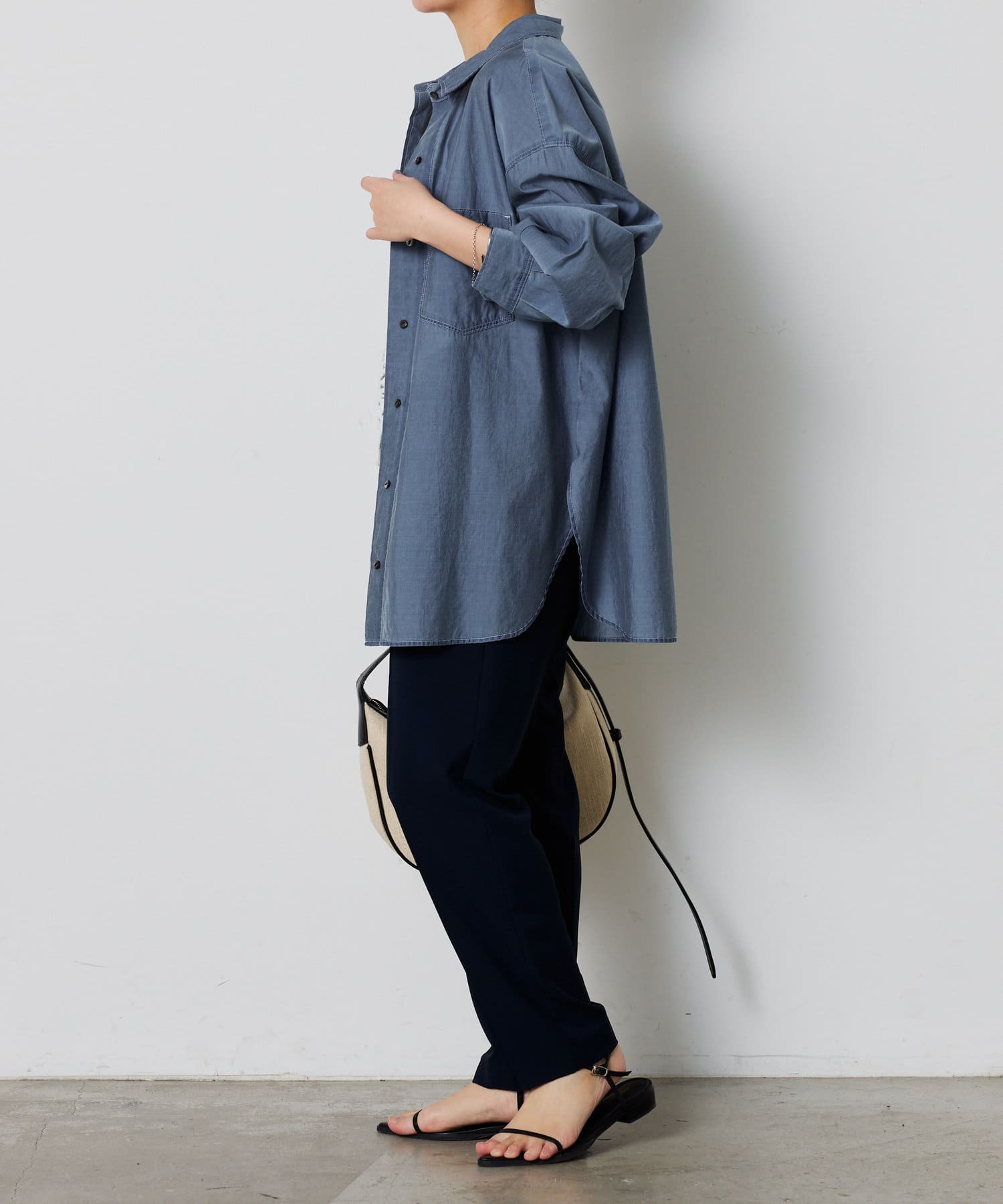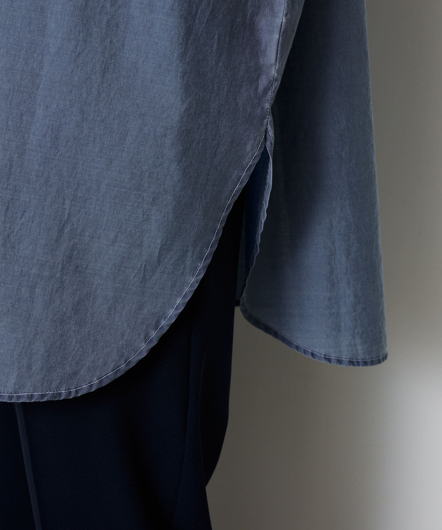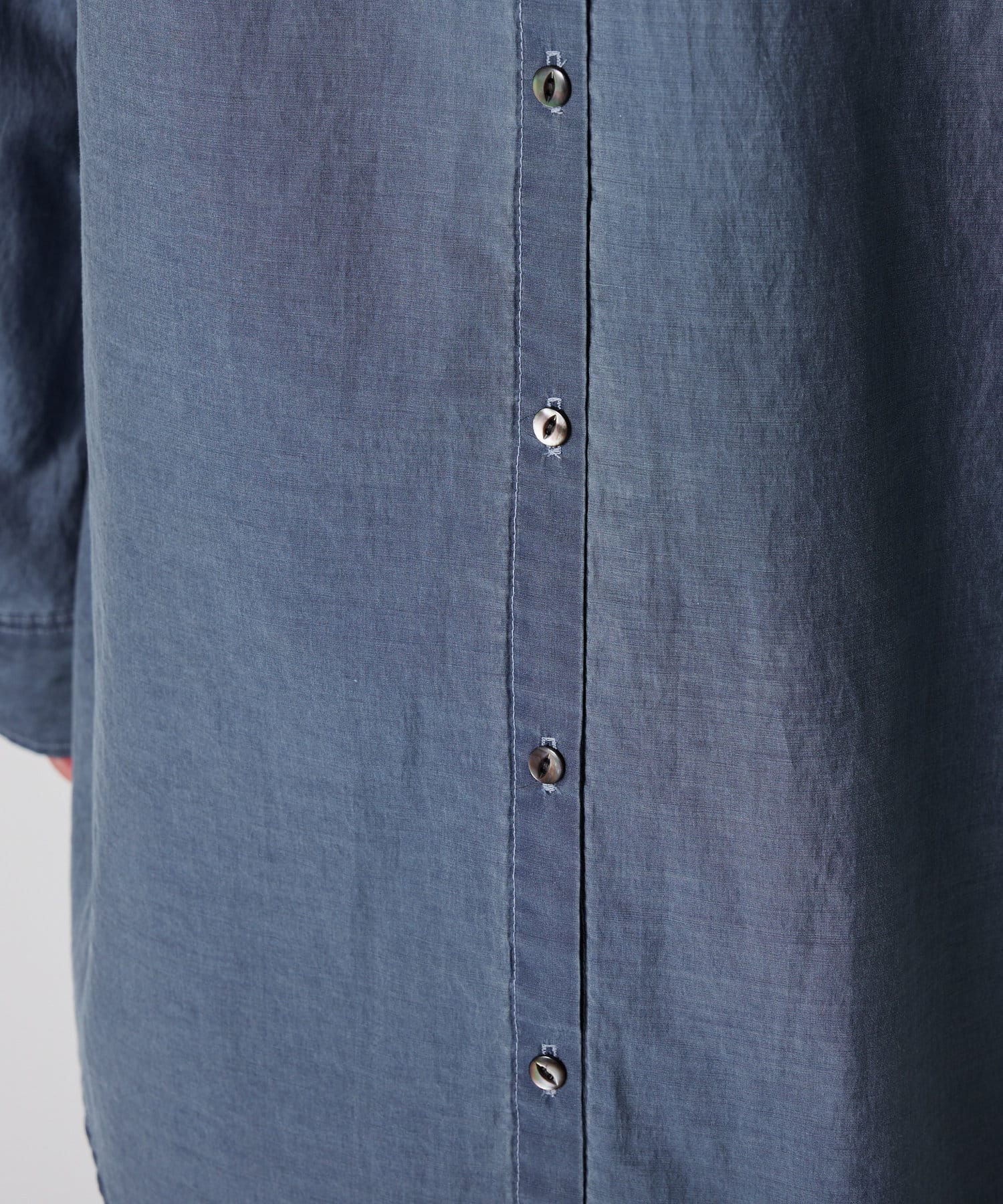 ・(インディゴ、サックスブルー)シアー感のあるローン系シアー素材で夏でも着れるデニムシャツ。