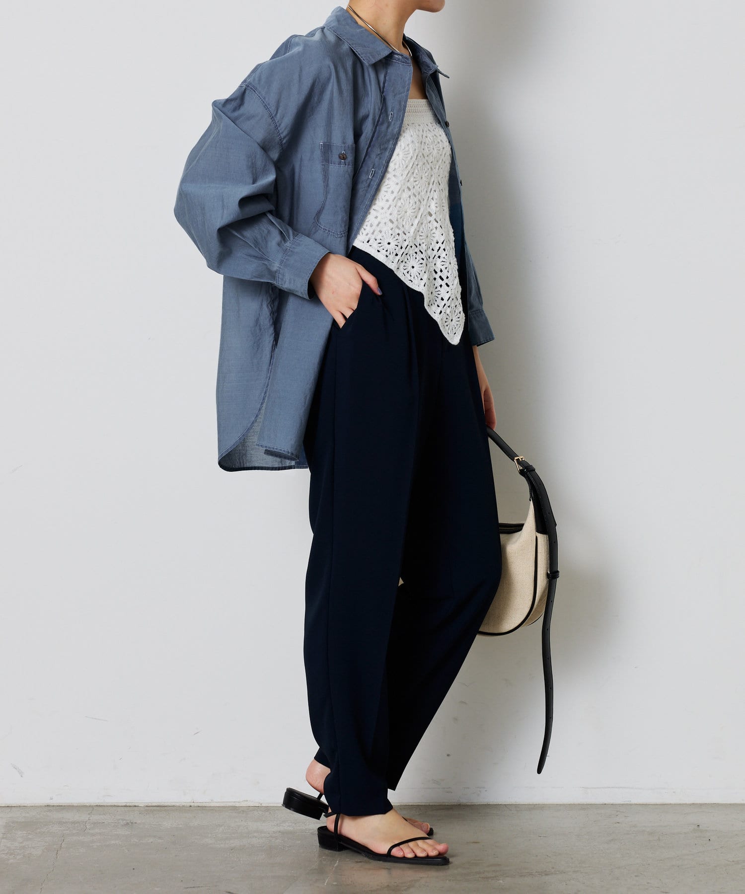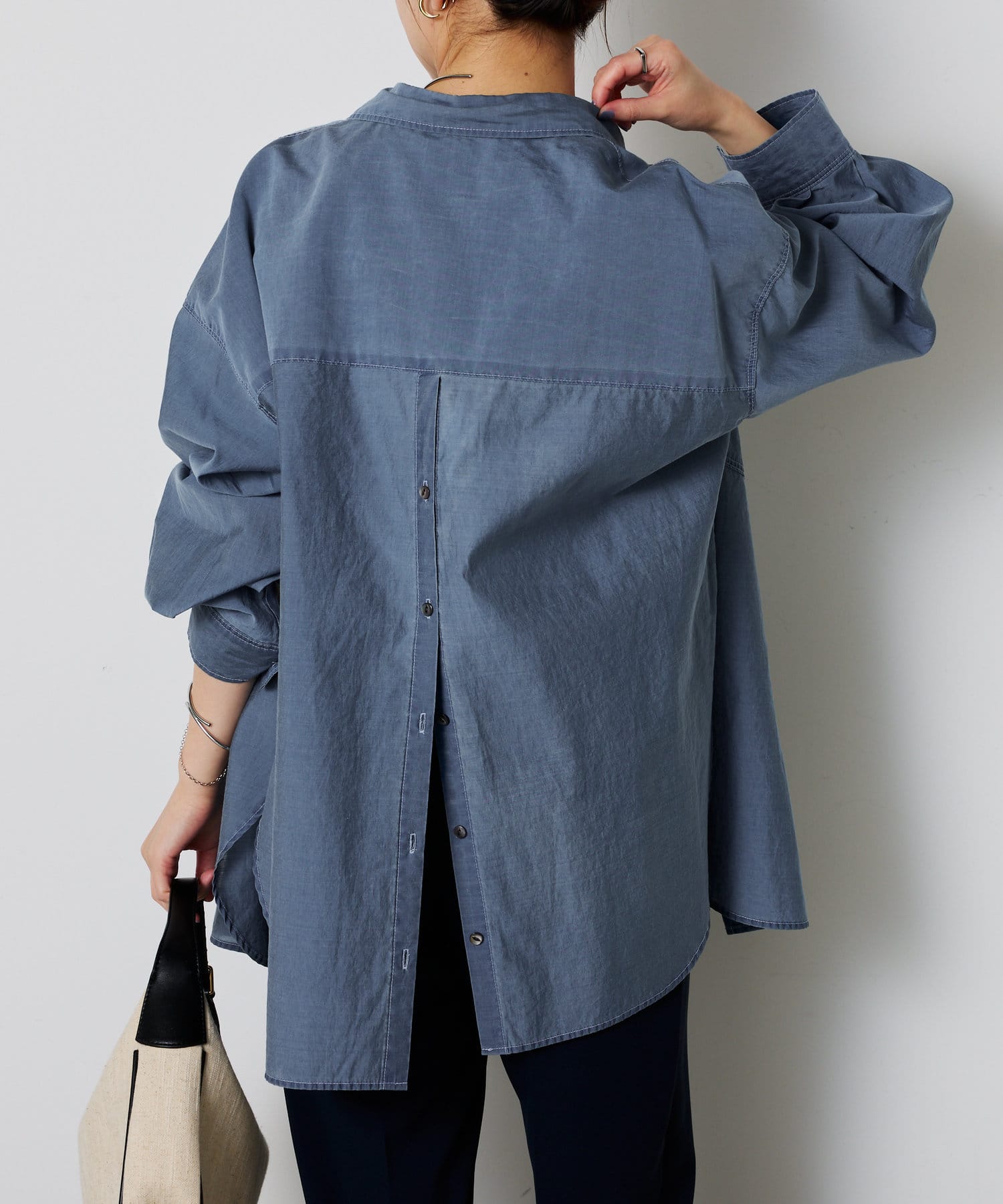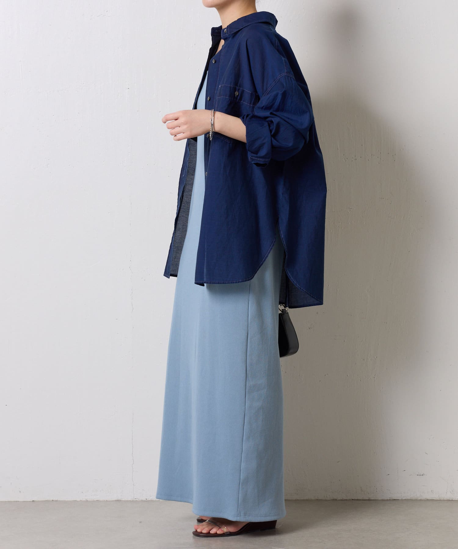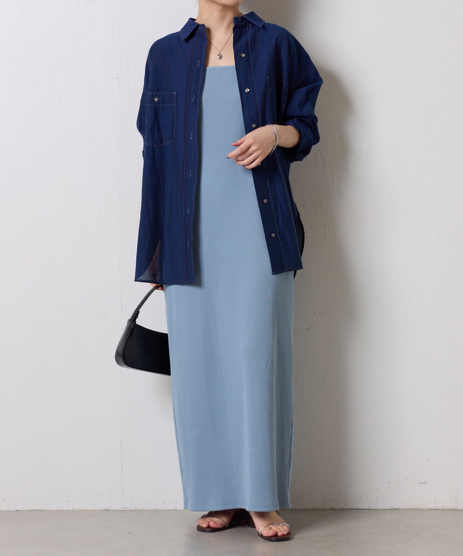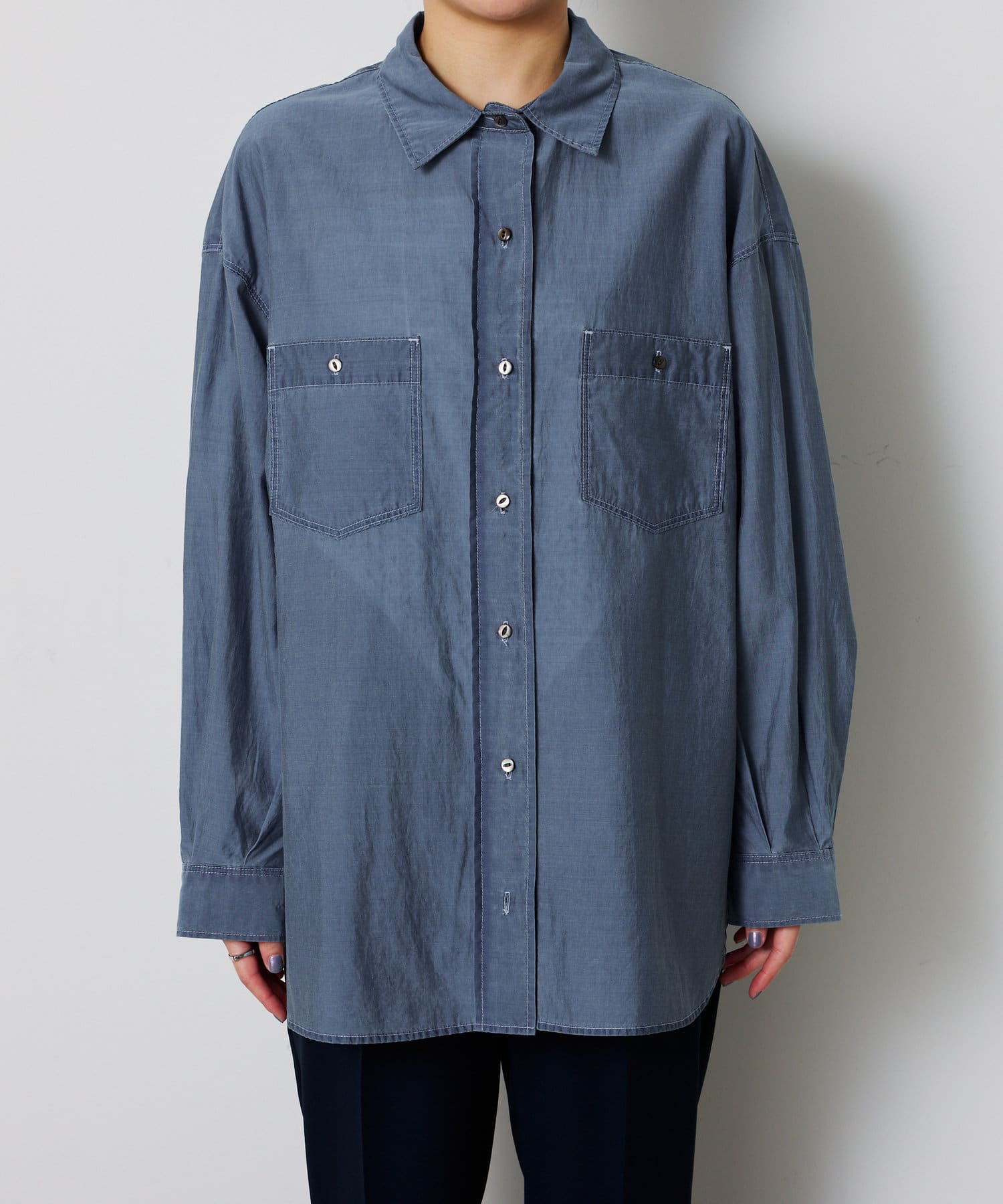 ・(インディゴ、サックスブルー)シアー感のあるローン系シアー素材で夏でも着れるデニムシャツ。