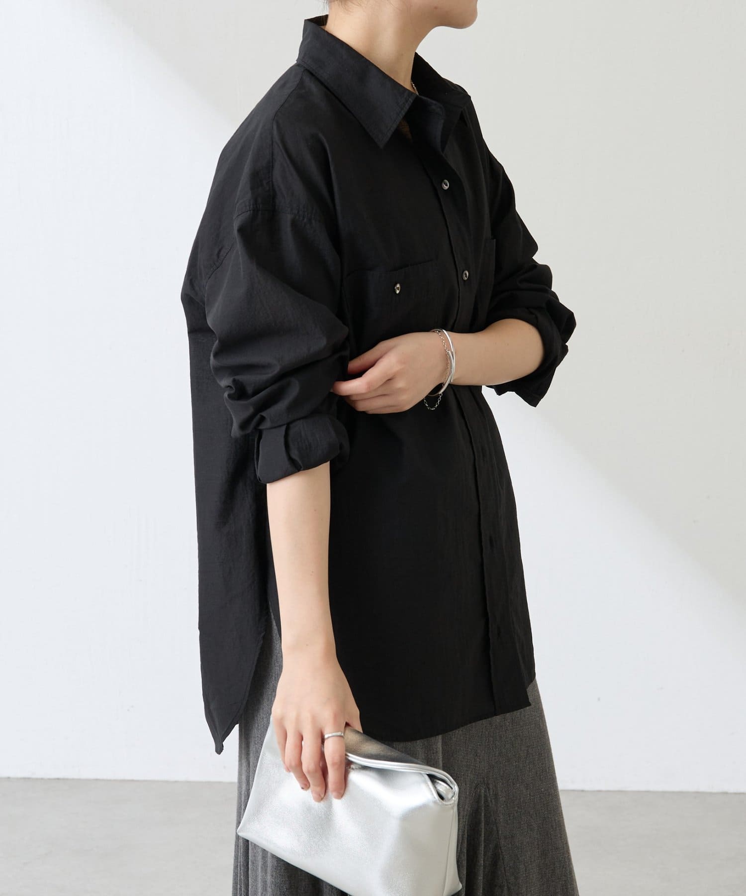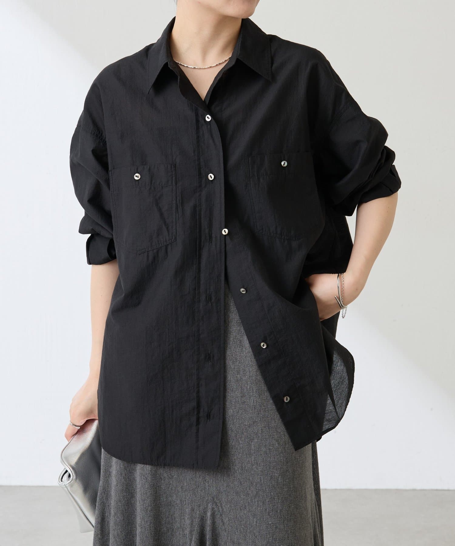 (ブラック)シアー感があり、きれいめにも着れるブラックシャツ。