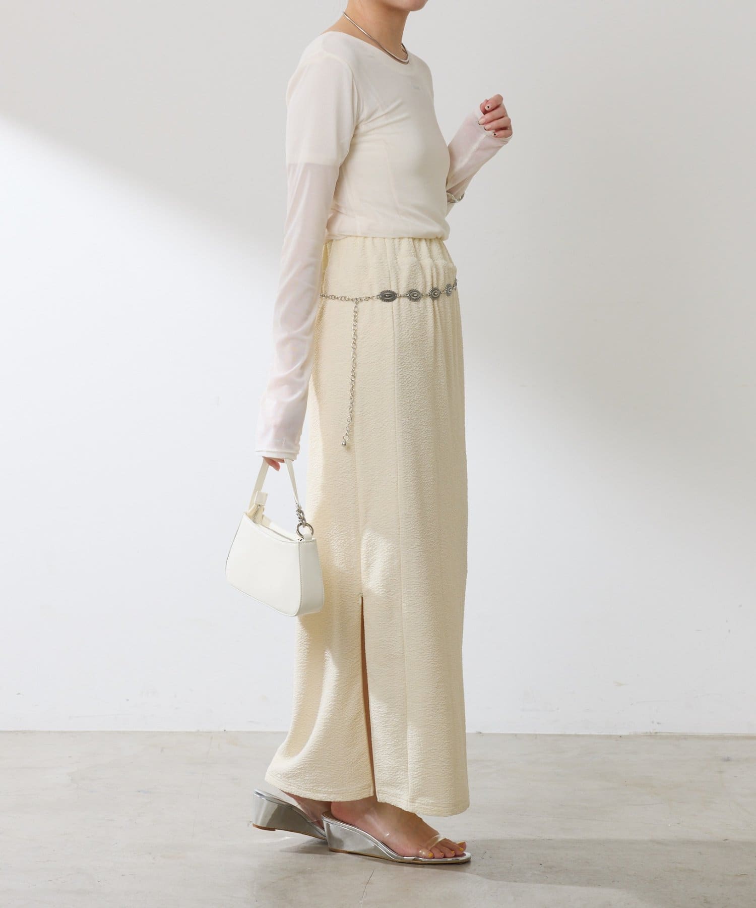 トップス次第で季節問わず長く着て頂けるのも魅力のひとつ。