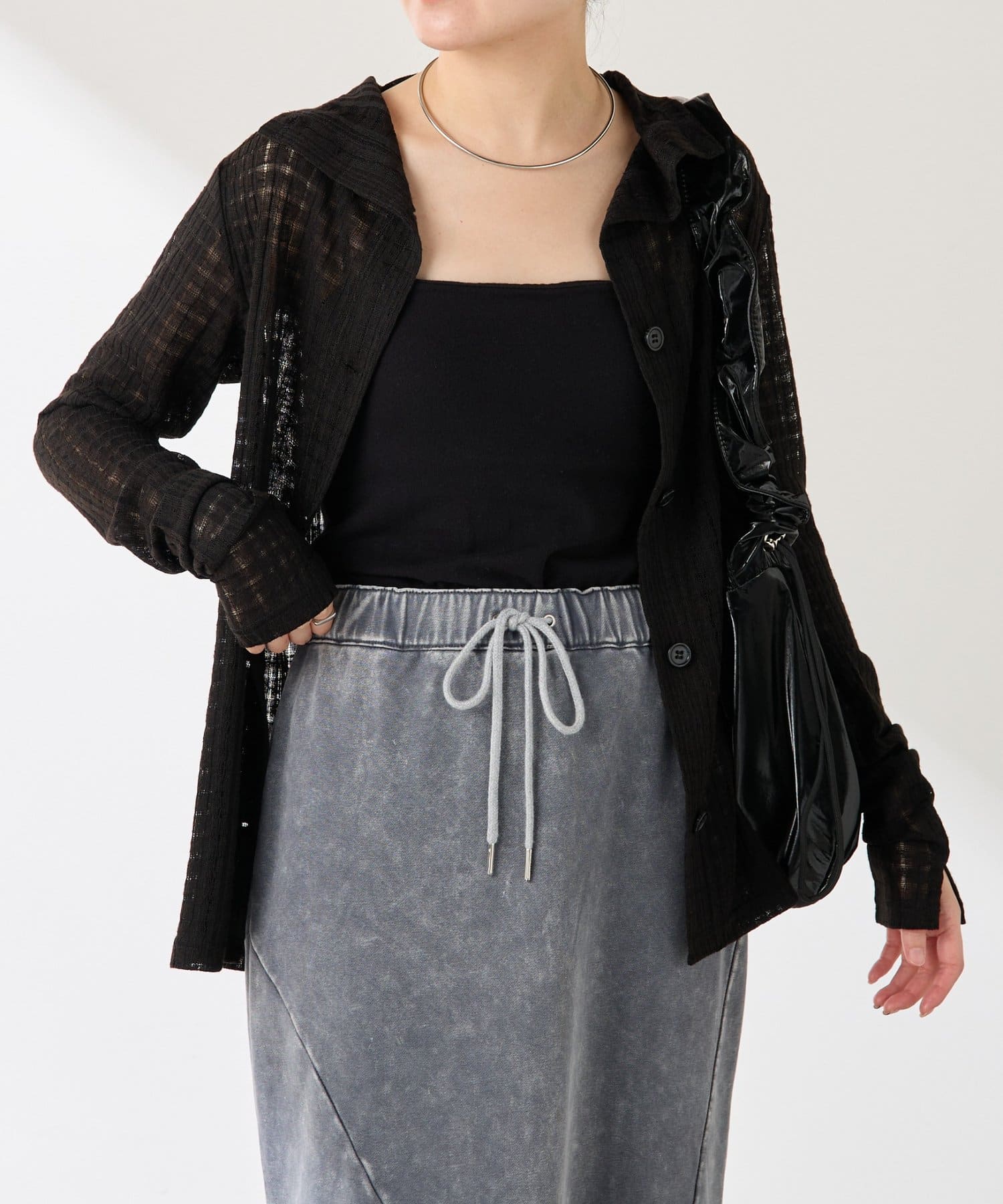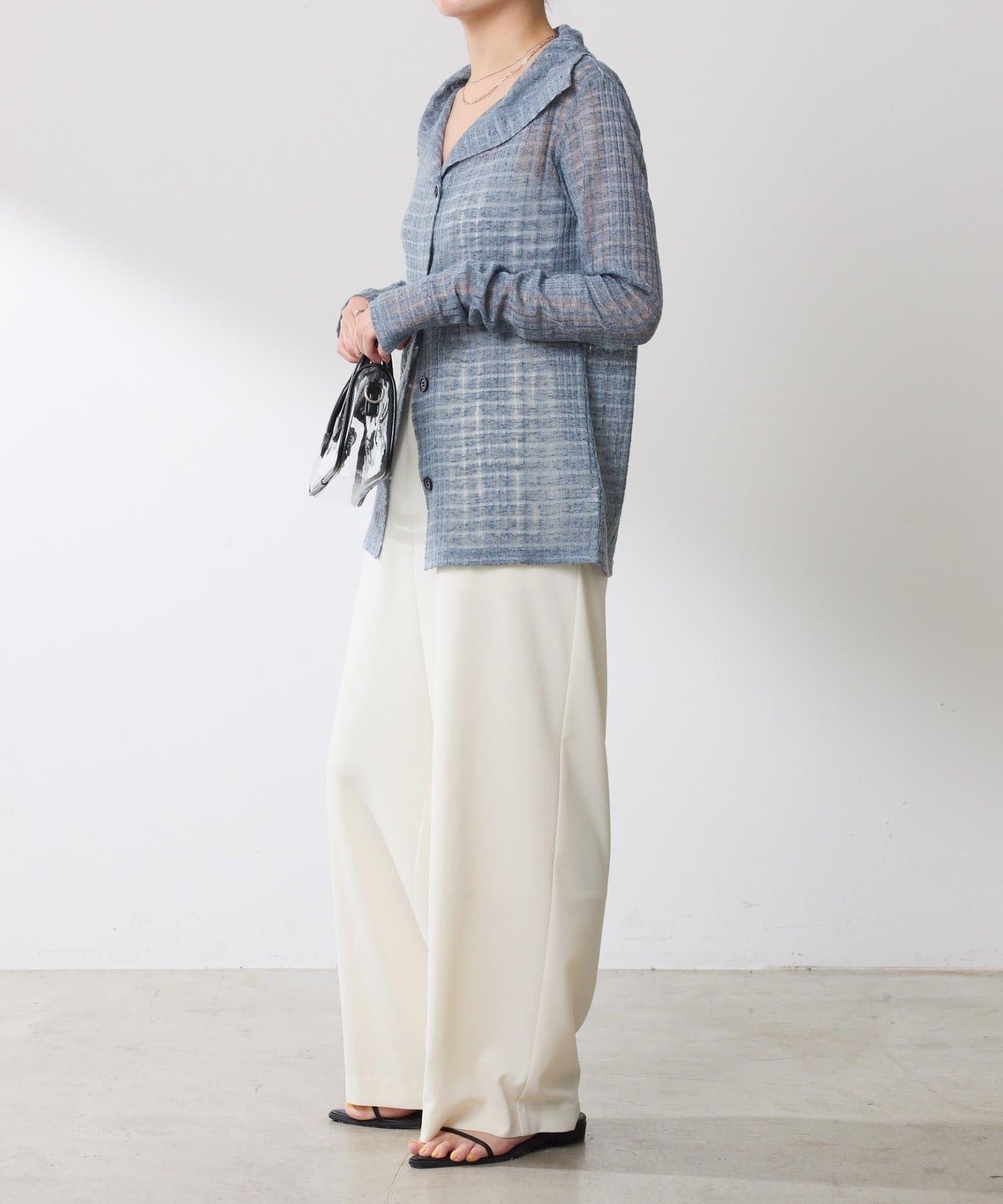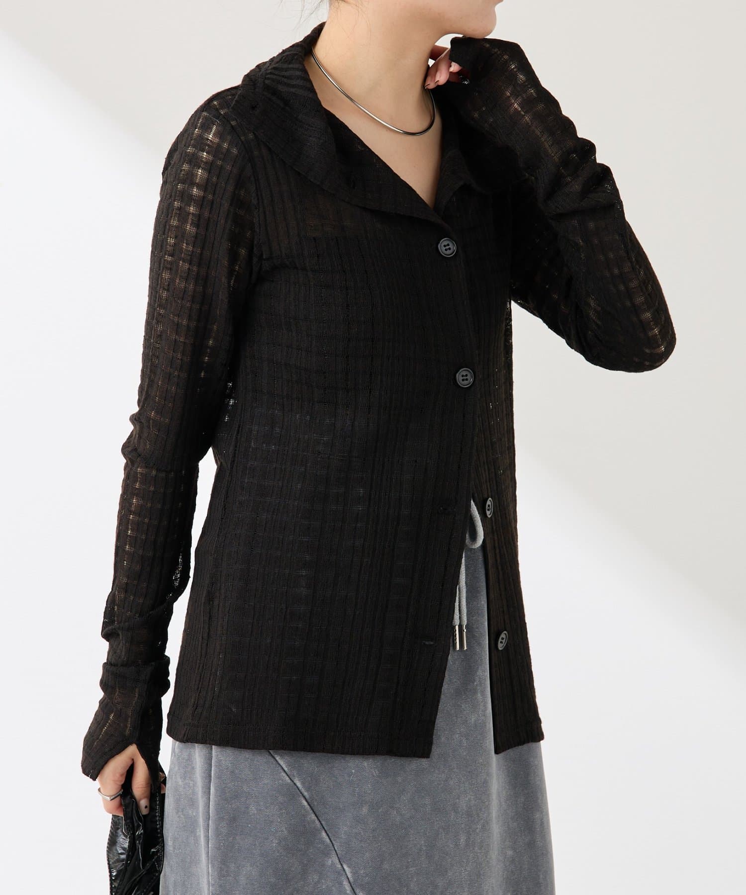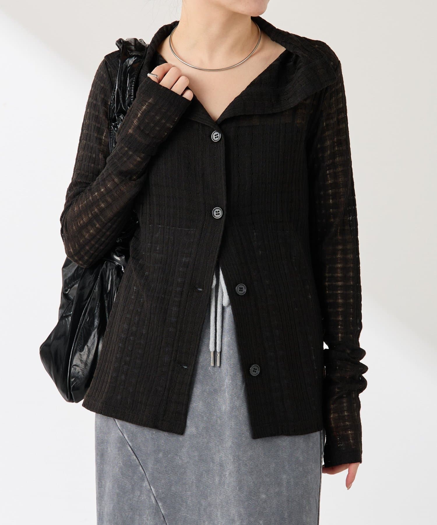 ・トレンドのチェックですが、シアー素材にすることで取り入れやすくしました◎