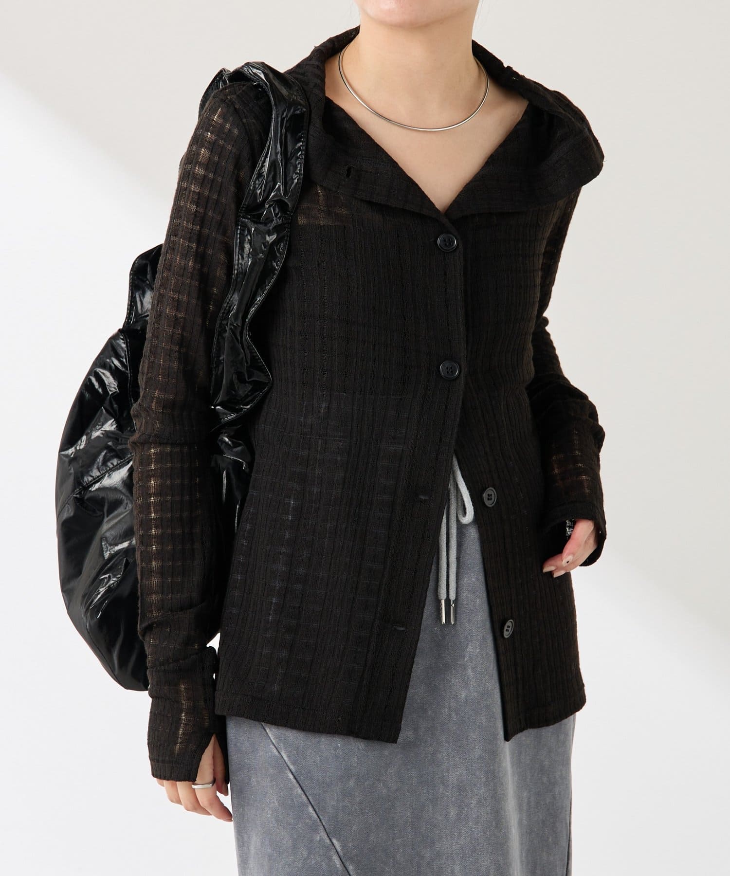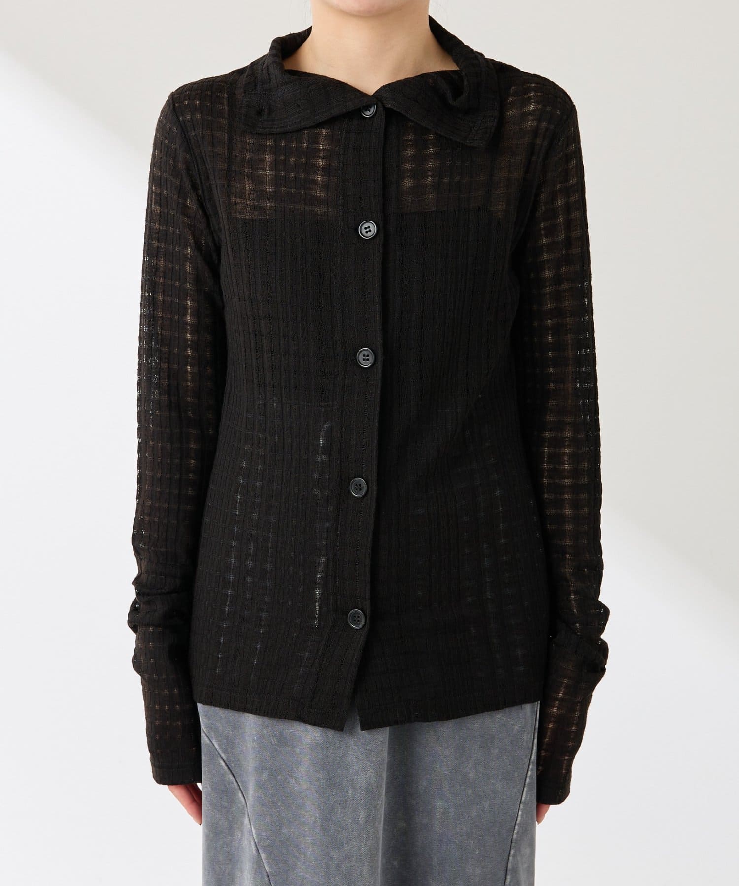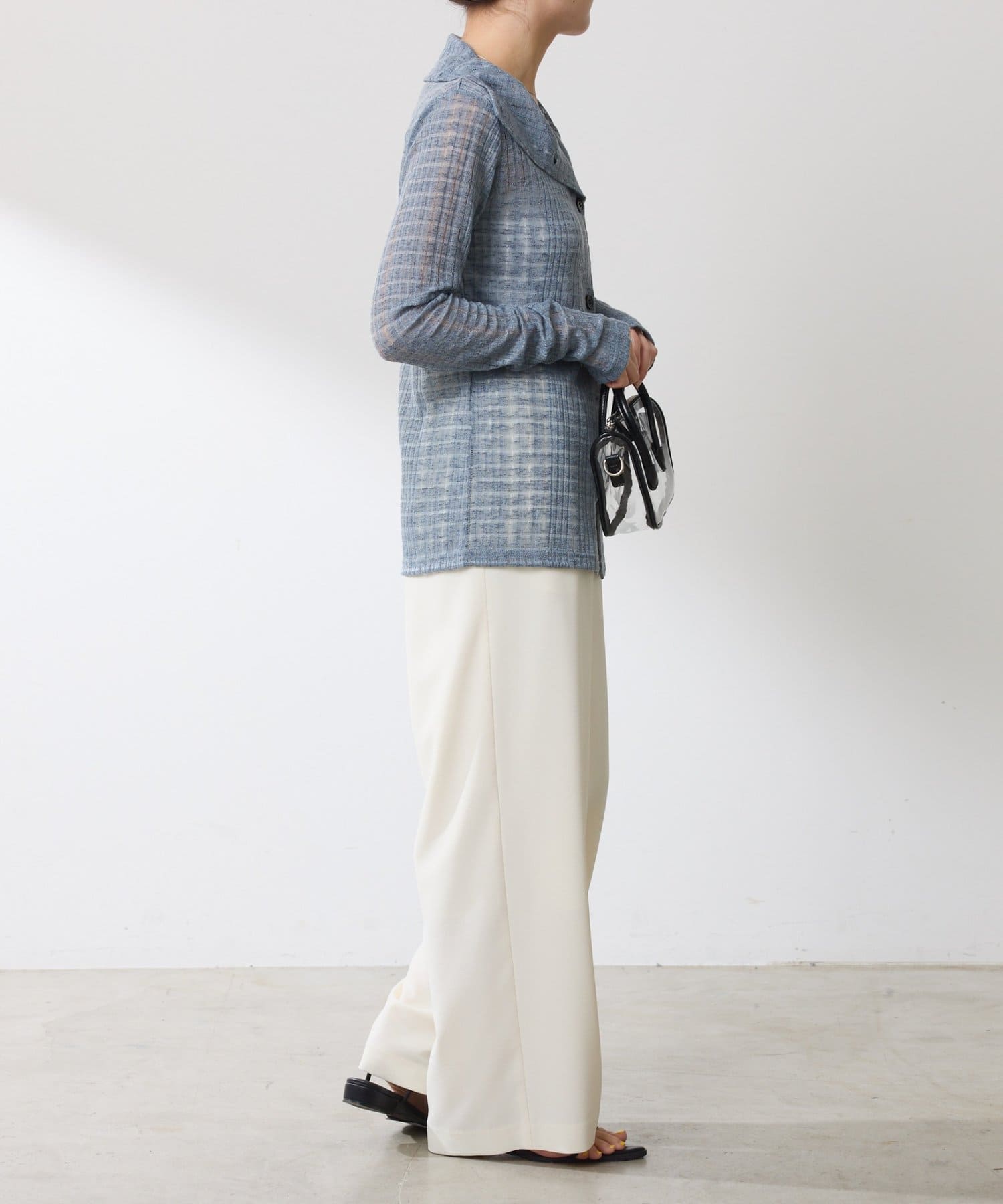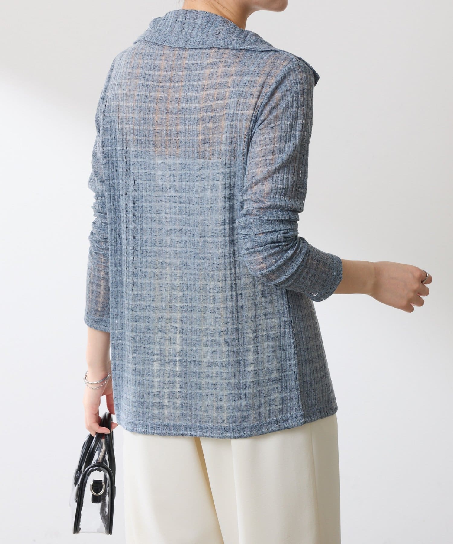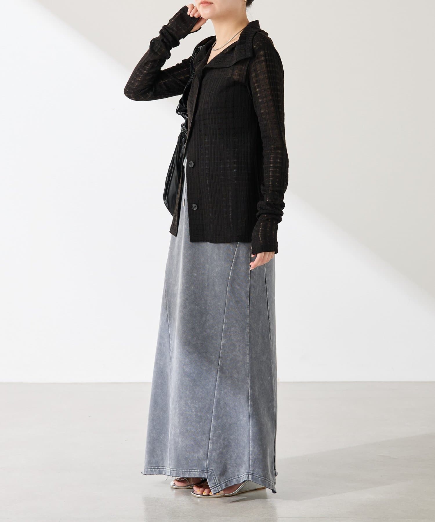 ・トレンドのチェックですが、シアー素材にすることで取り入れやすくしました◎
