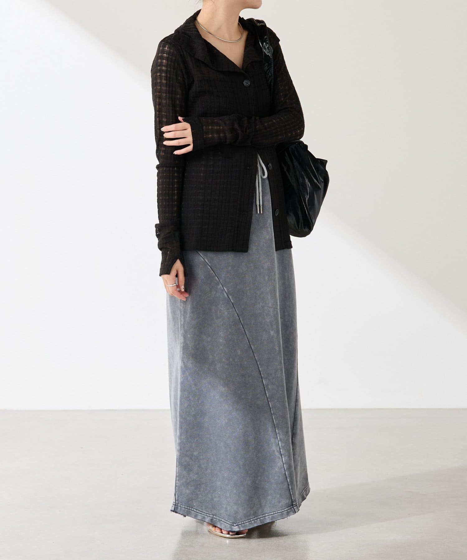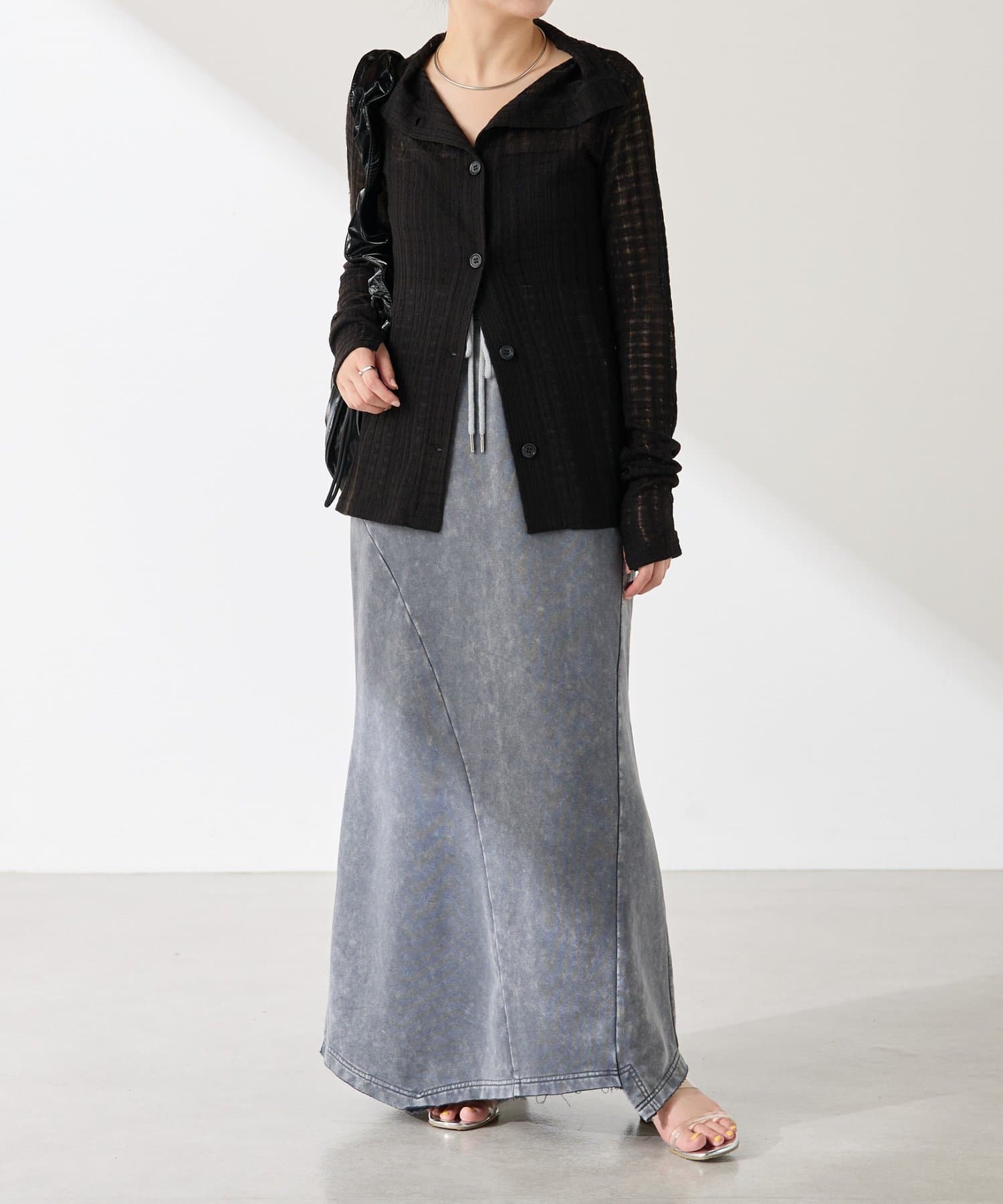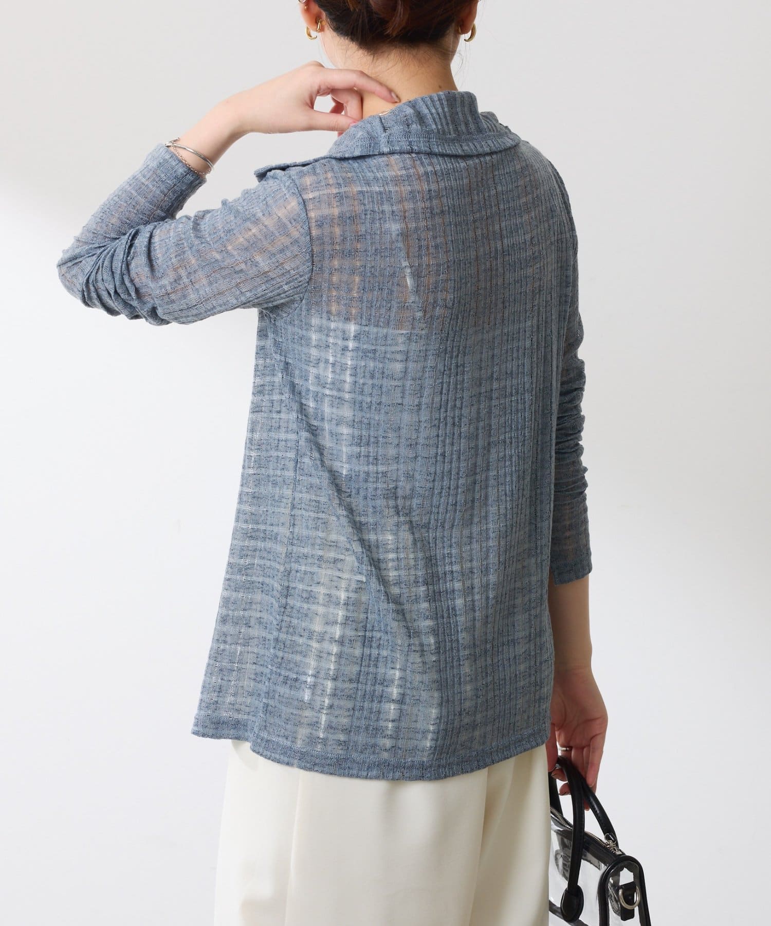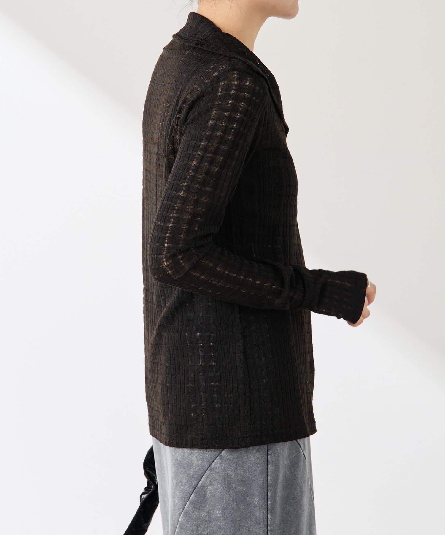 ・トレンドのチェックですが、シアー素材にすることで取り入れやすくしました◎