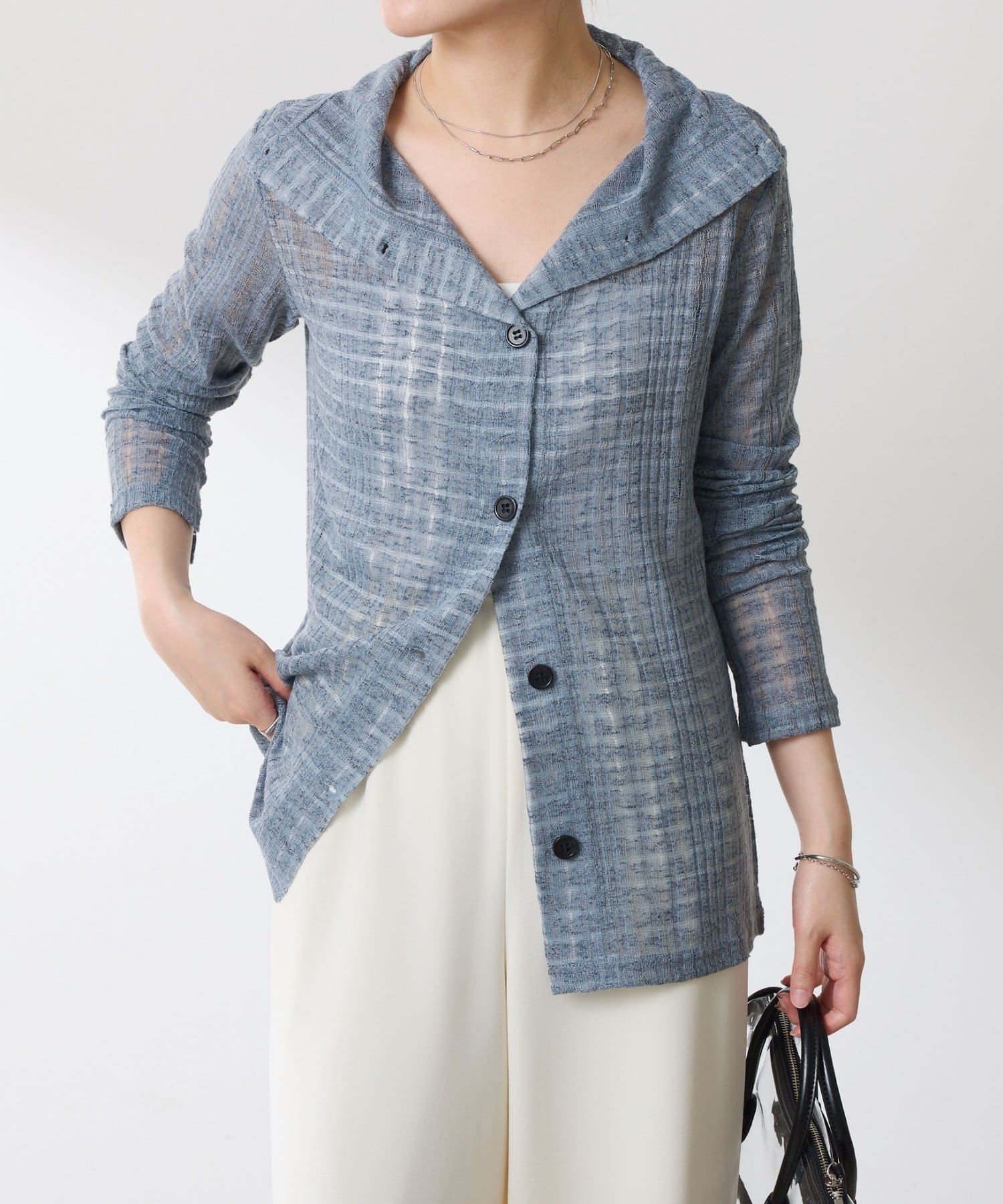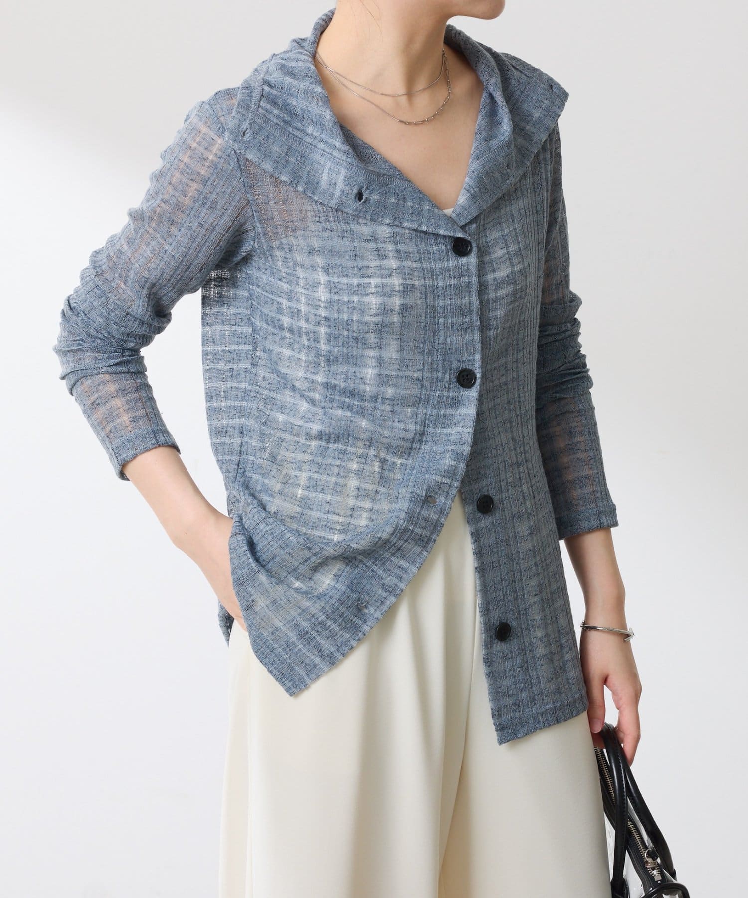 ・シアーですが、チェック柄は表情があり1枚でも様になります。