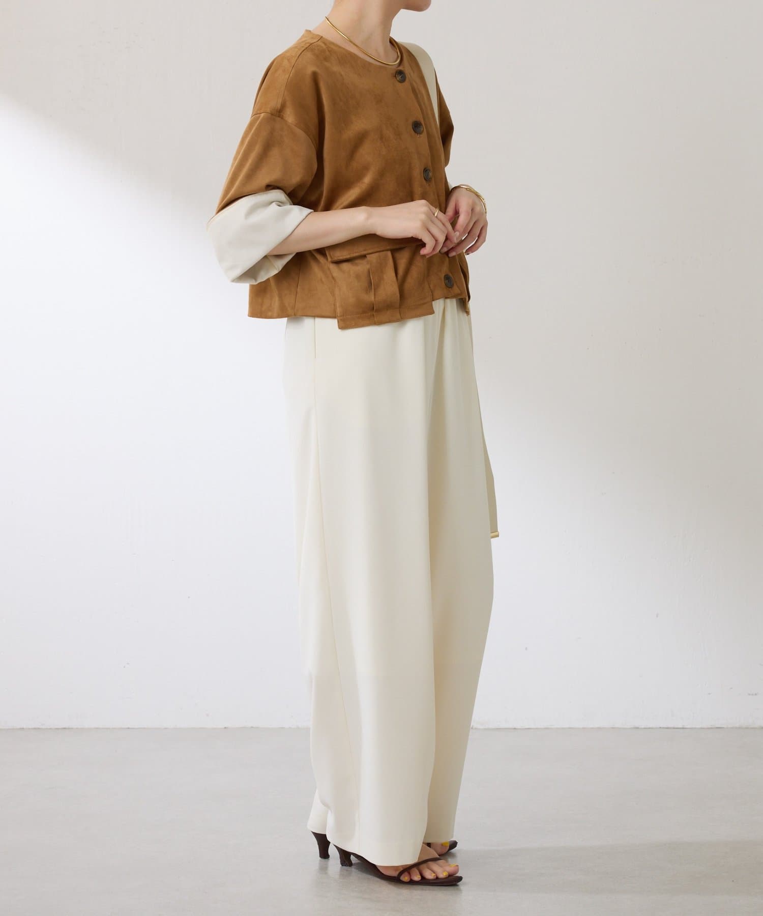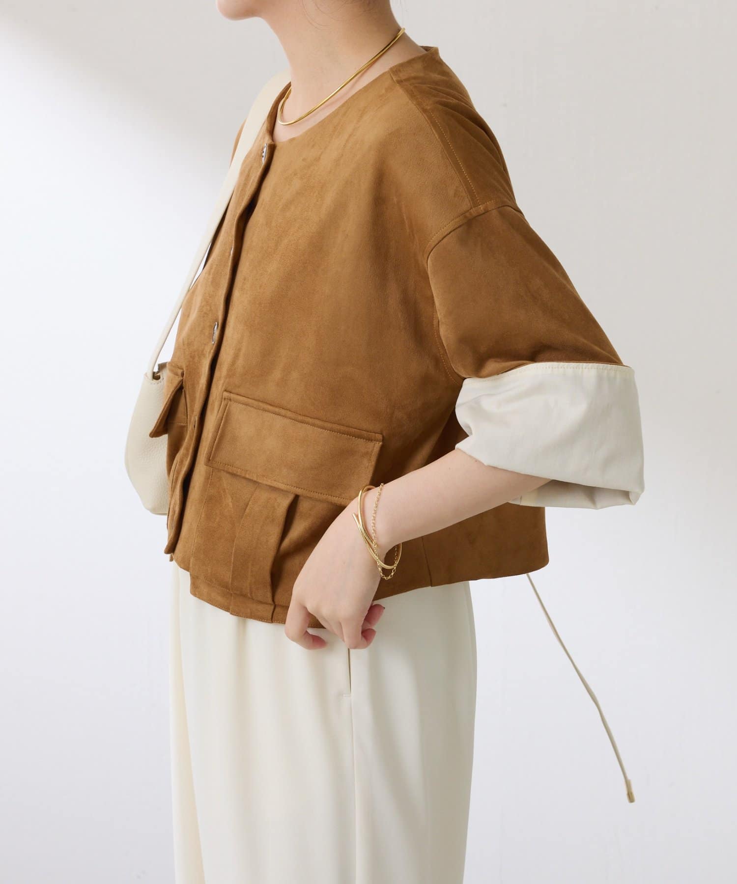 ・ノーカラーなので、ハイネックと合わせれば秋冬でもスタイリングを楽しんでいただけます◎