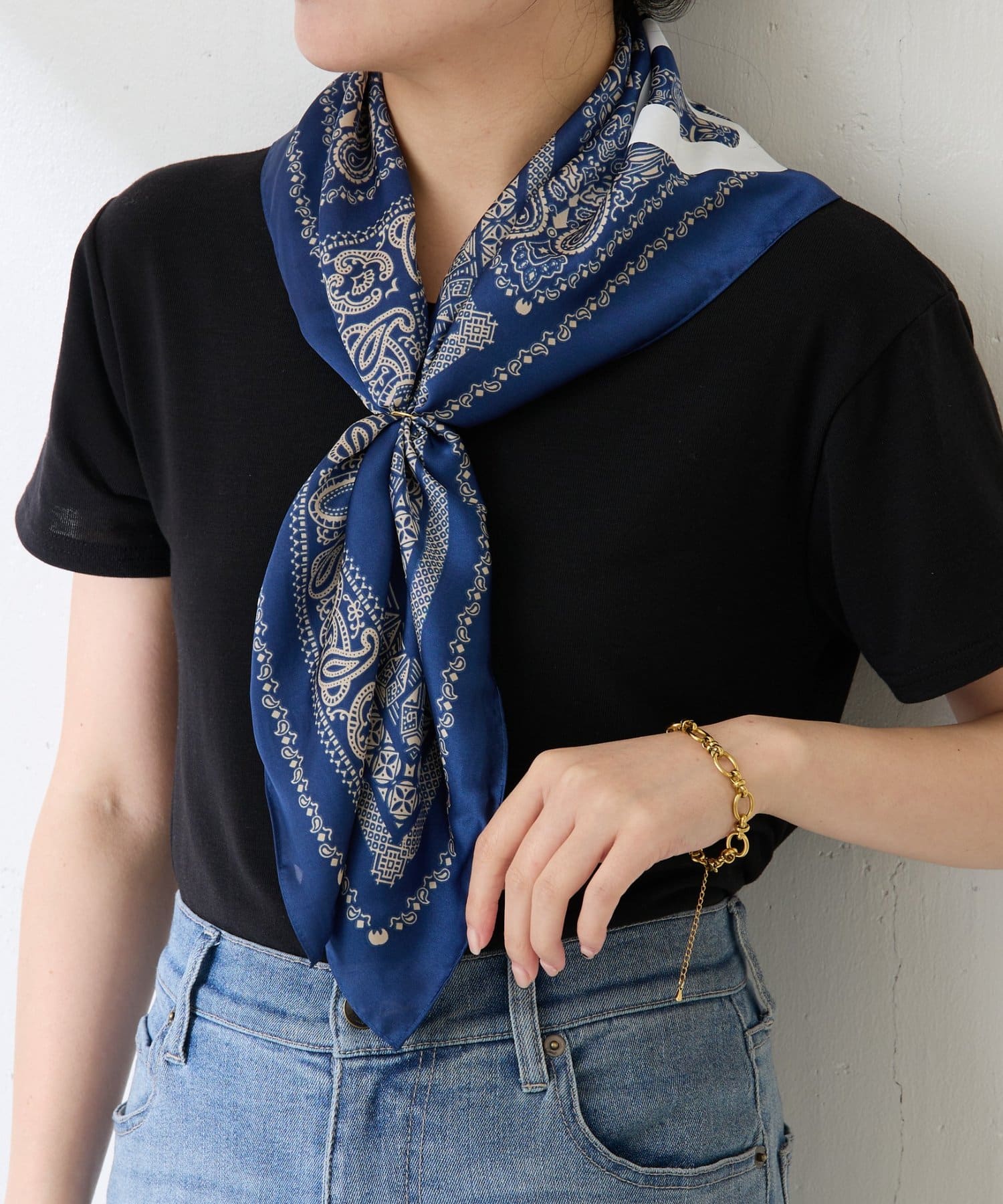 スタイルの幅を広げるペイズリー柄大判スカーフ