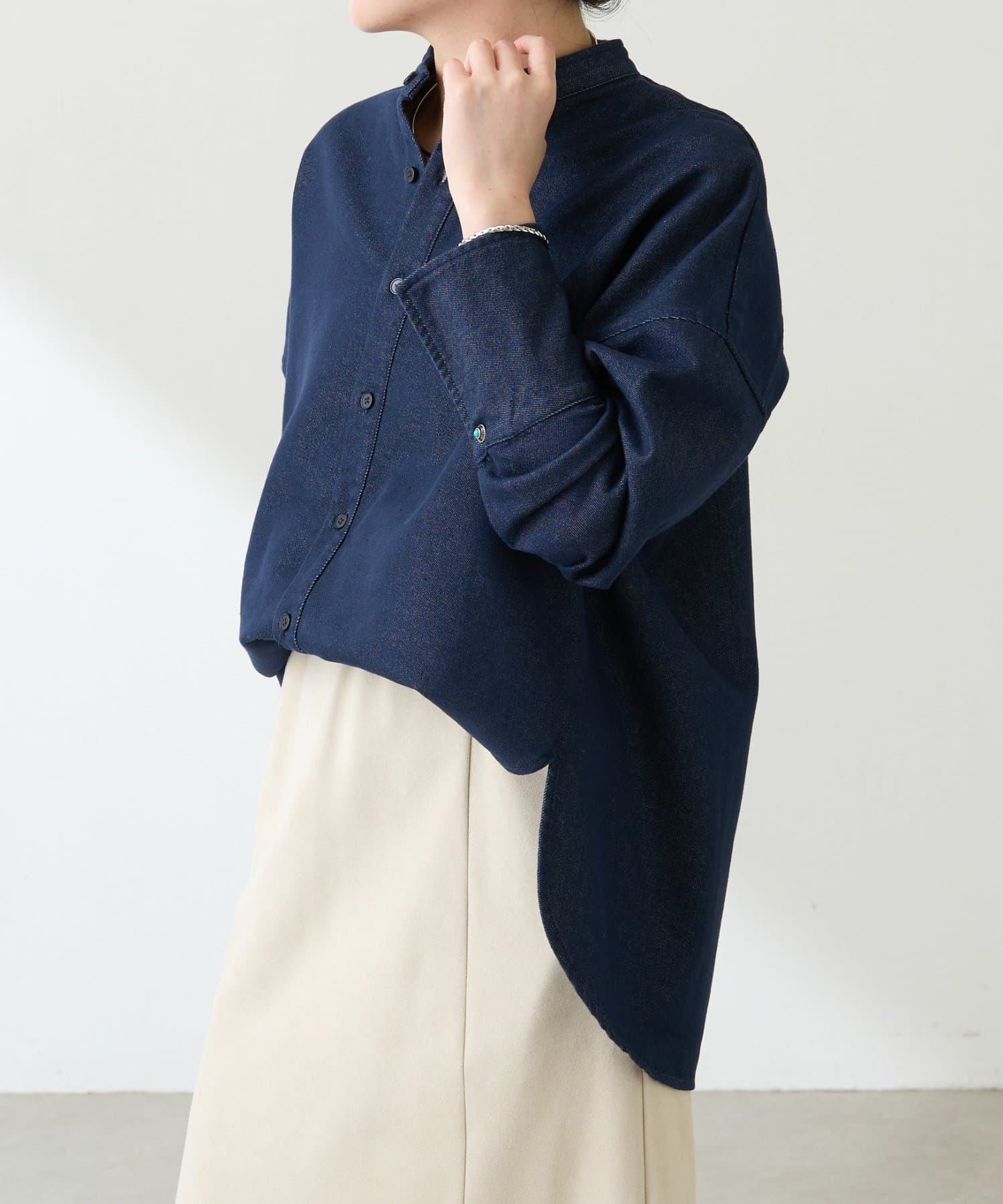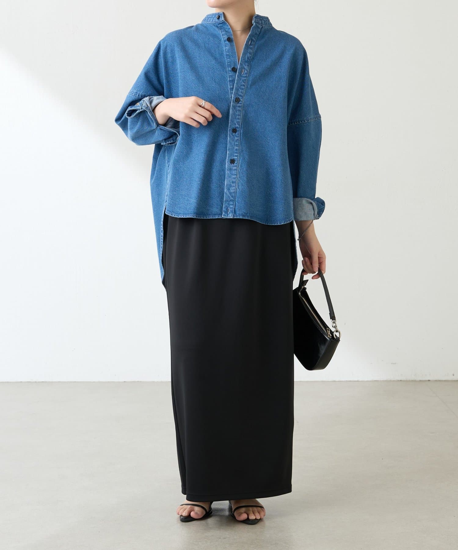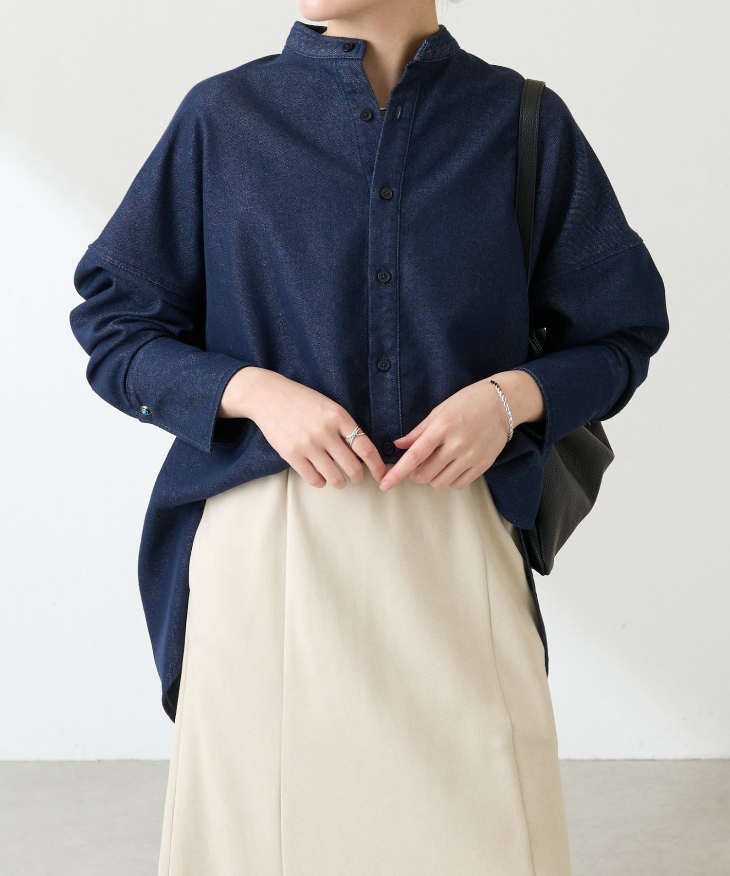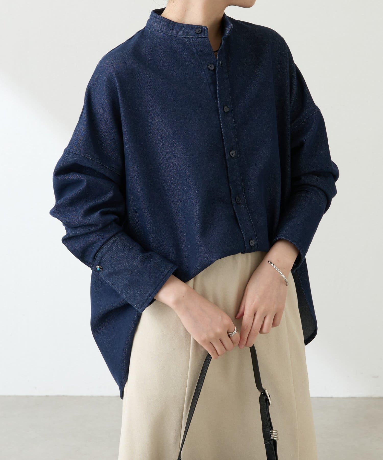 バンドカラーで首回りもすっきりしているのでレイヤーしやすいのも嬉しいポイント◎