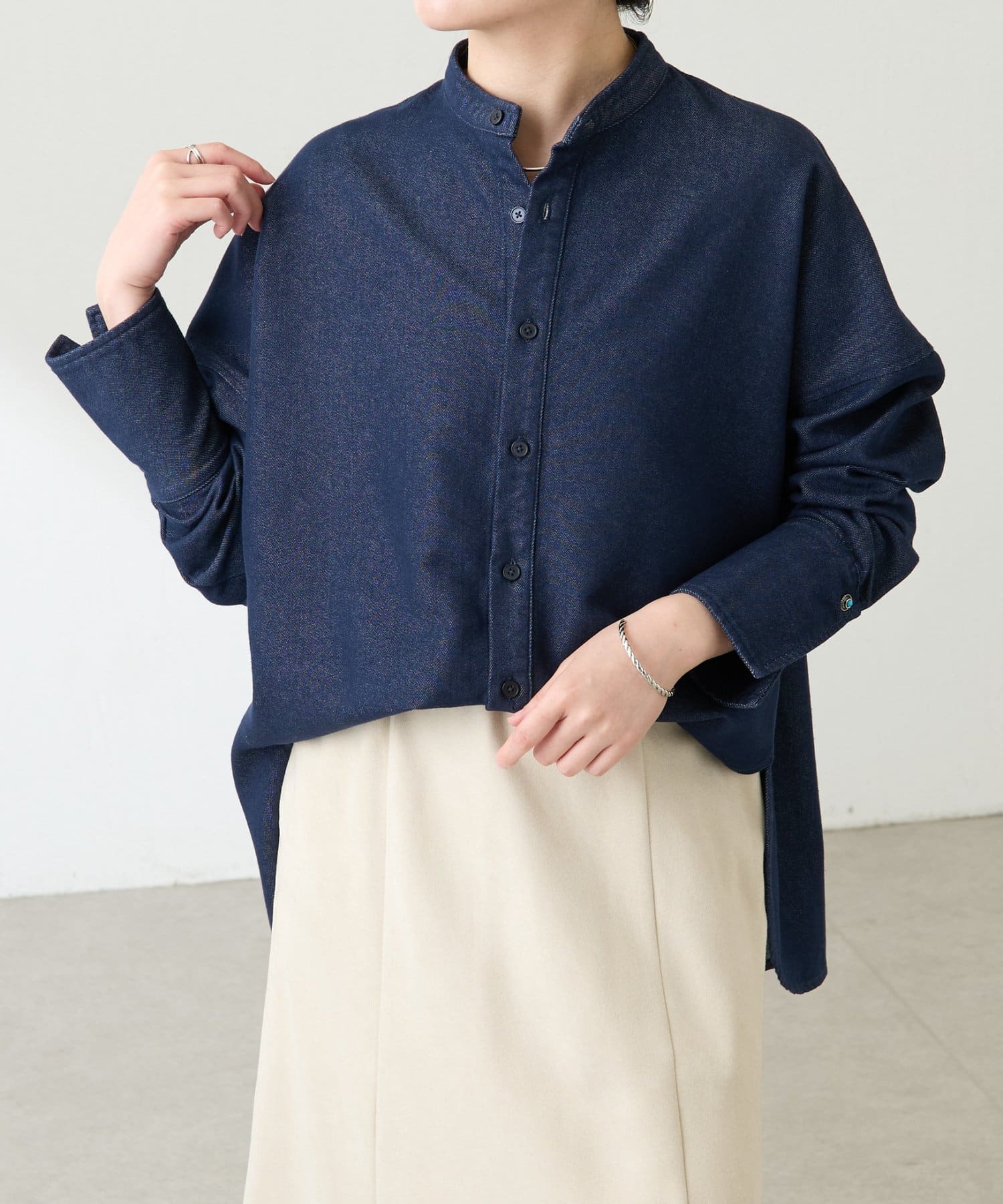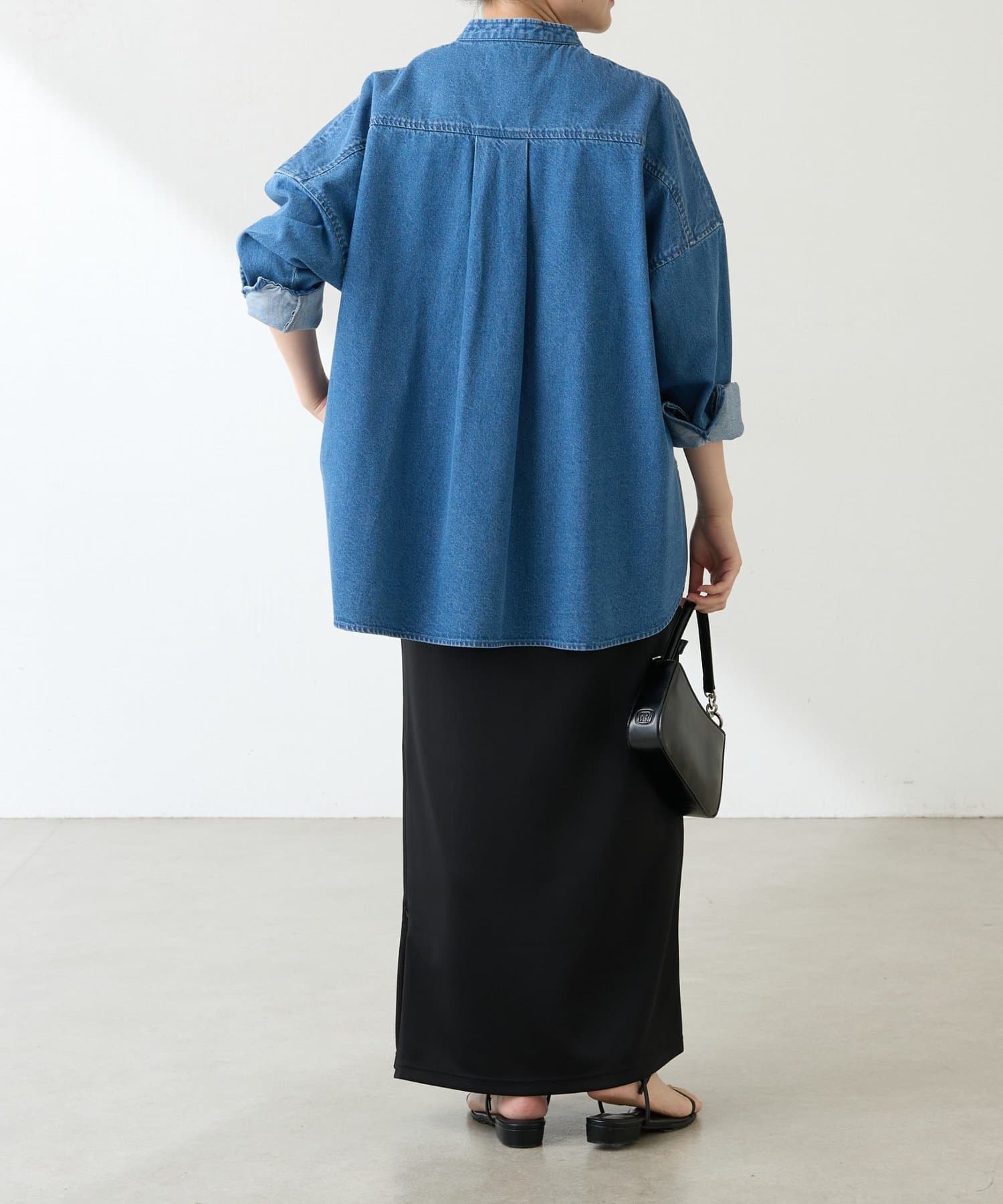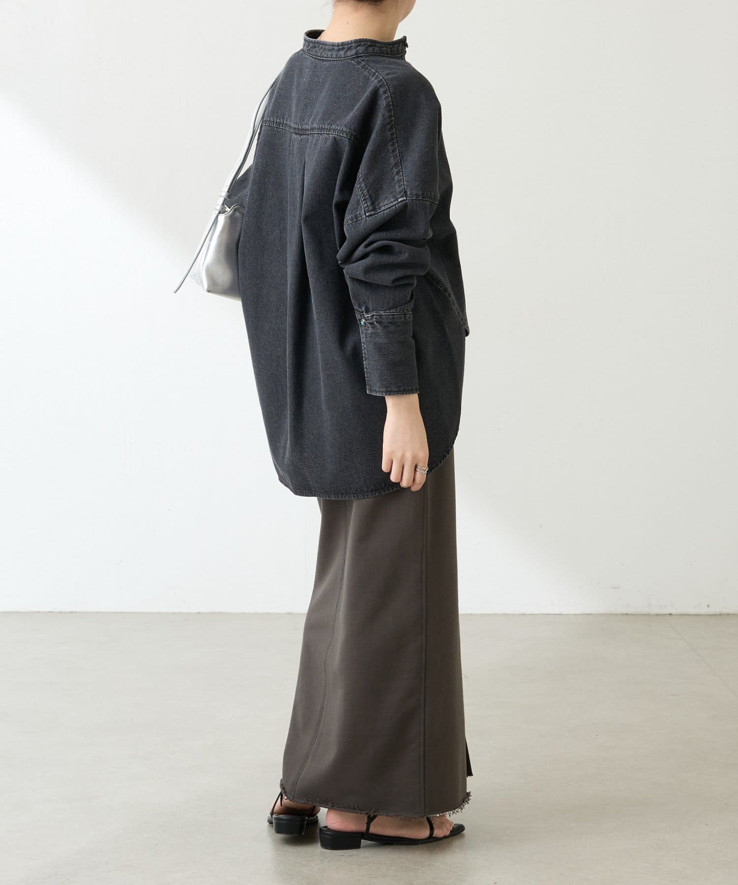 バンドカラーで首回りもすっきりしているのでレイヤーしやすいのも嬉しいポイント◎