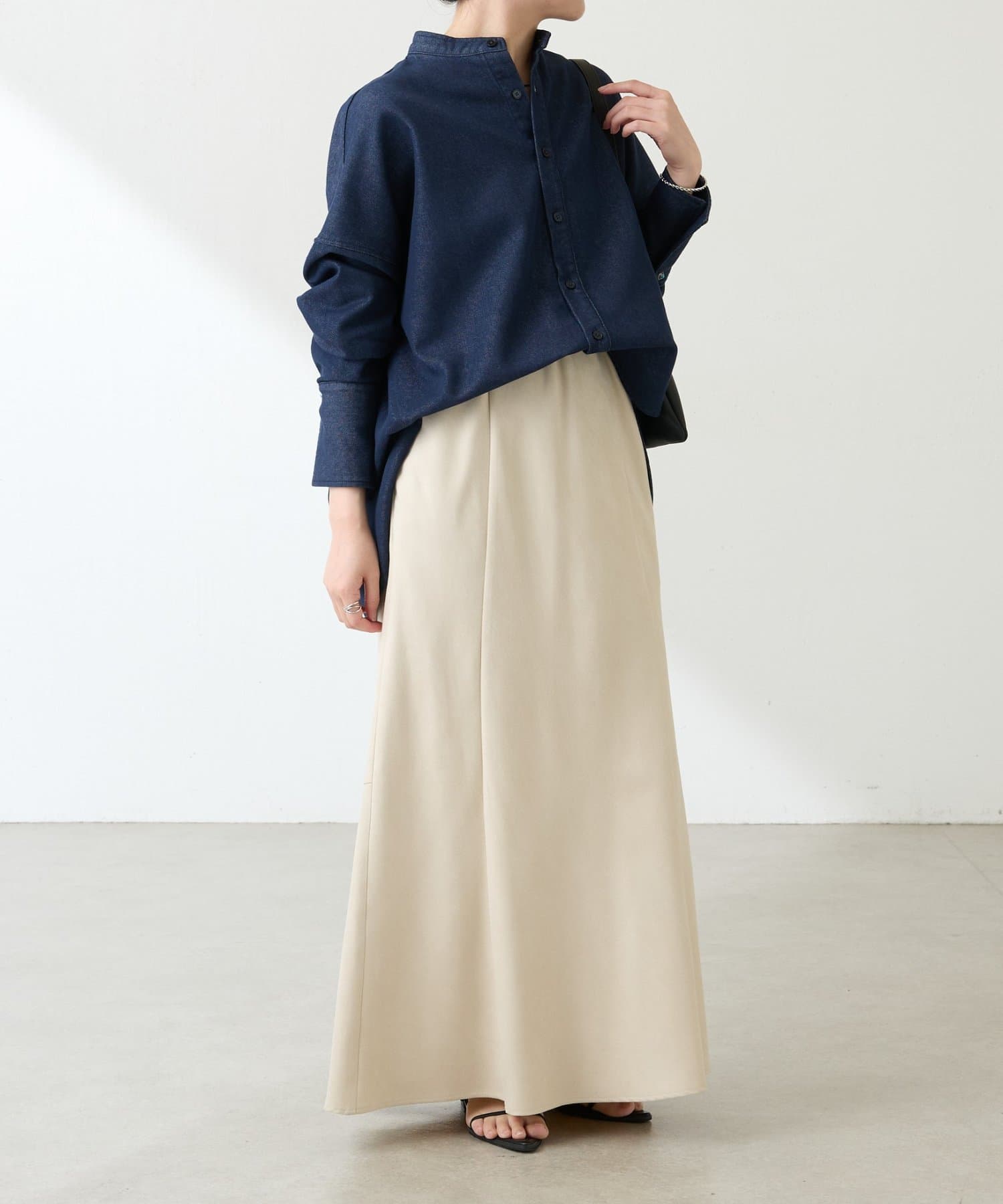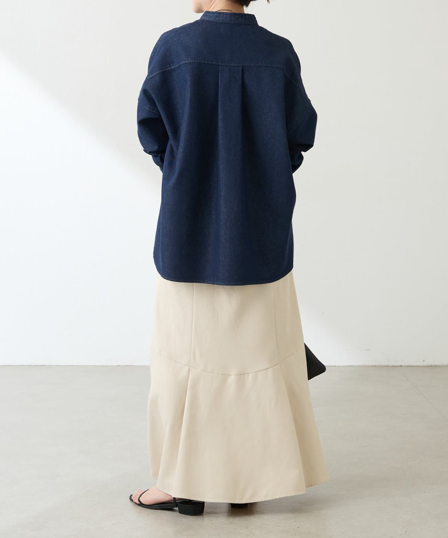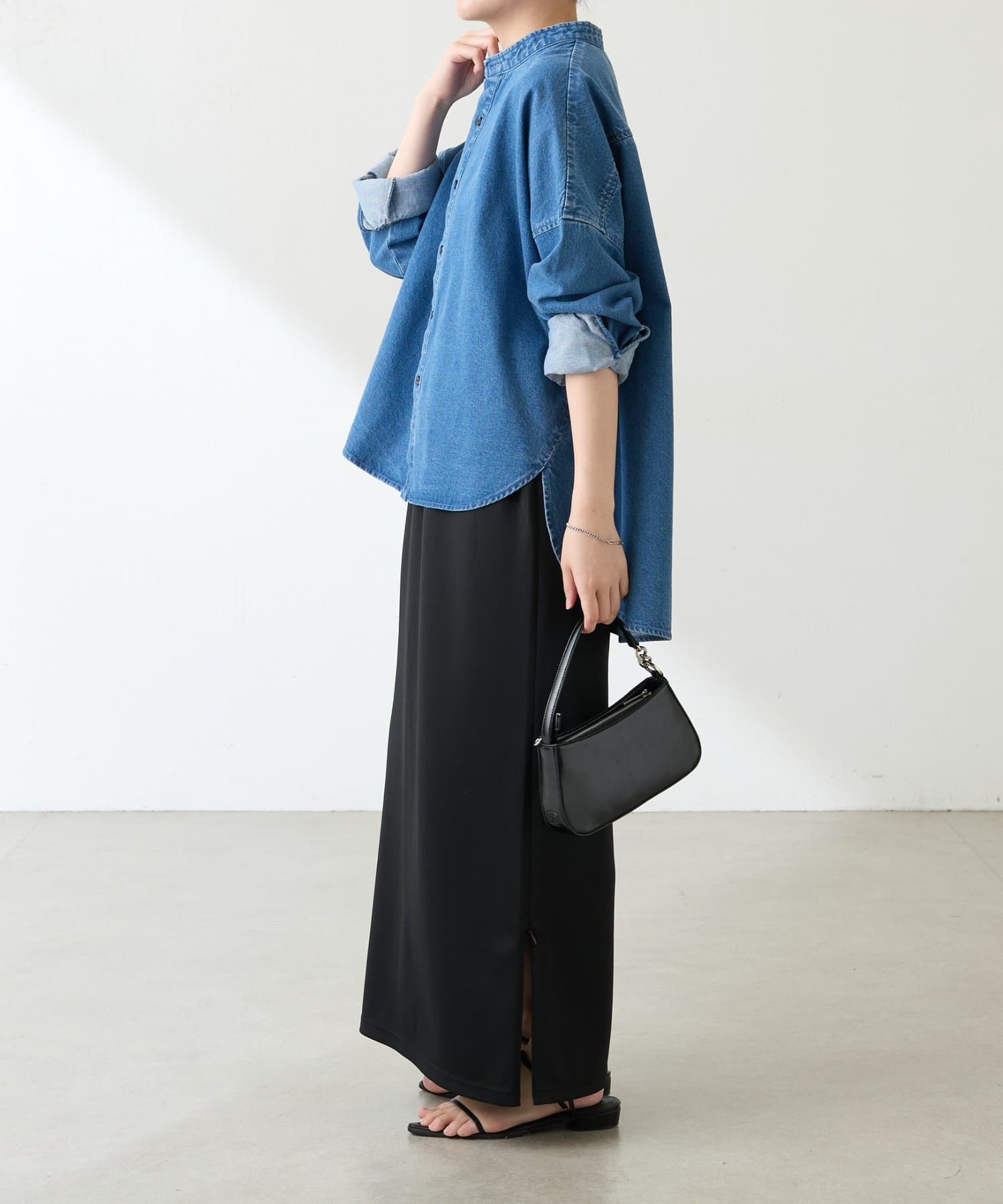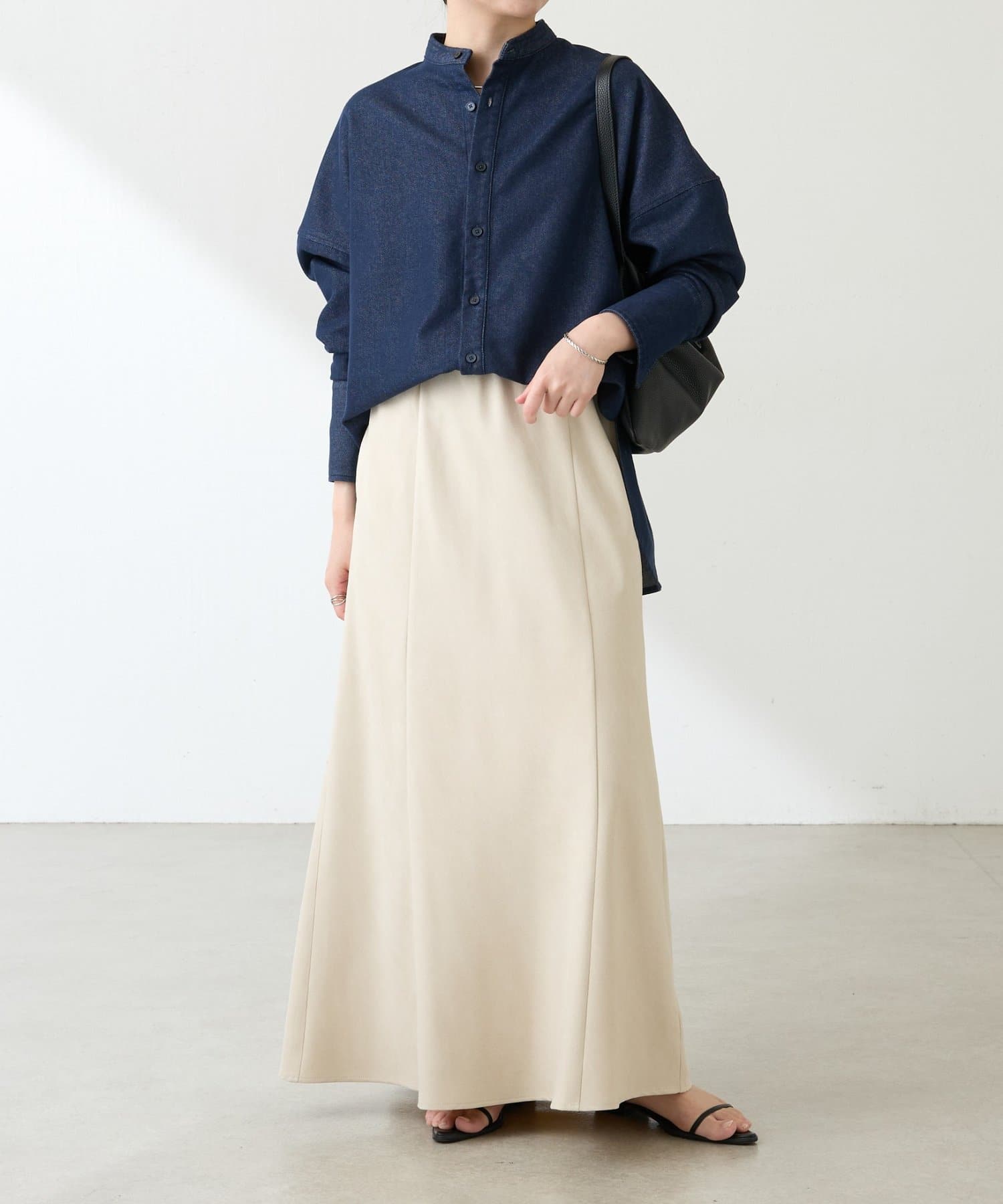 バンドカラーで首回りもすっきりしているのでレイヤーしやすいのも嬉しいポイント◎