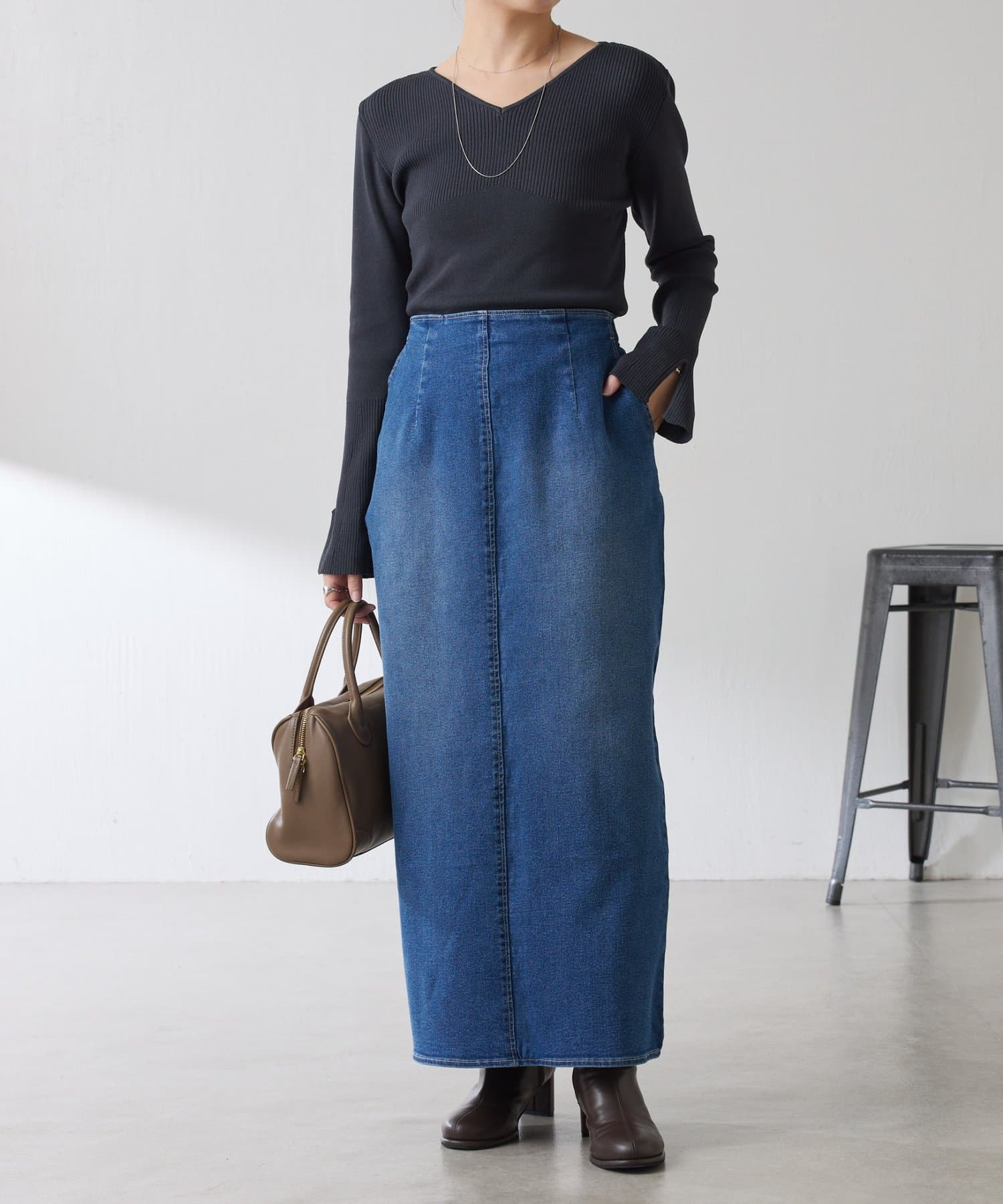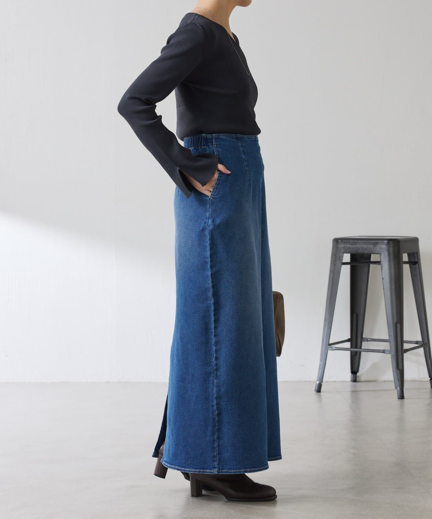きれい見えと楽チンが両立するデニムスカート